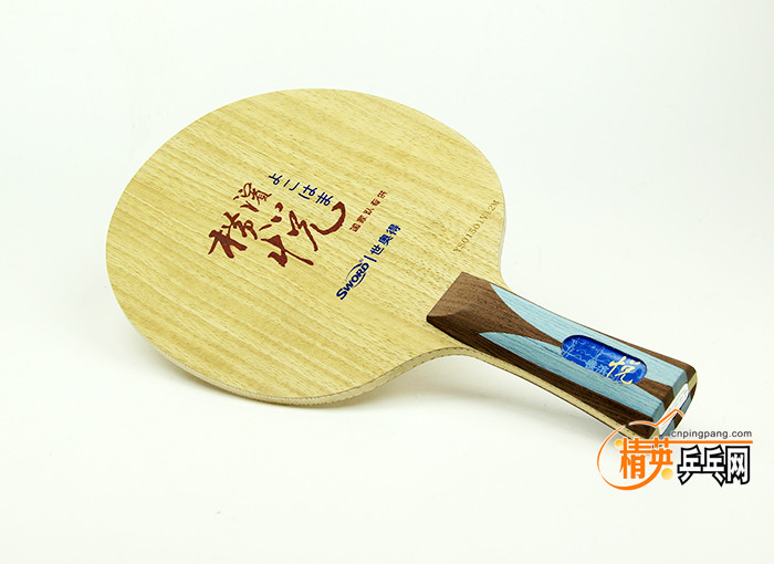 横滨悦(精英版),水蓝色与栗色相间的拼色线条青春、亮丽,与个性定制的蓝色标牌溶为一体,整款设计高端、大气。该底板的外观设计经过了四次调整,最终的设计配色是由精英乒乓网站长王彦军先生提出的。