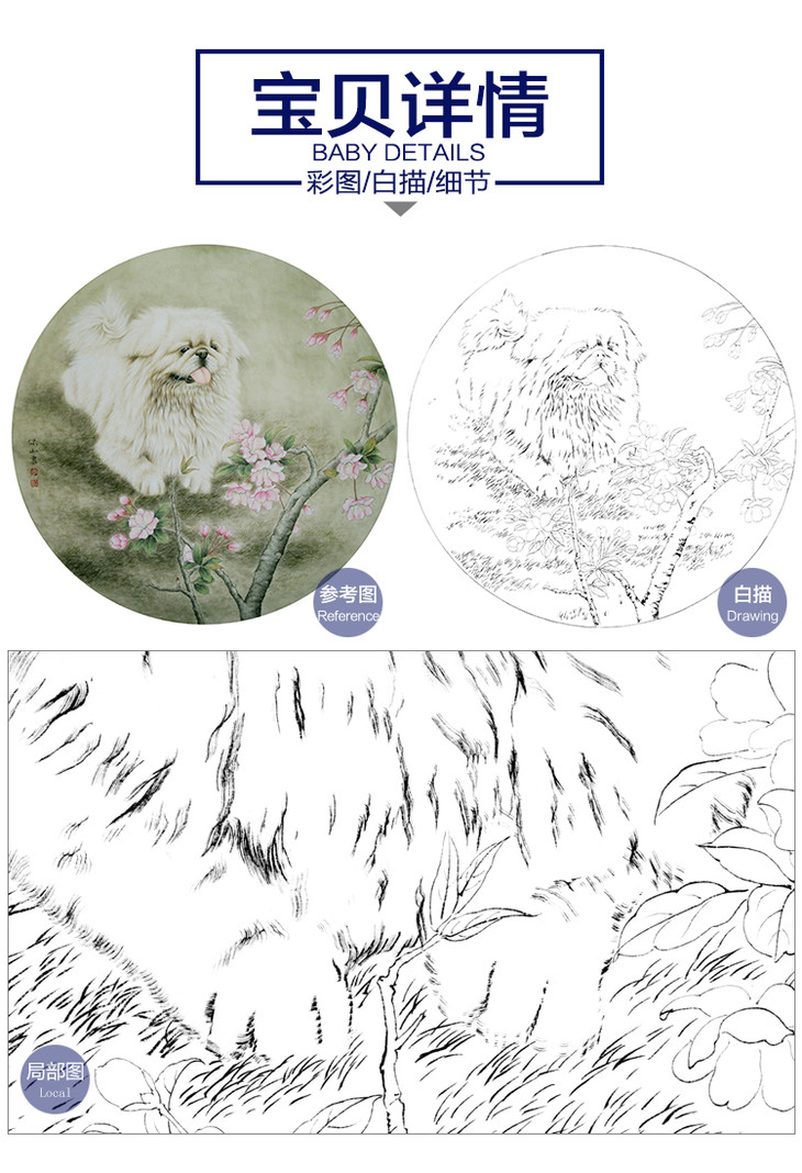 工笔动物白描底稿-李保山-狗小品《一片春心付海棠》-多种白描尺寸可选-EL09