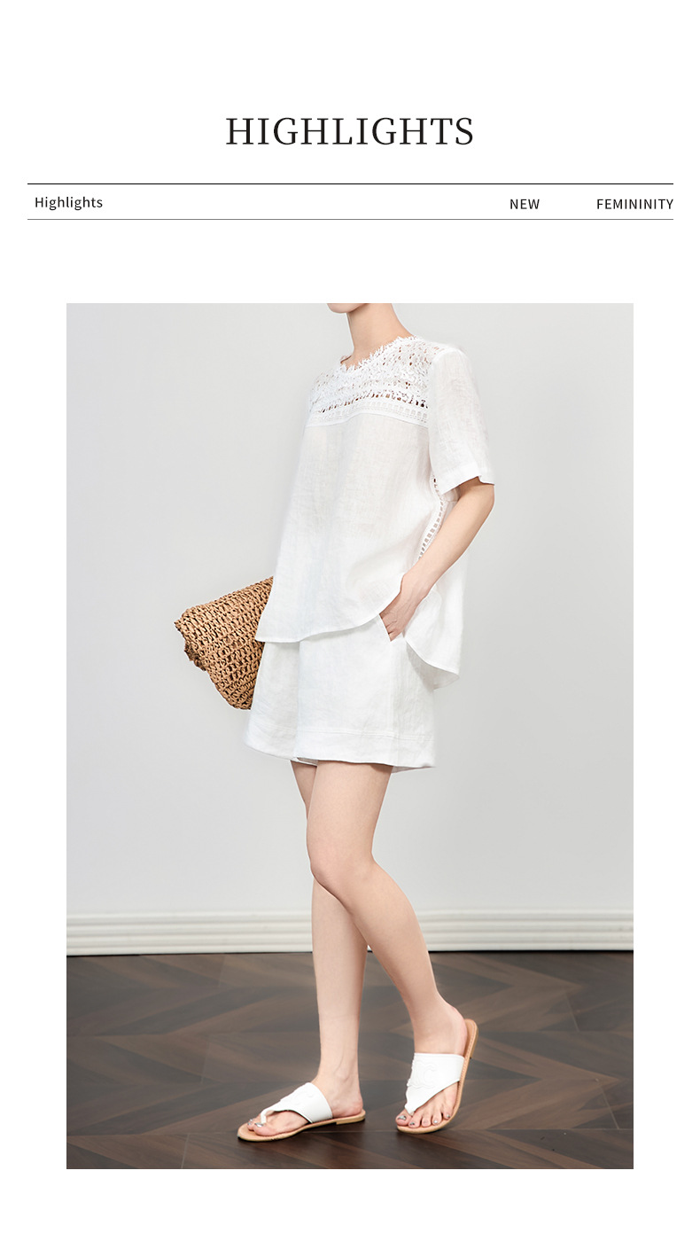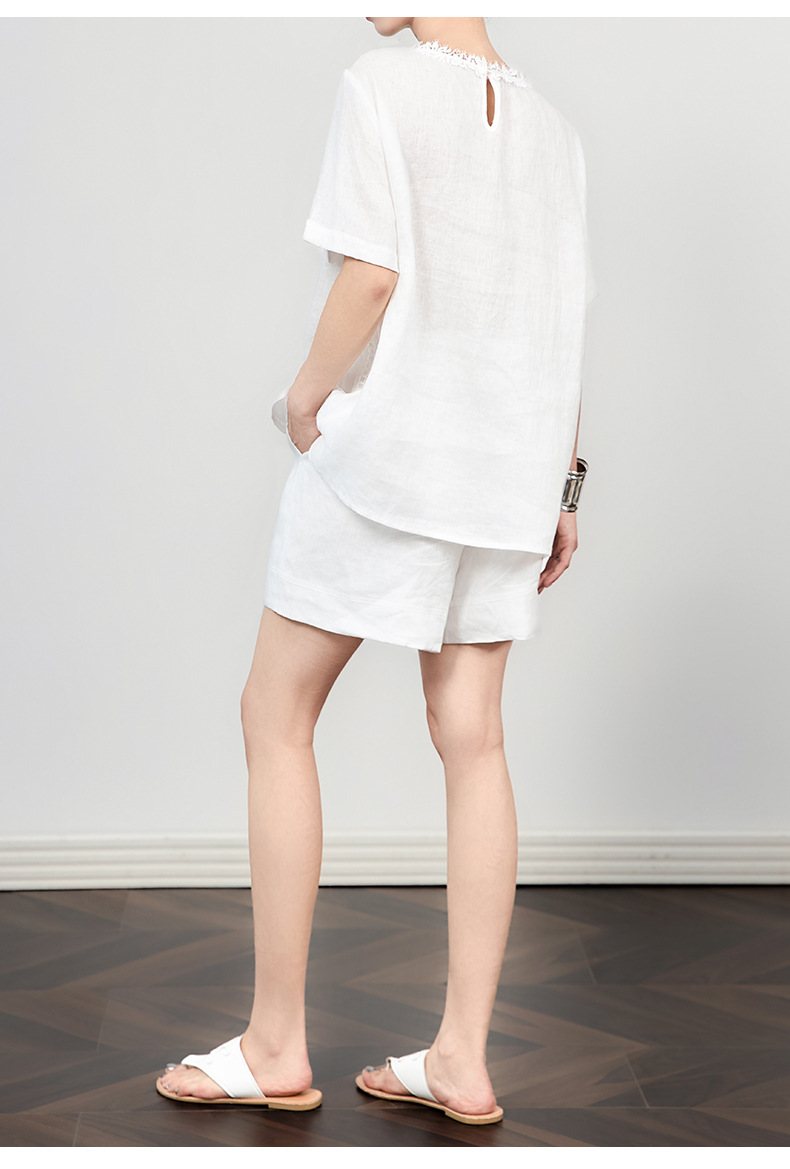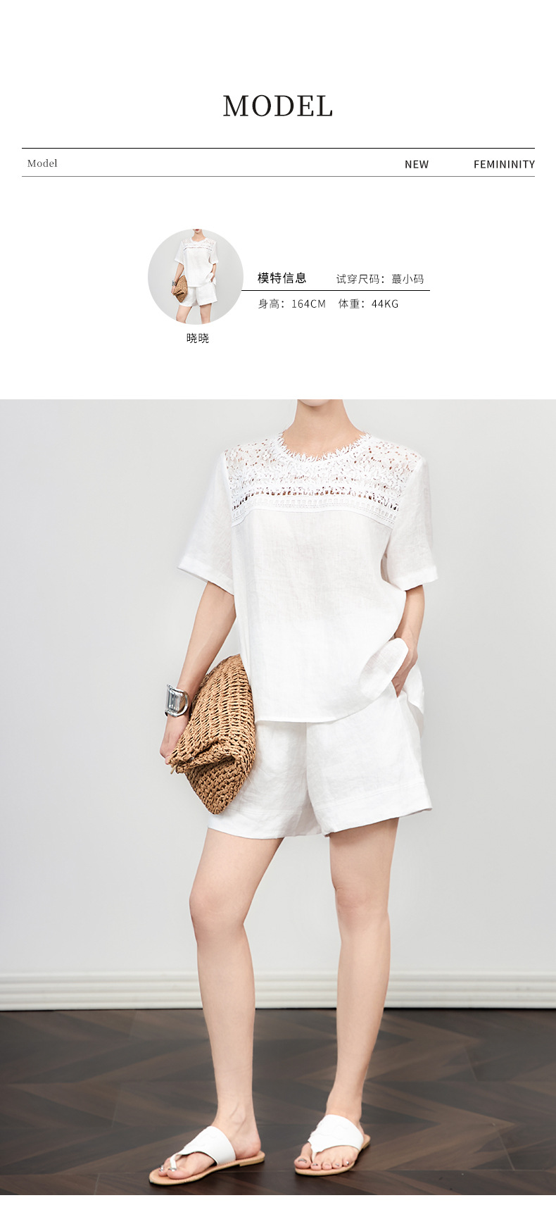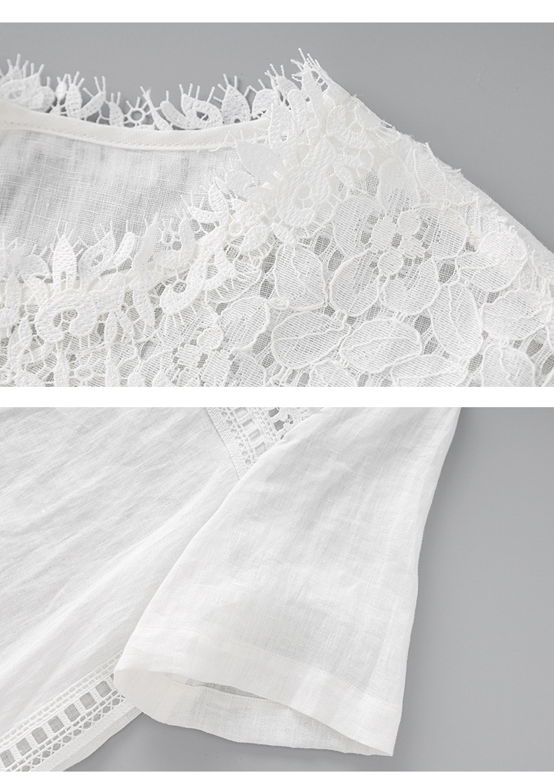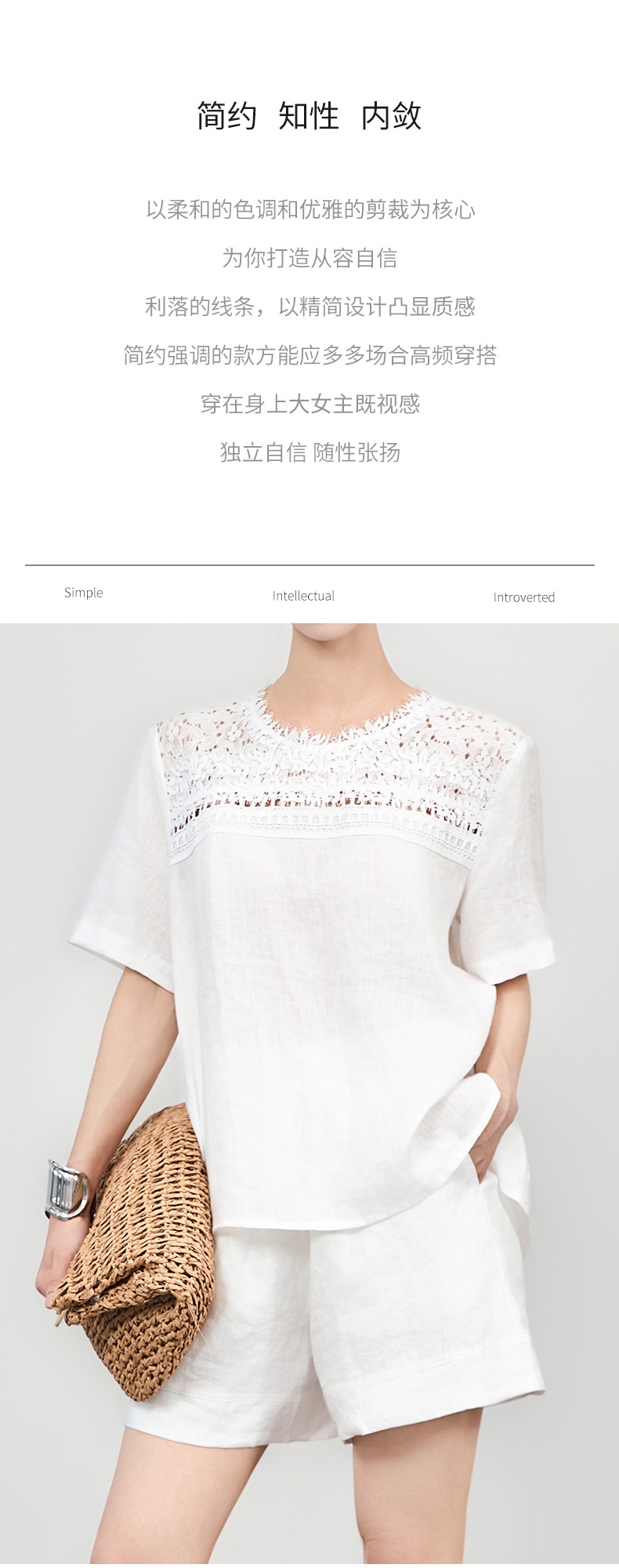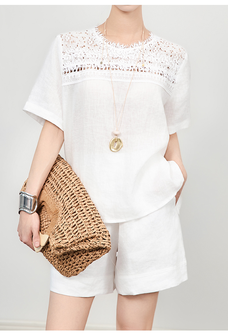 「高货wl」全新升级【铂金会员293/天猫399/差价106】(99407)洛诗琳亚麻重工水溶蕾丝T恤2025夏季宽松圆领短袖上衣女