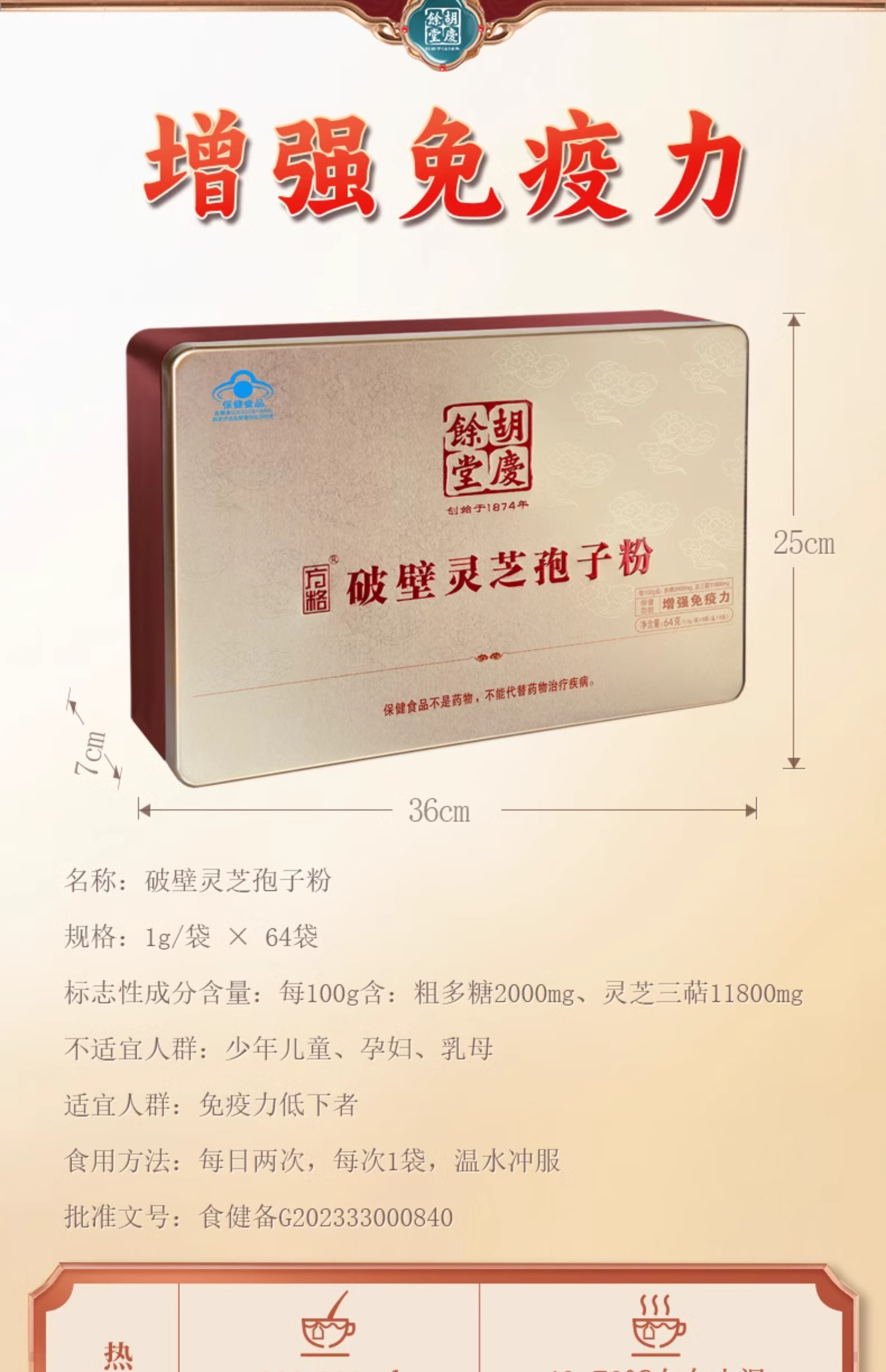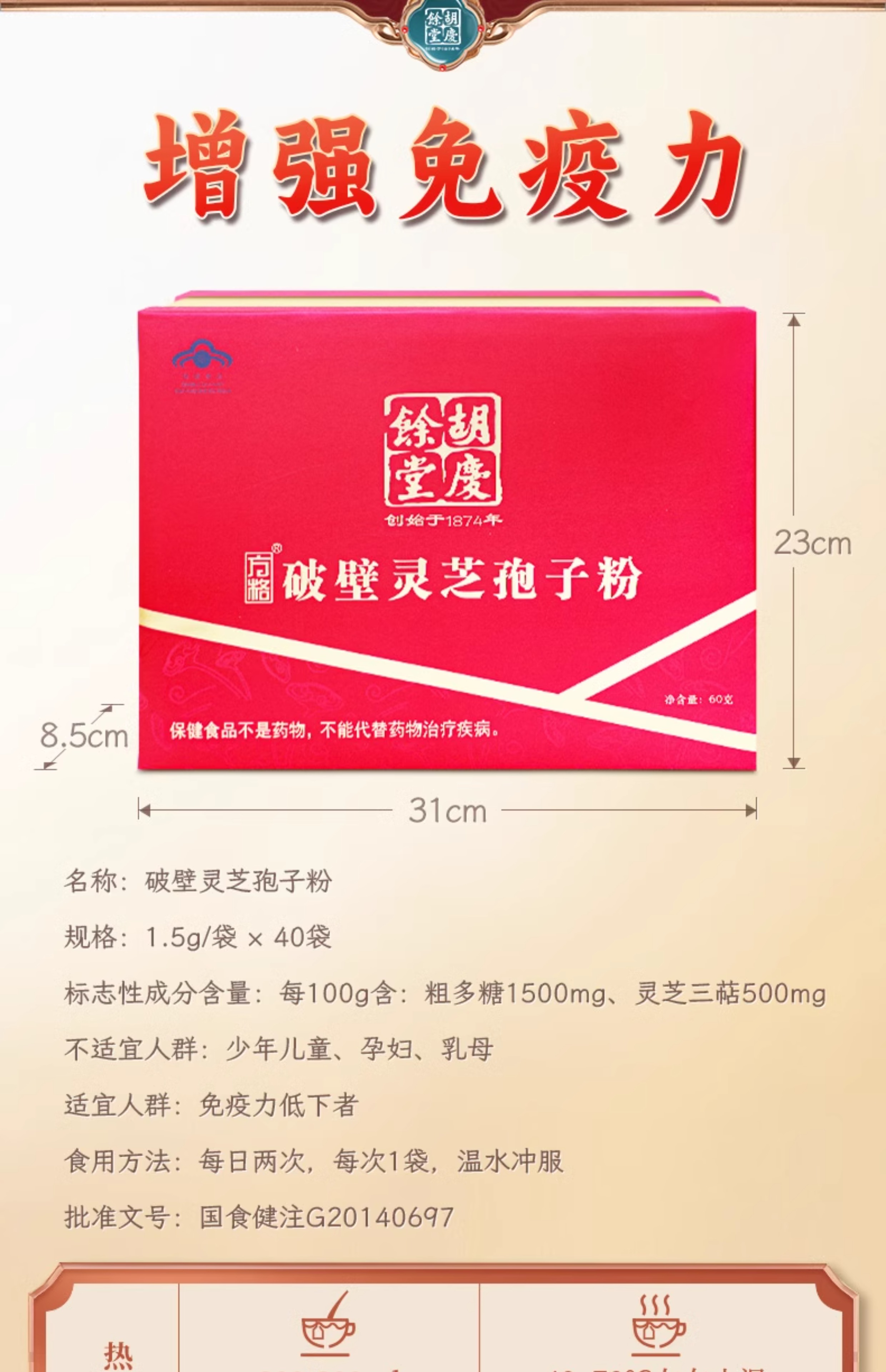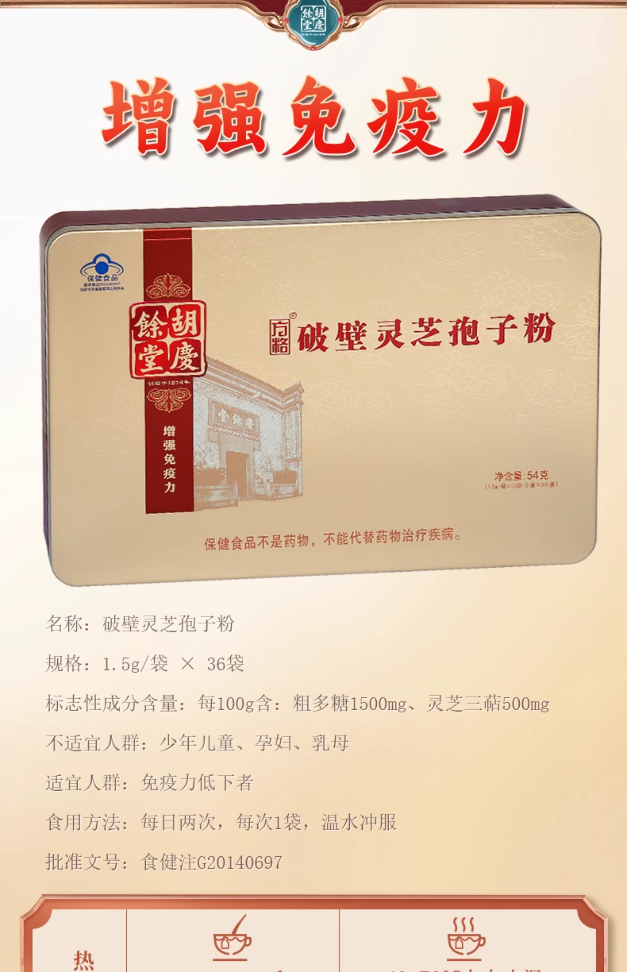 胡庆余堂 破壁灵芝粉孢子粉JL