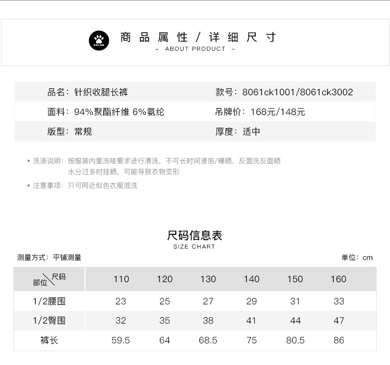 卡尔美足球训练收腿裤男修身弹力运动长裤跑步健身裤儿童