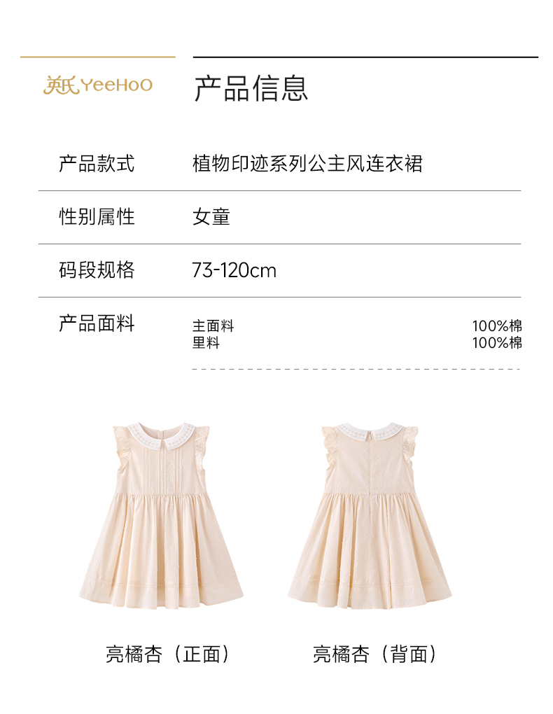 英氏女童连衣裙夏季小女孩背心裙休闲甜美女生裙子透气连衣裙