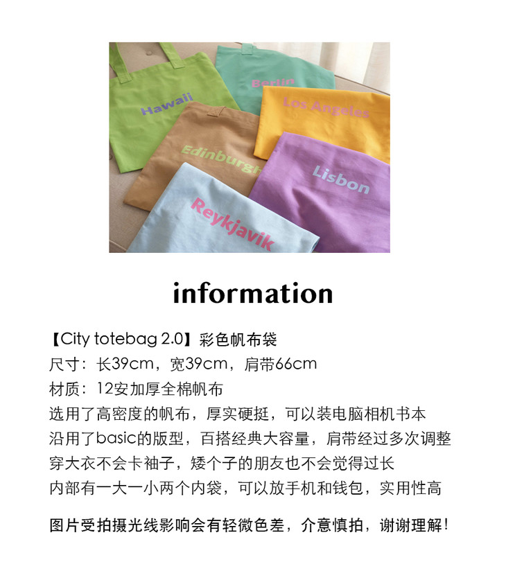 【City totebag】帆布袋 BLEU et ROSE 百搭经典大容量彩色帆布袋