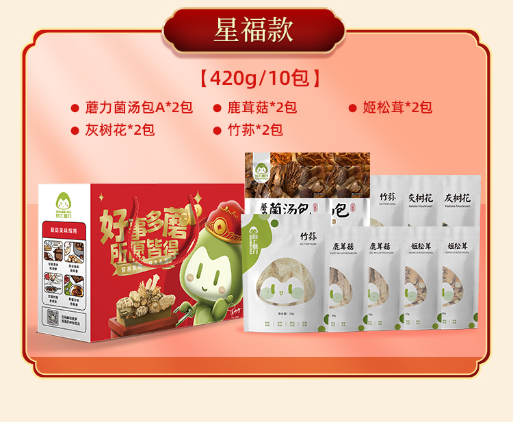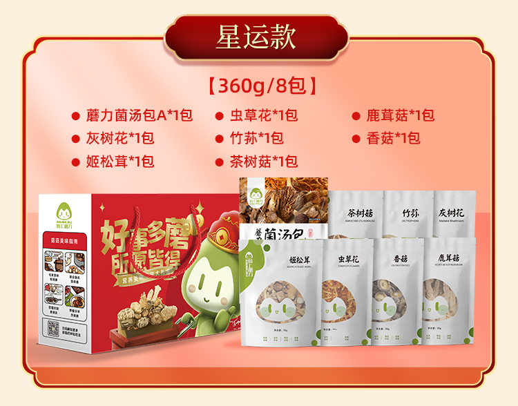【滋补养生|星河蘑力养生菌汤包】仅69元5包自盒囤货装,含7/8种珍品菇科学配比,送礼必入98元起轻奢礼盒款,有颜有料,省内包邮。