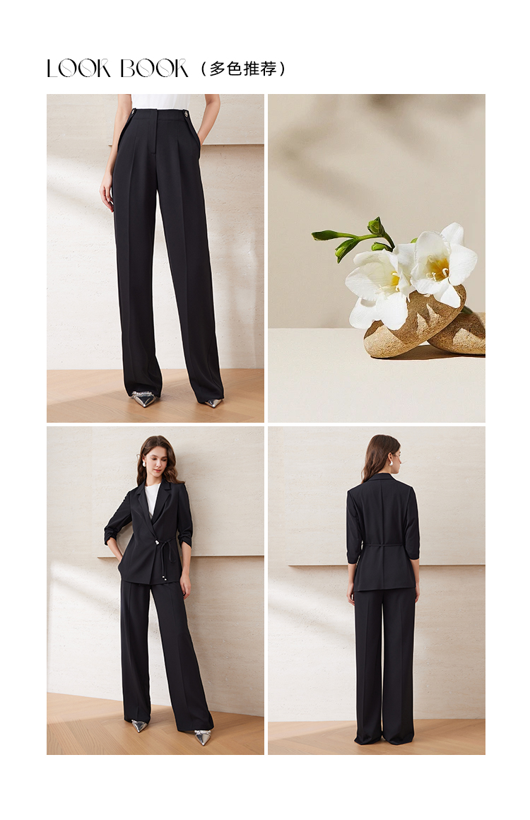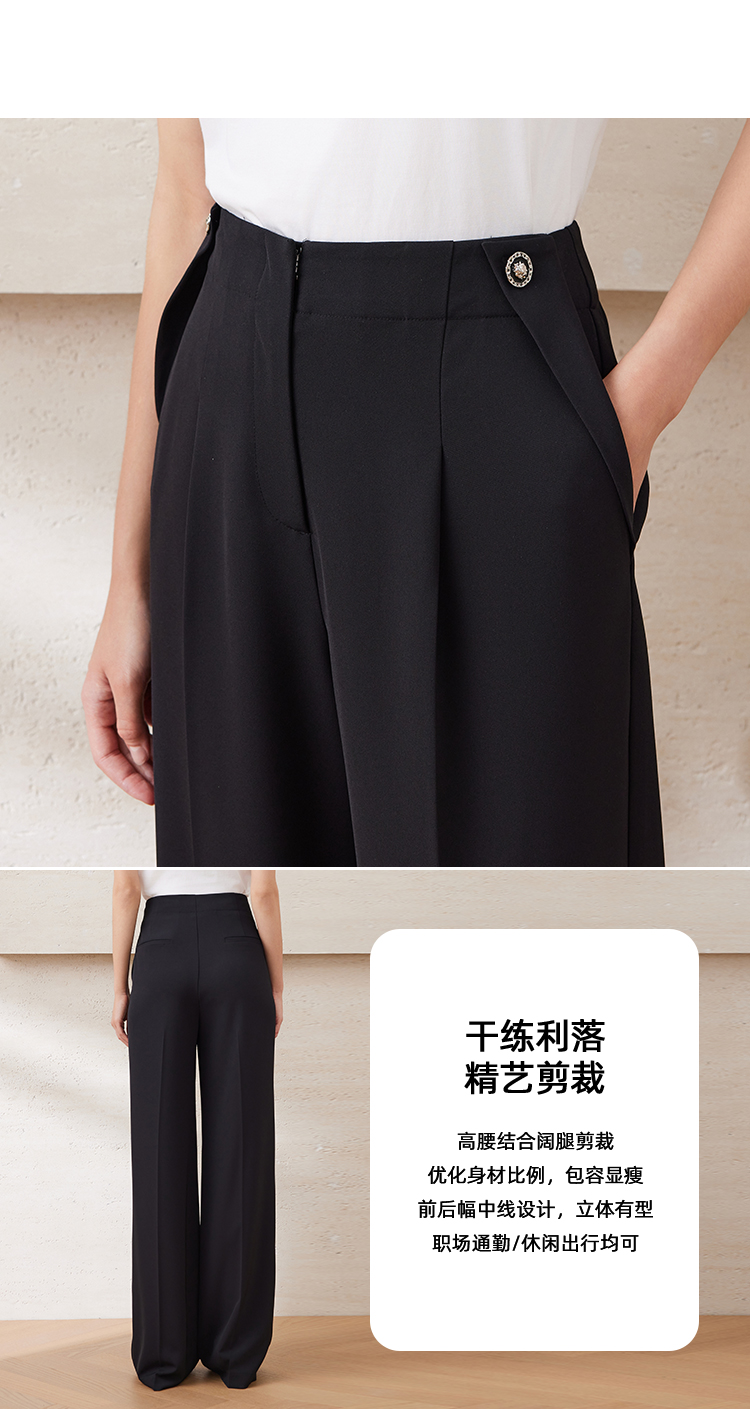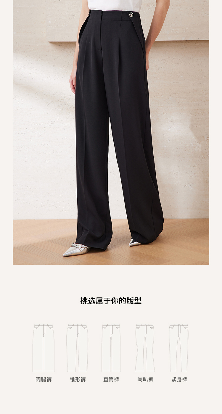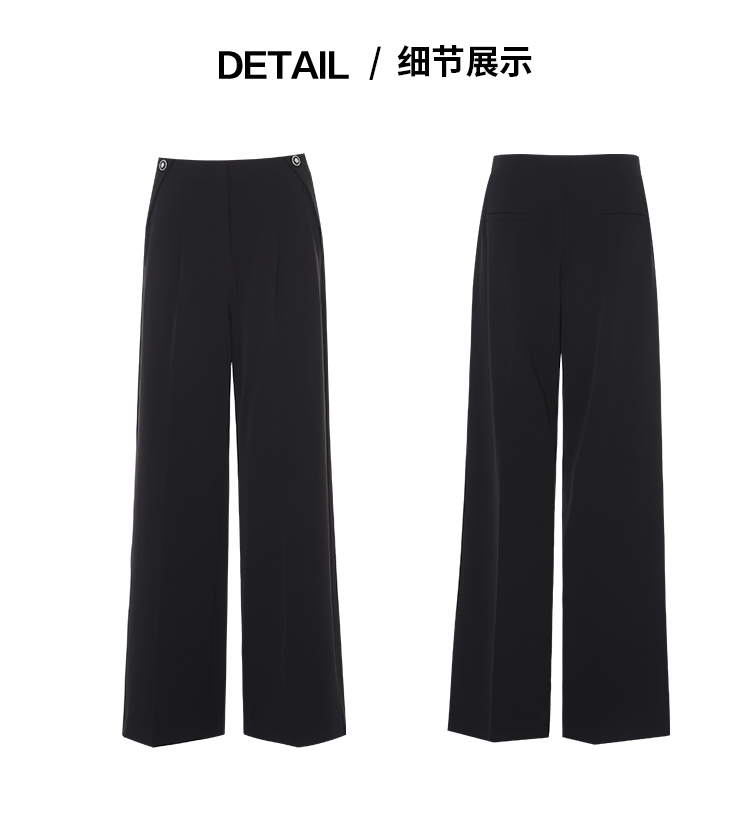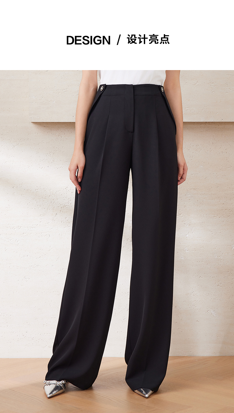 EITIE爱特爱高腰垂坠显瘦直筒百搭黑色西装裤夏季新款B2505610