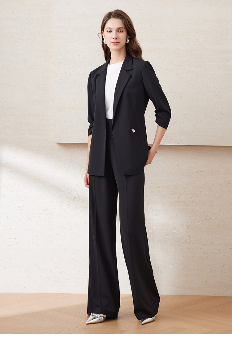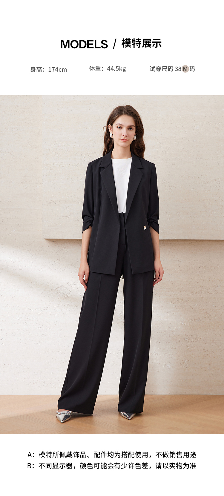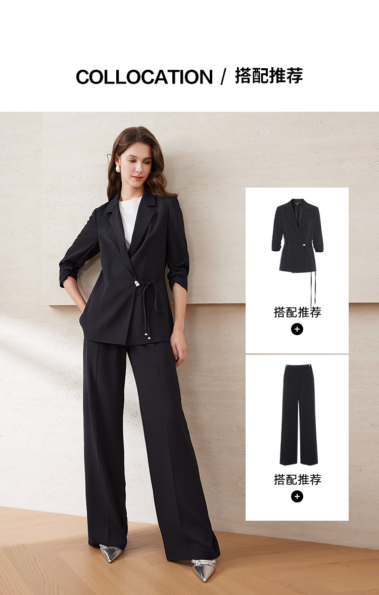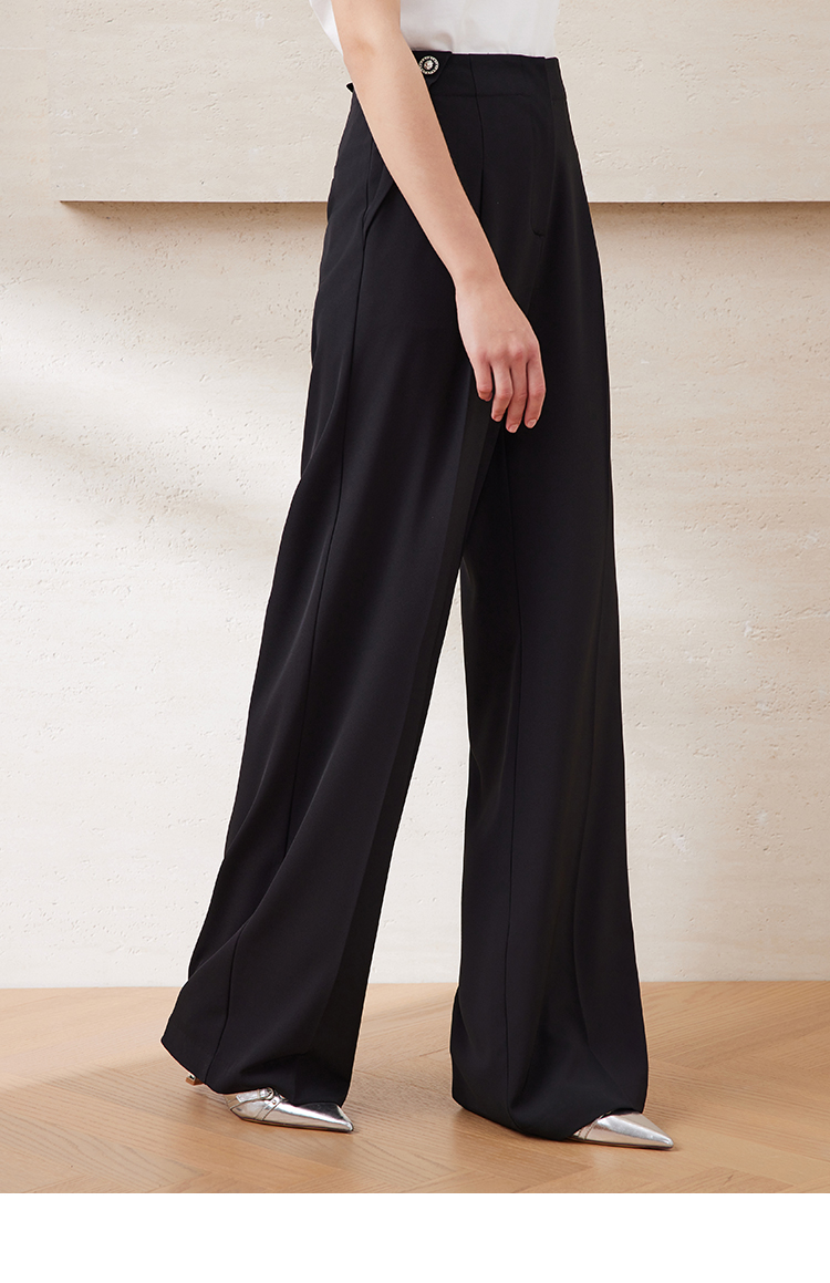 EITIE爱特爱高腰垂坠显瘦直筒百搭黑色西装裤夏季新款B2505610