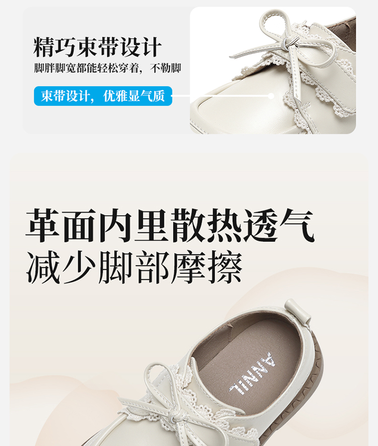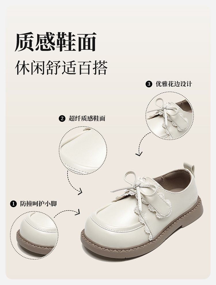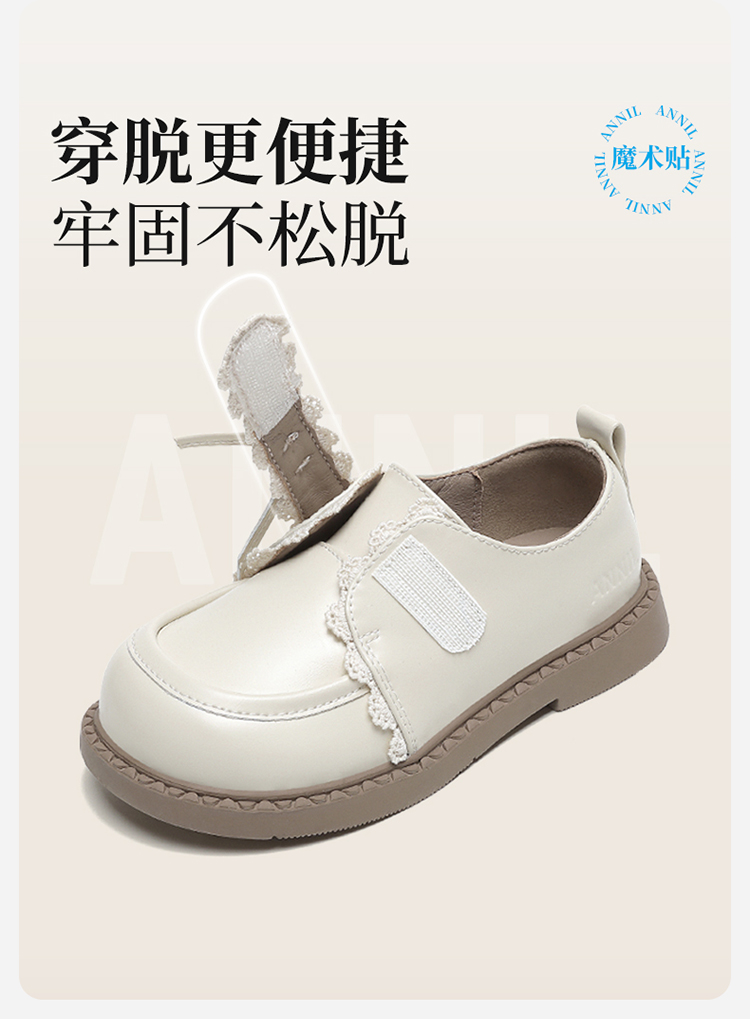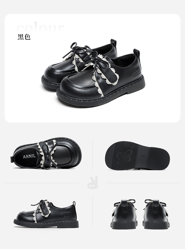 ANNIL/安奈儿女童软底小皮鞋女宝宝甜美乐福鞋2024黑色新款儿童HM4301064