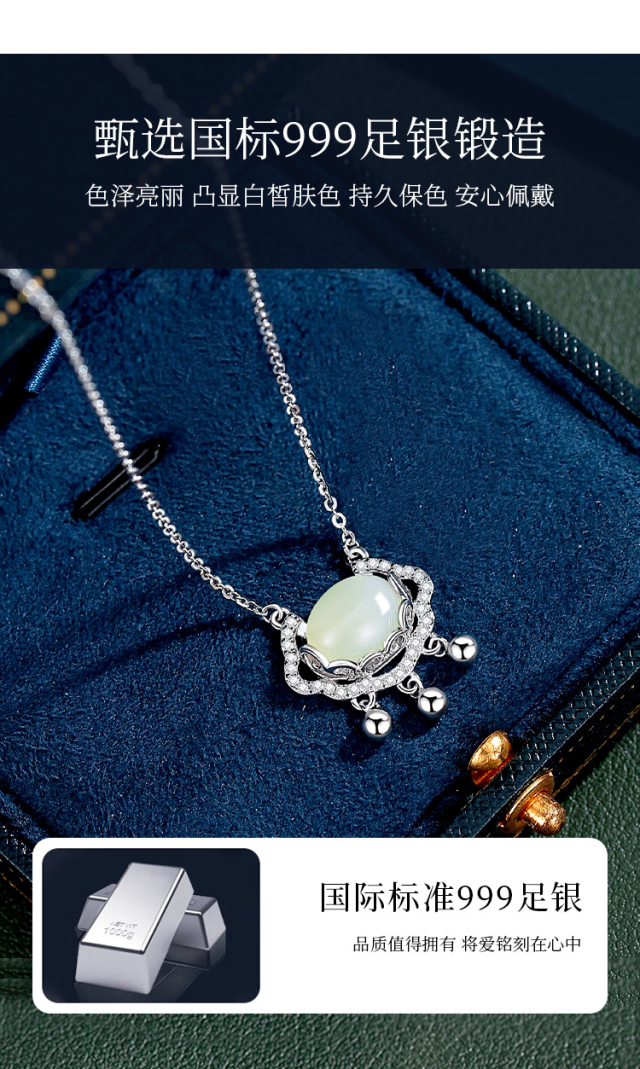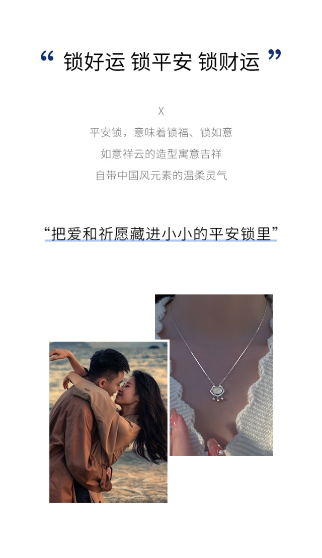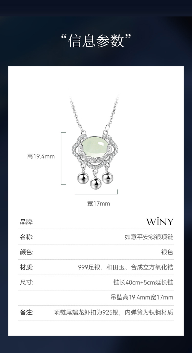 Winy999足银顺意同心锁项链送女友闺蜜节日生日礼物
