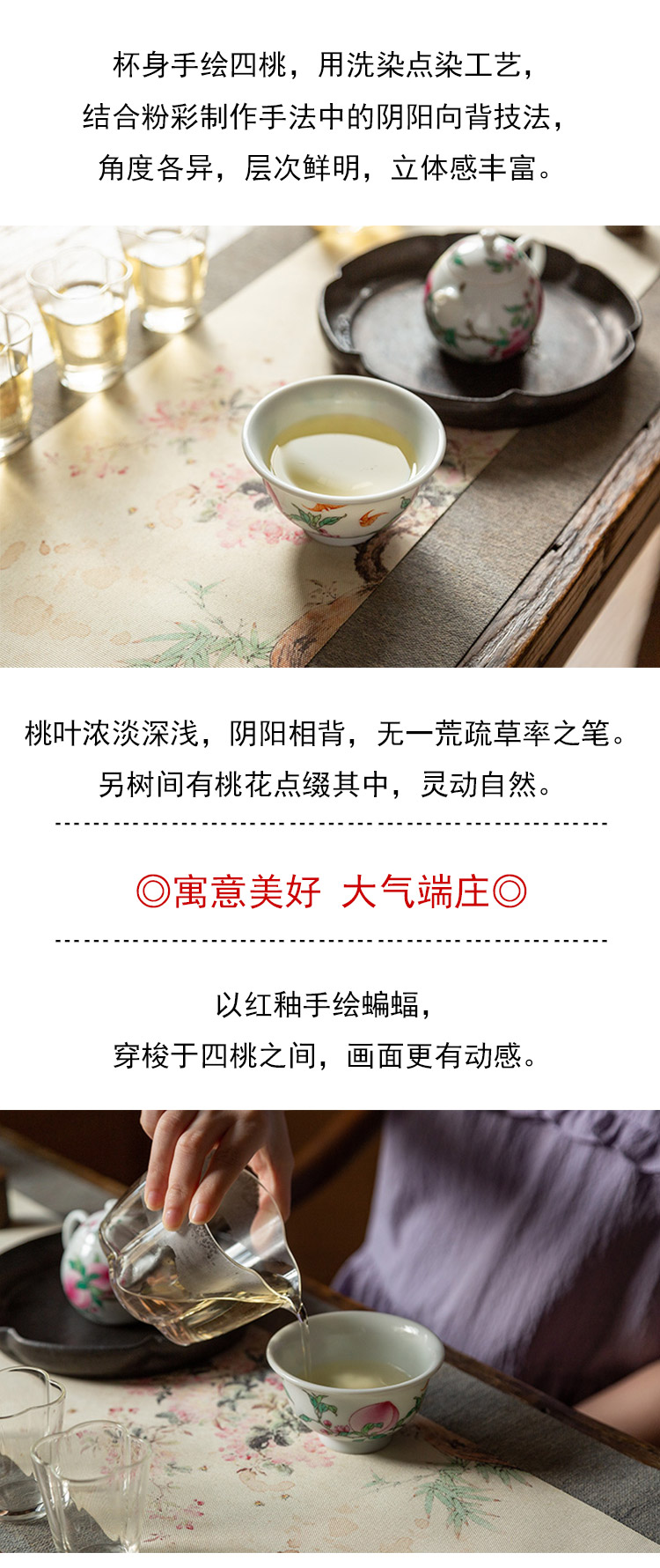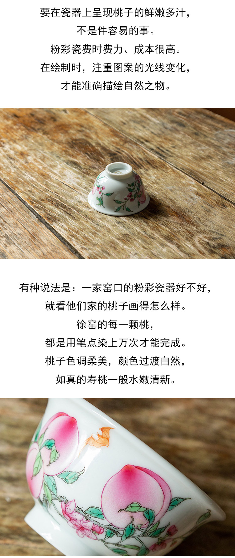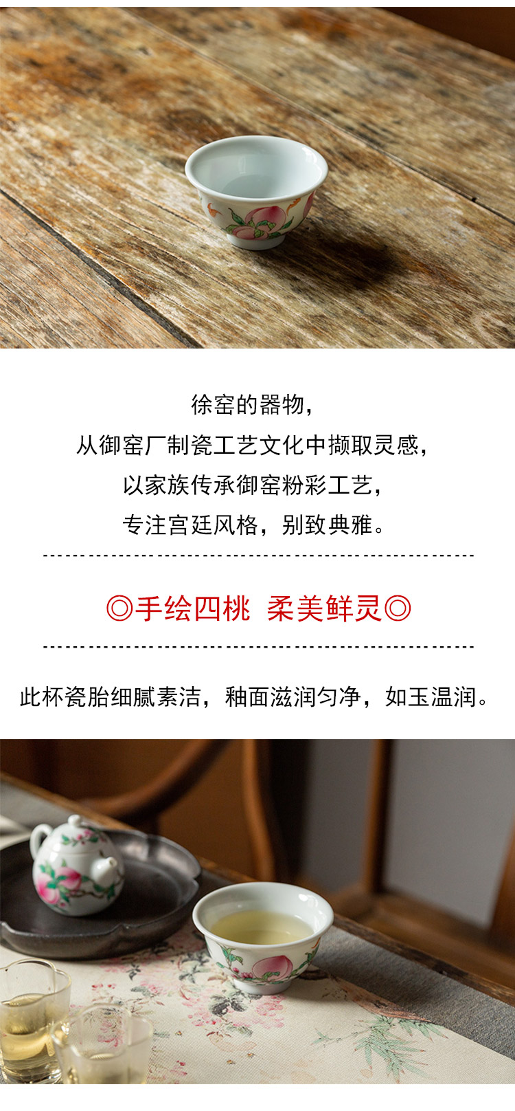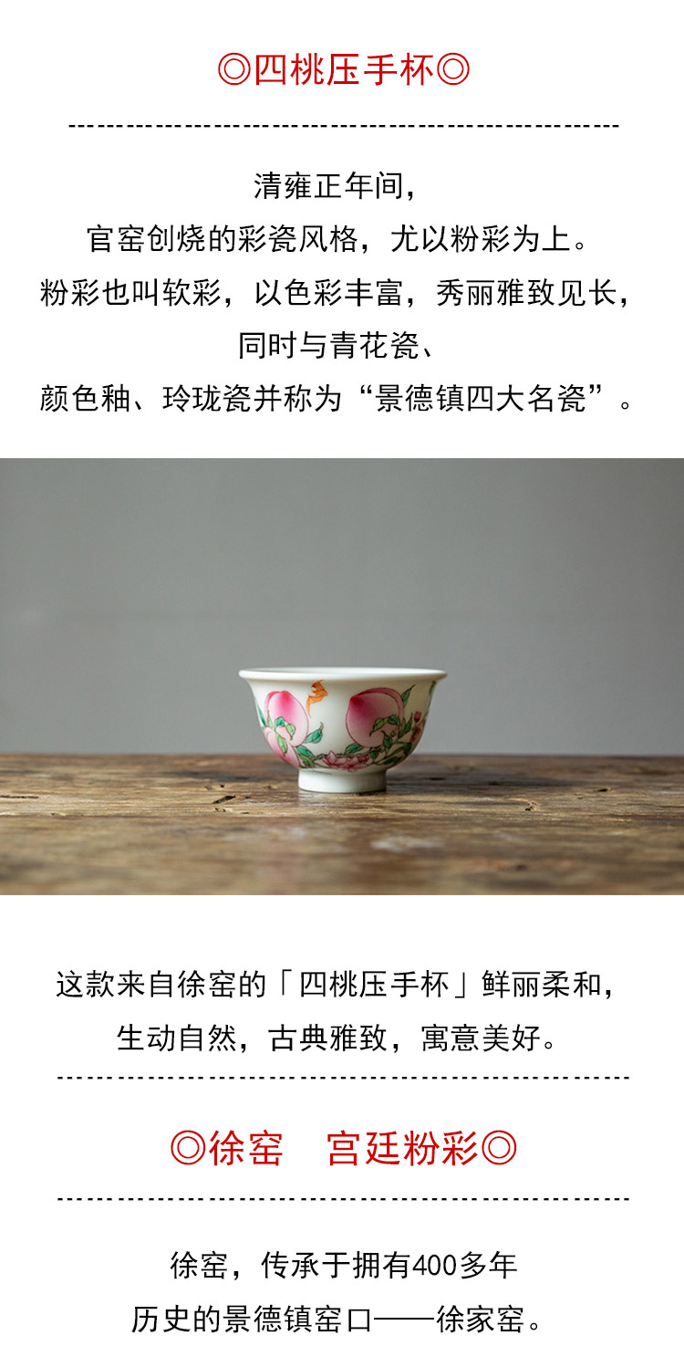 茶香记 徐窑 四桃压手杯 景德镇 主人杯 官窑粉彩 秀丽雅致 寓意吉祥