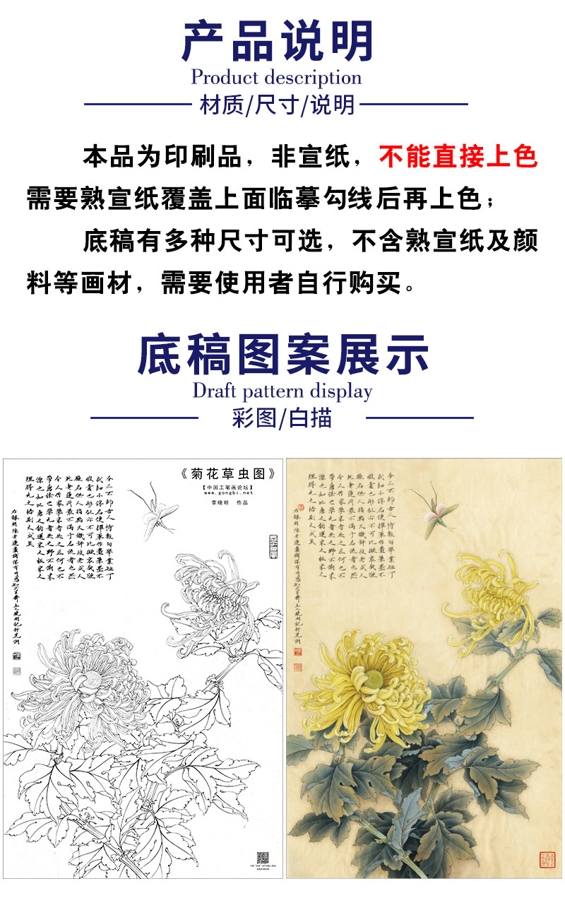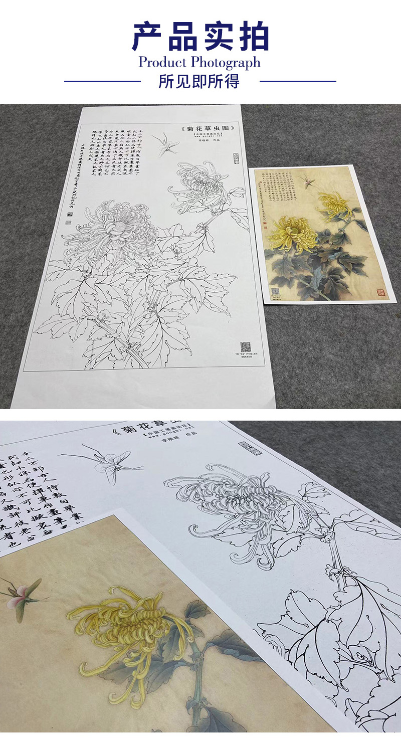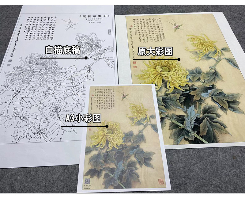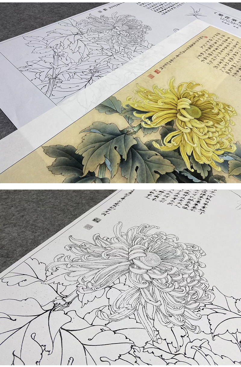 【大彩图】李晓明工笔画白描底稿《菊花草虫》临摹勾线花鸟线稿K120