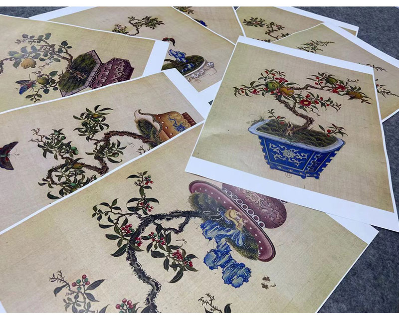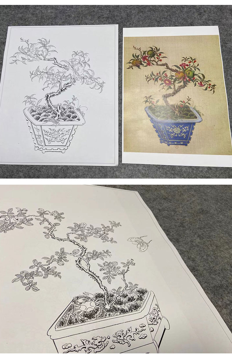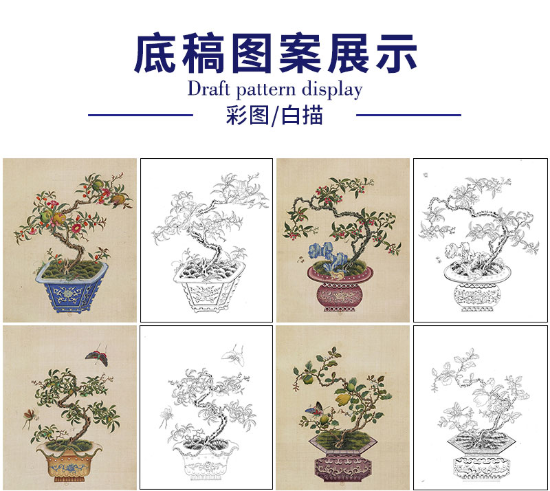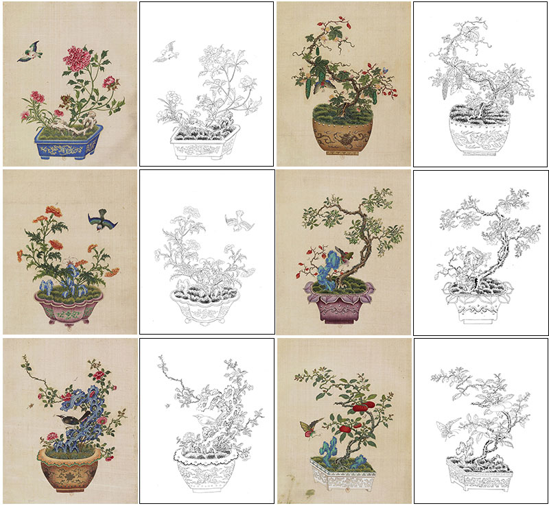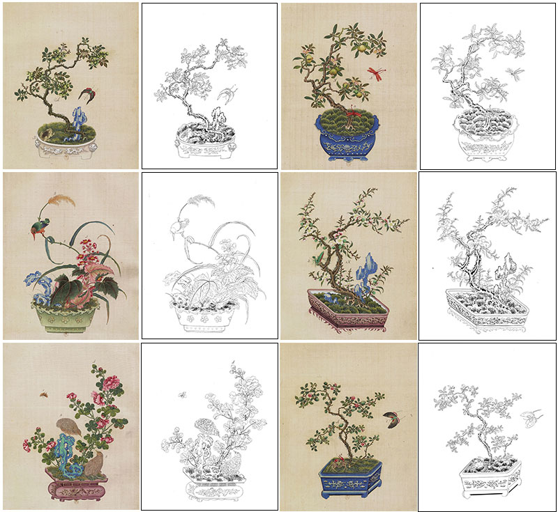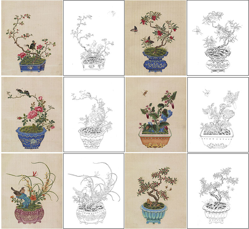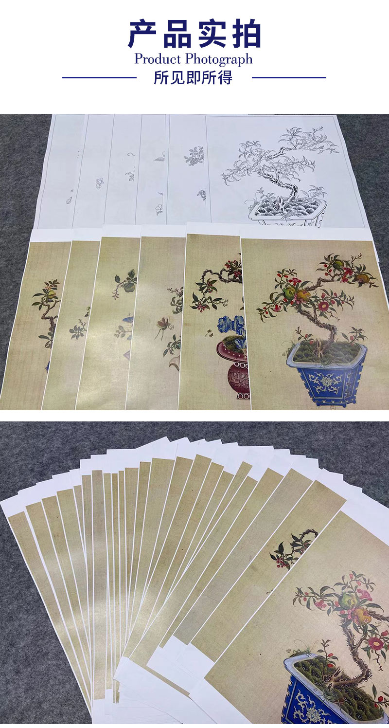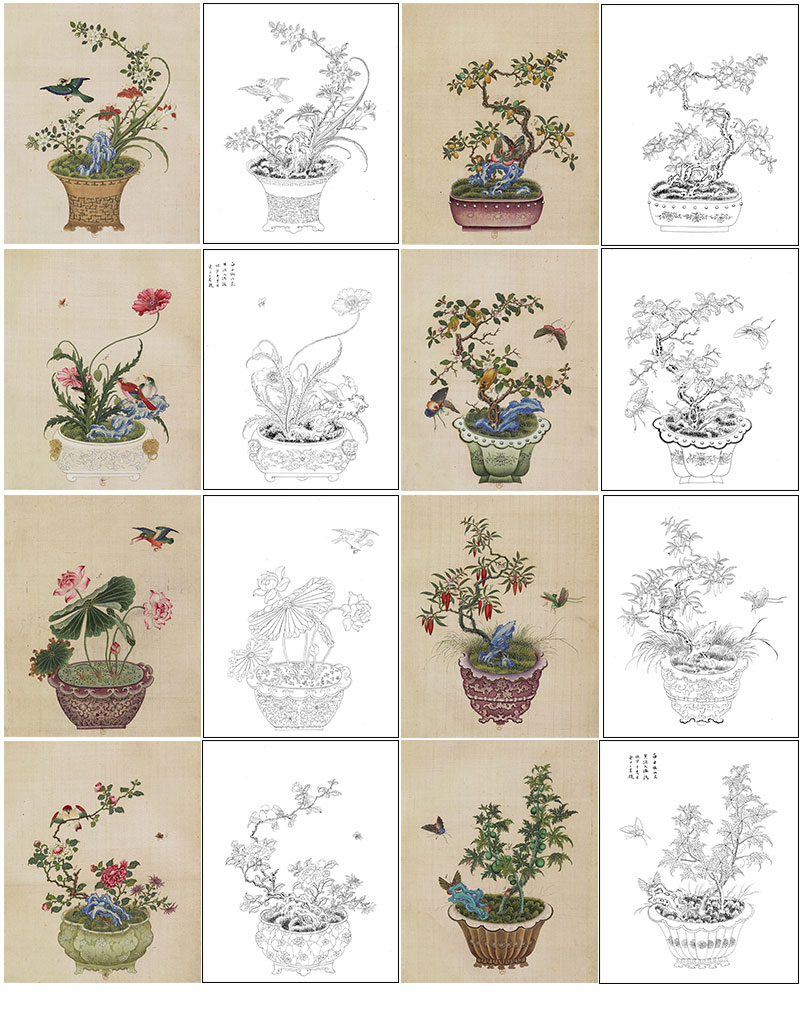 佚名工笔画白描底稿盆景花鸟草虫图小品一套三十幅册页尺寸35*43厘米MT20