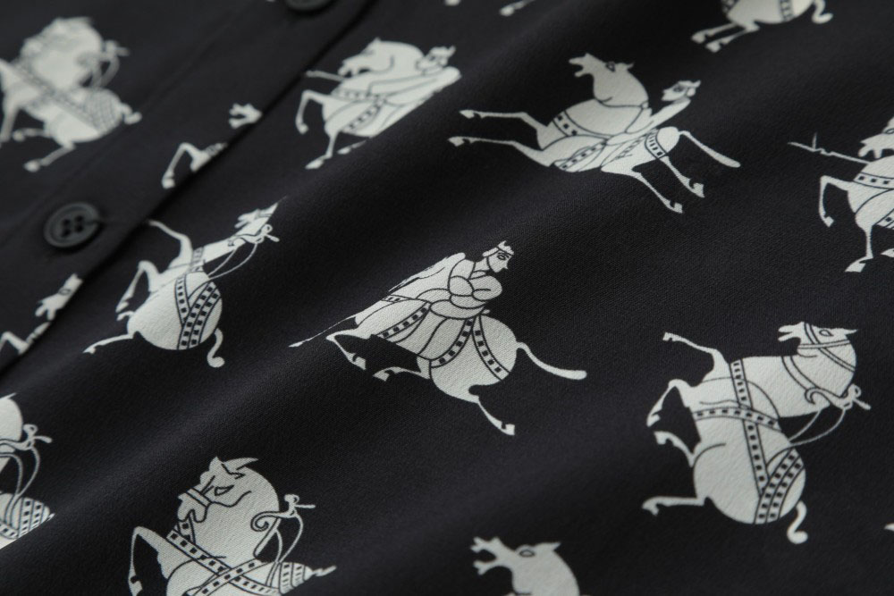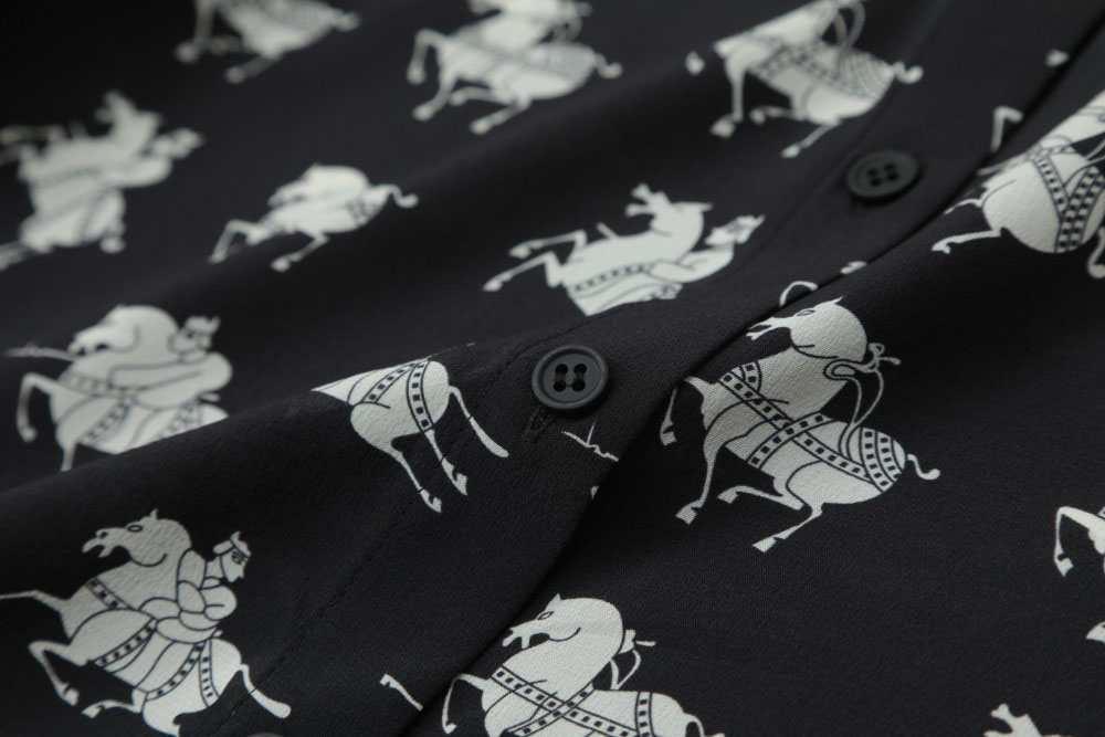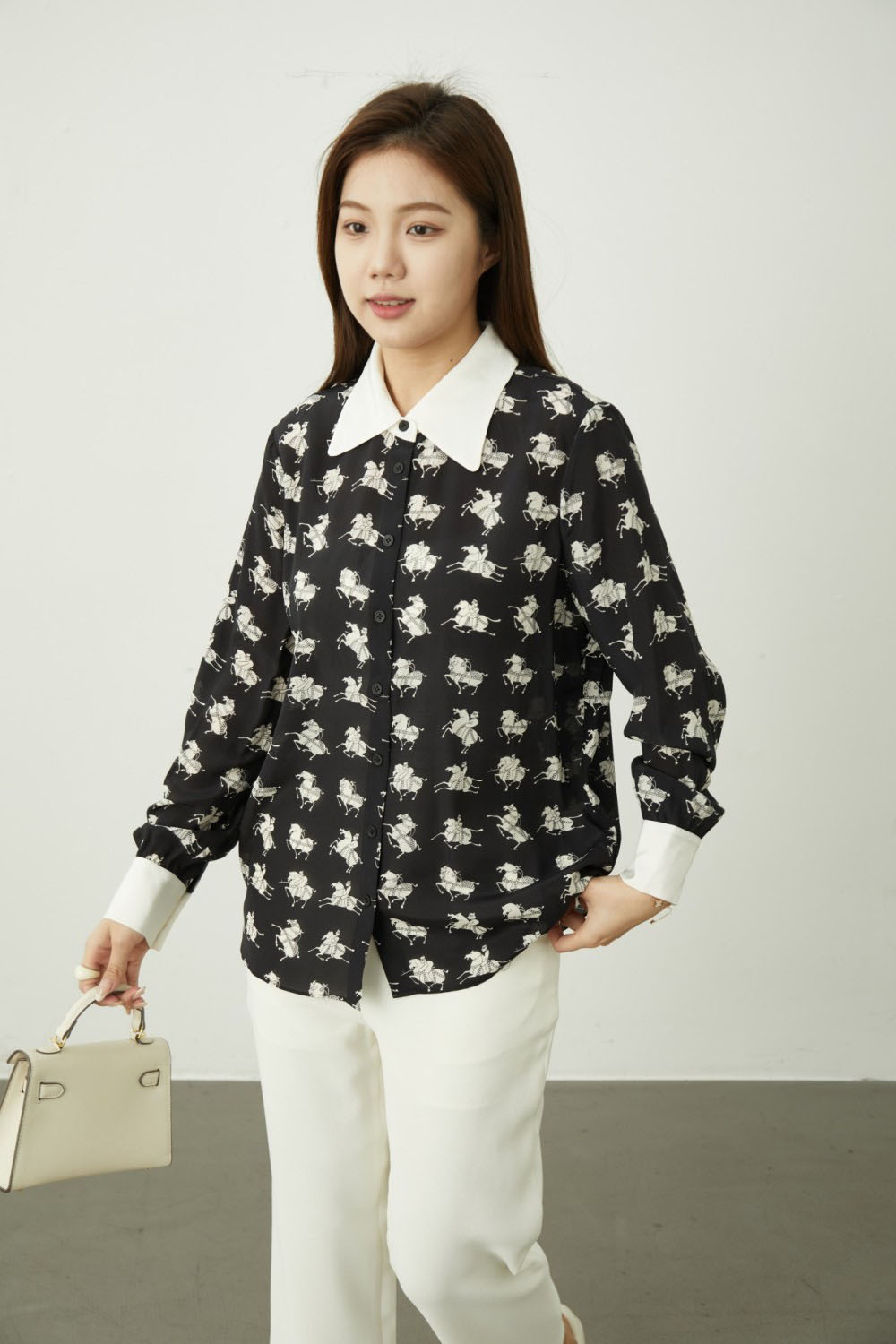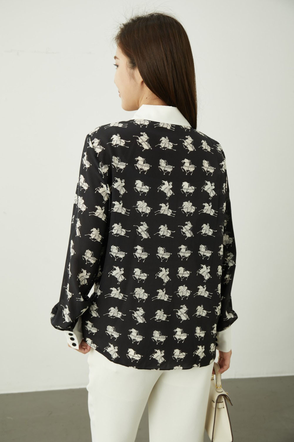 洛诗琳10036气质撞色印花上衣2025新款时尚真丝印花衬衫0623