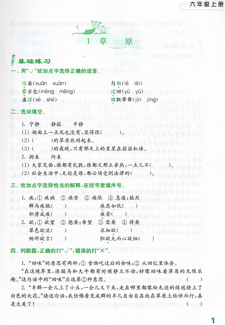2025秋 6上语文练习与测试小学语文 六年级上册 配部编版 含电子答案 不含试卷 配人教版课本 江苏凤凰教育出版社