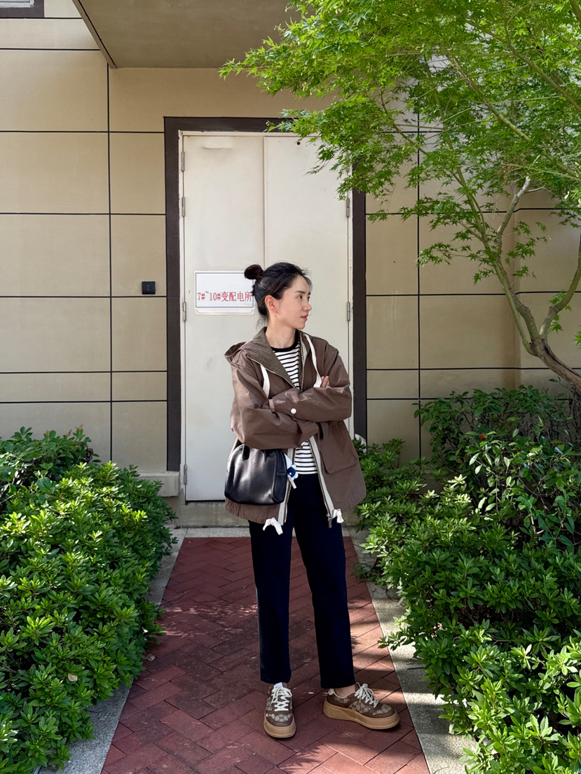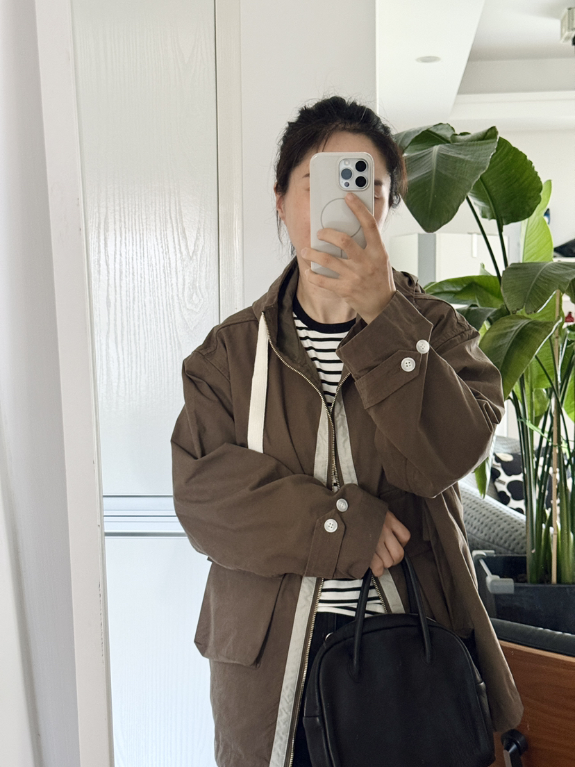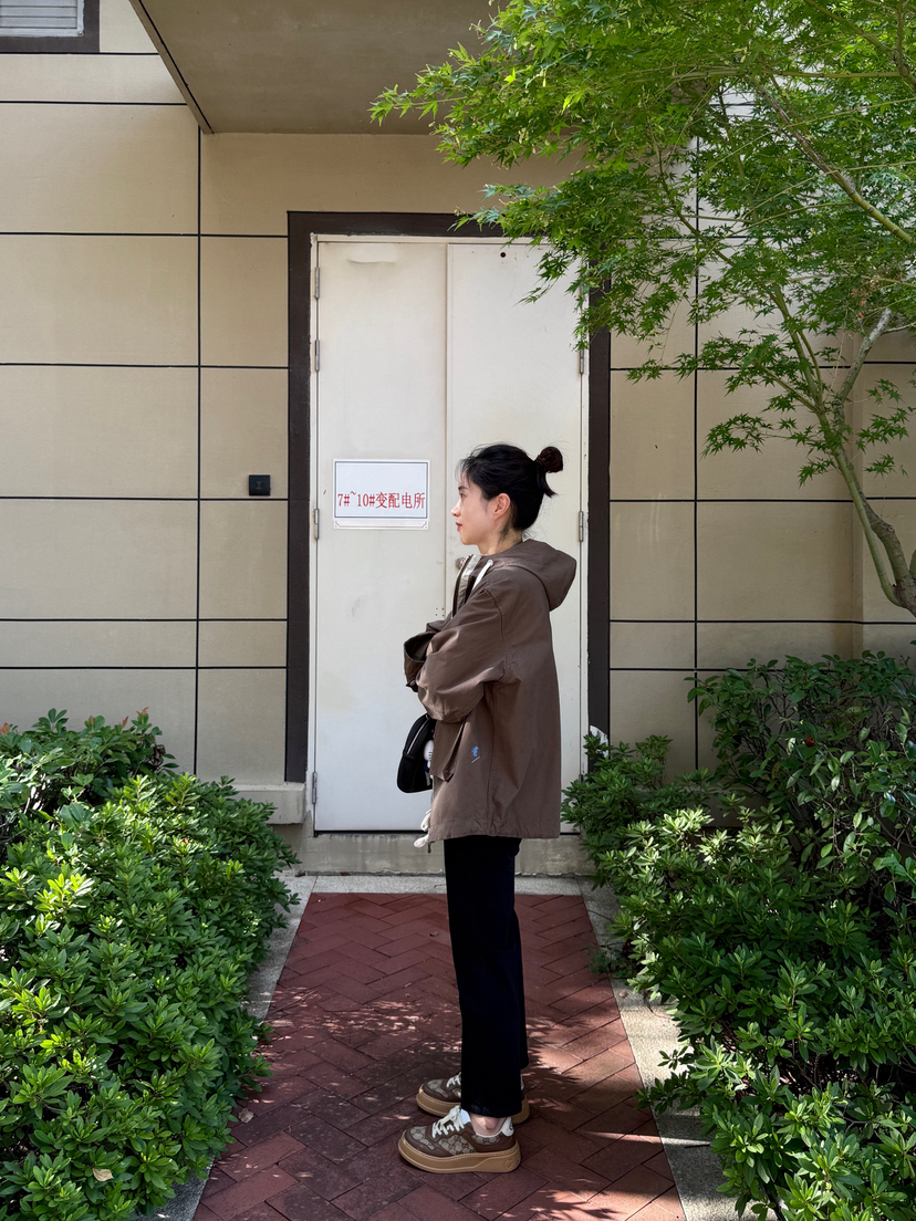 门襟做了拉链+撞色织带,打破纯色单调,与领口和底摆抽绳相呼应,一体感更强,宽松的连帽外套版型,结合面料的挺阔感,塑造良好的衣身廓形感,空间舒适有松量,可容纳各种身材,有肉肉的地方都能遮,隐匿身材弱项,休闲随性又修饰身型,日常无需费心搭配,也能时髦的游刃有余