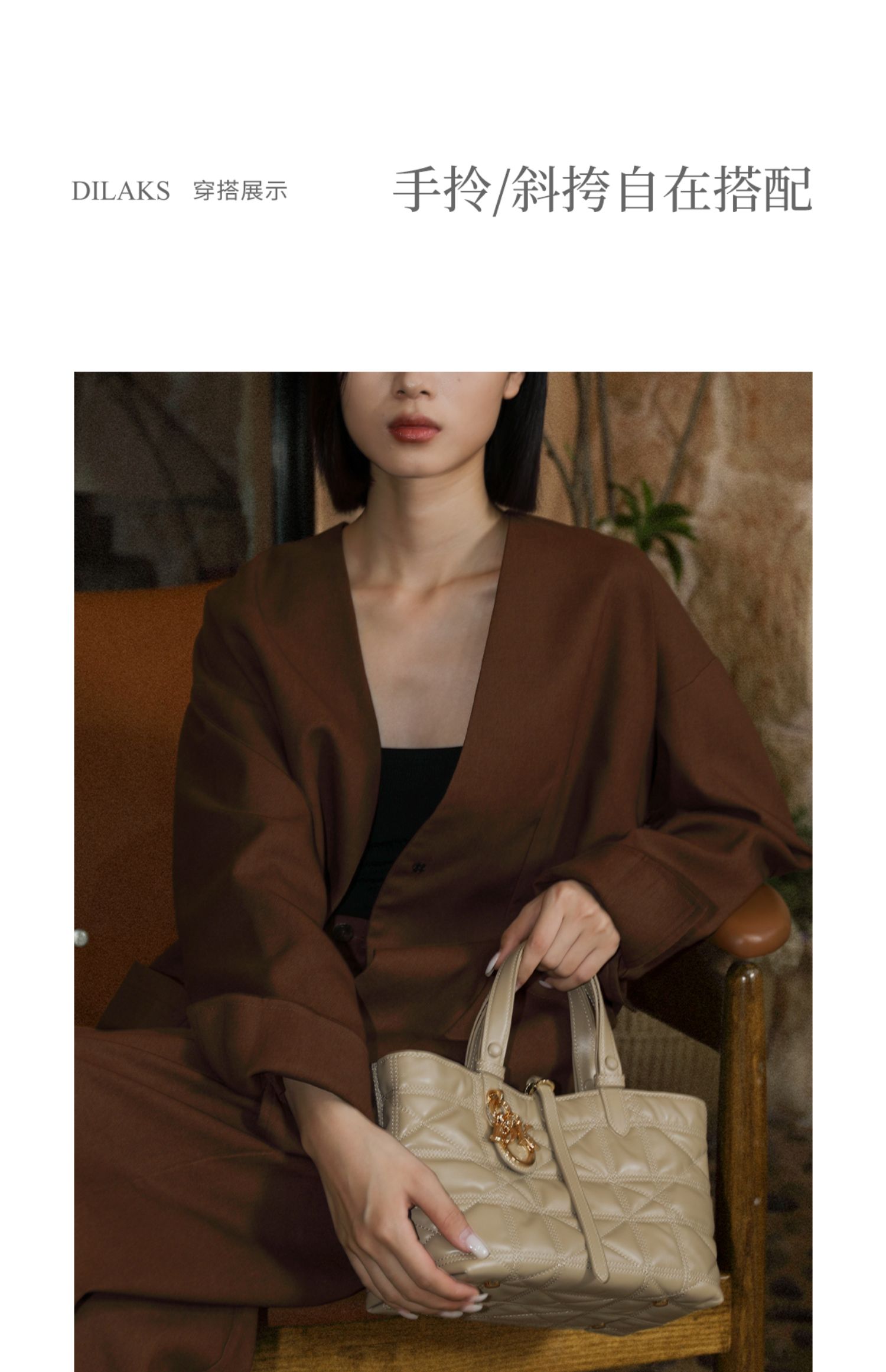 DILAKS迪莱克丝 2024年秋季菱格手提包轻奢风格气质款菜篮子托特包