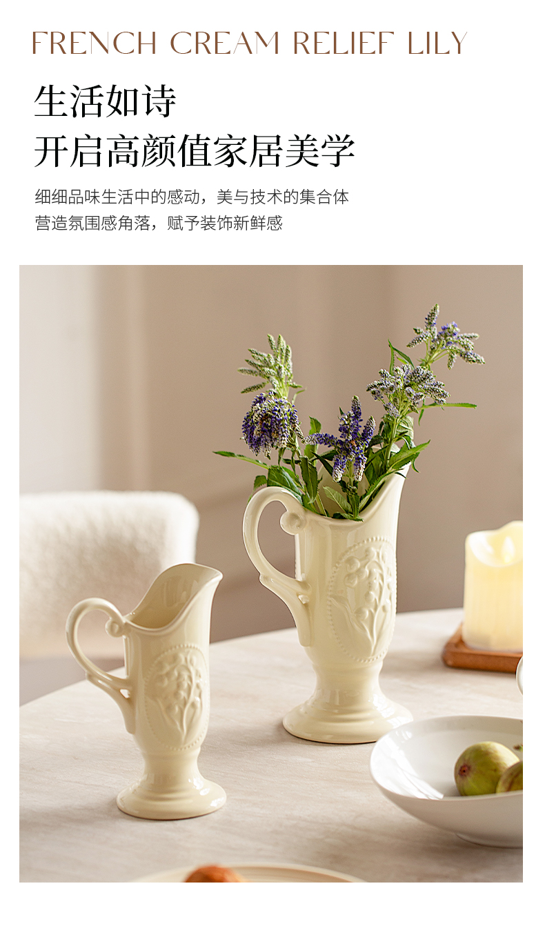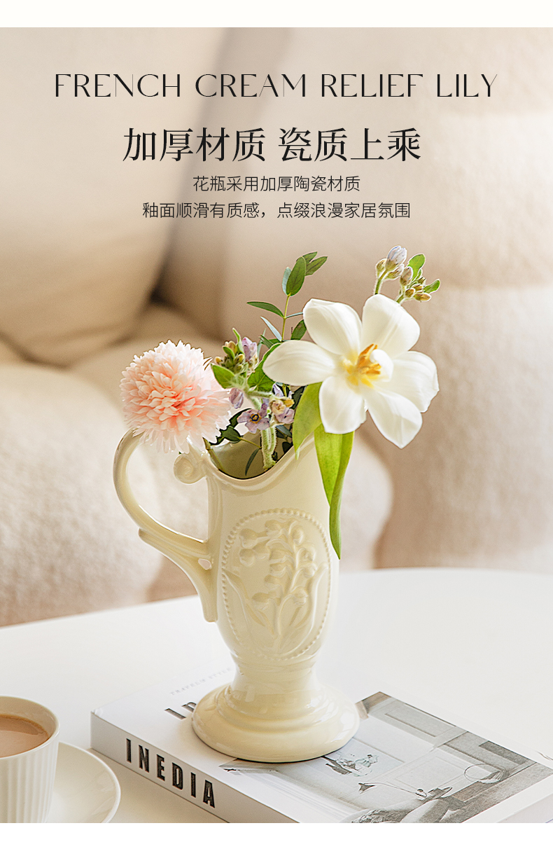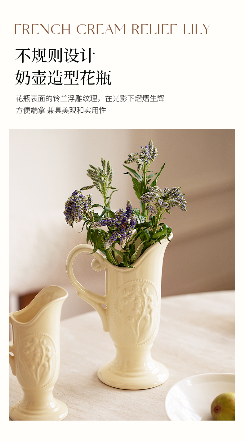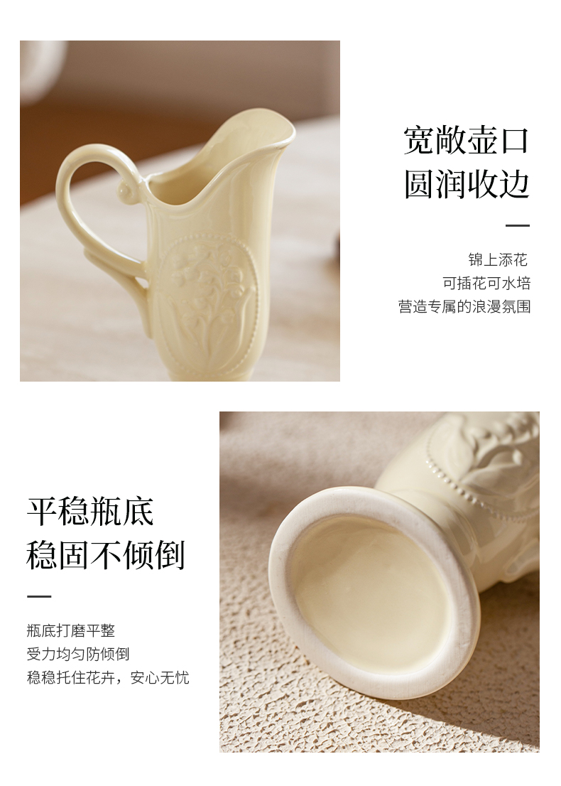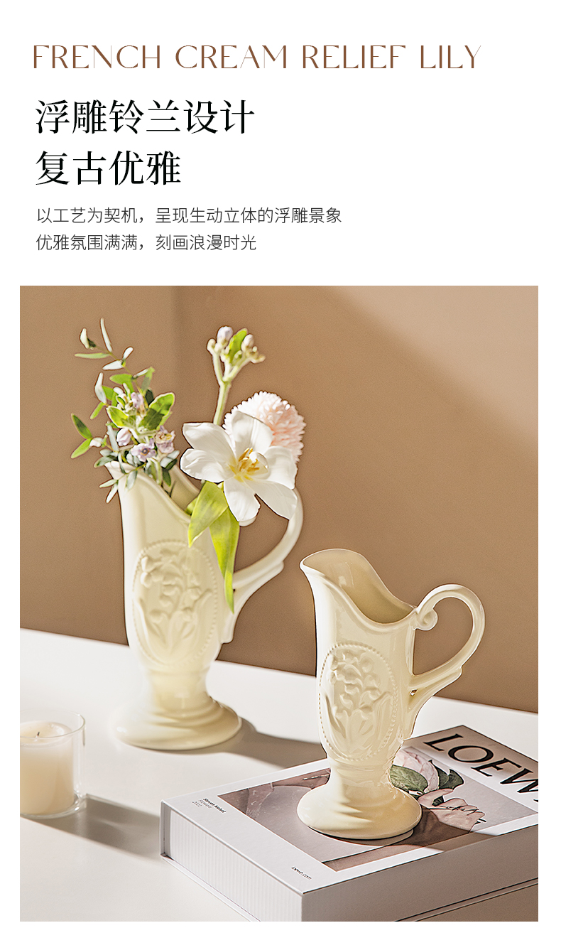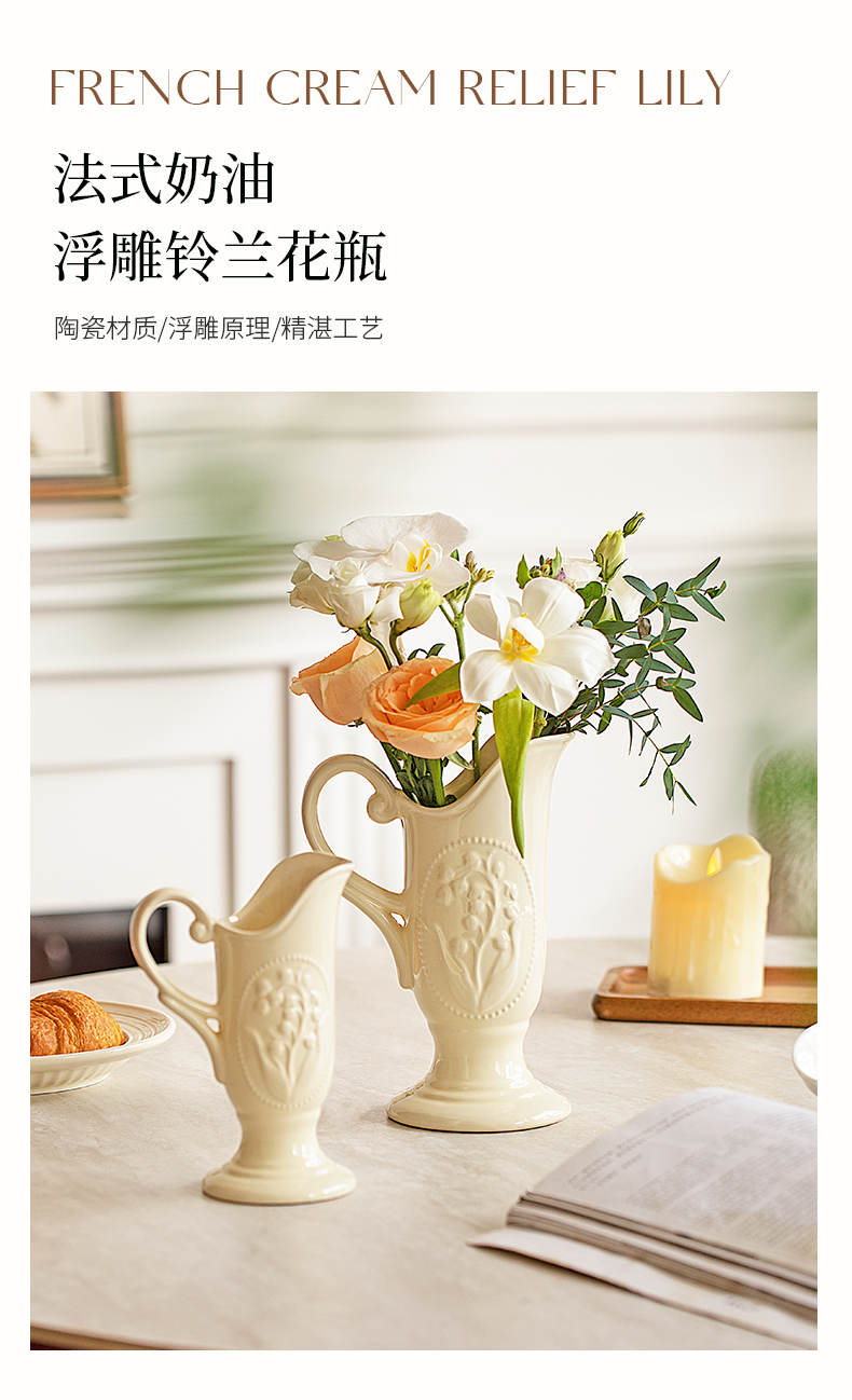 摩登主妇法式花瓶复古浮雕铃兰轻奢风高级感陶瓷摆件客厅水培插花