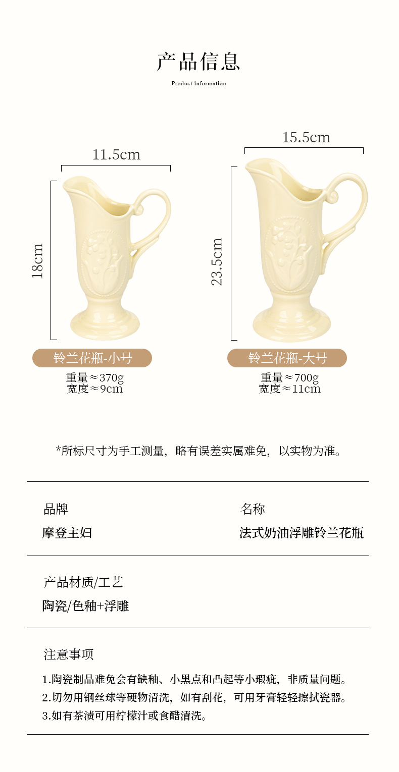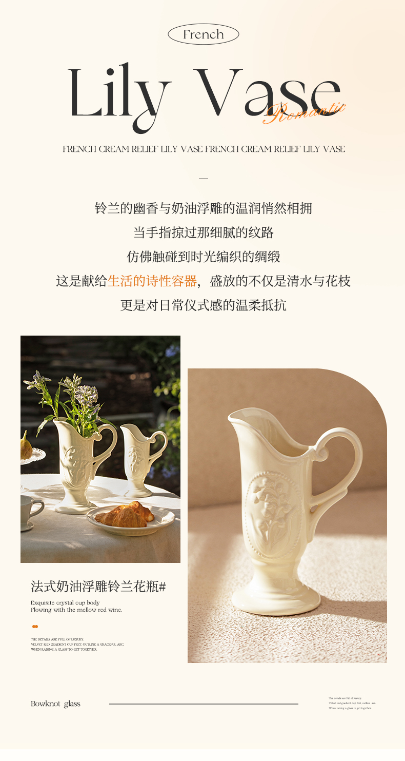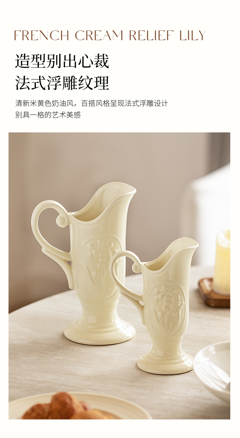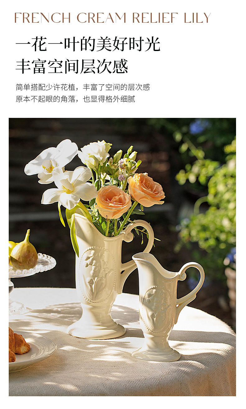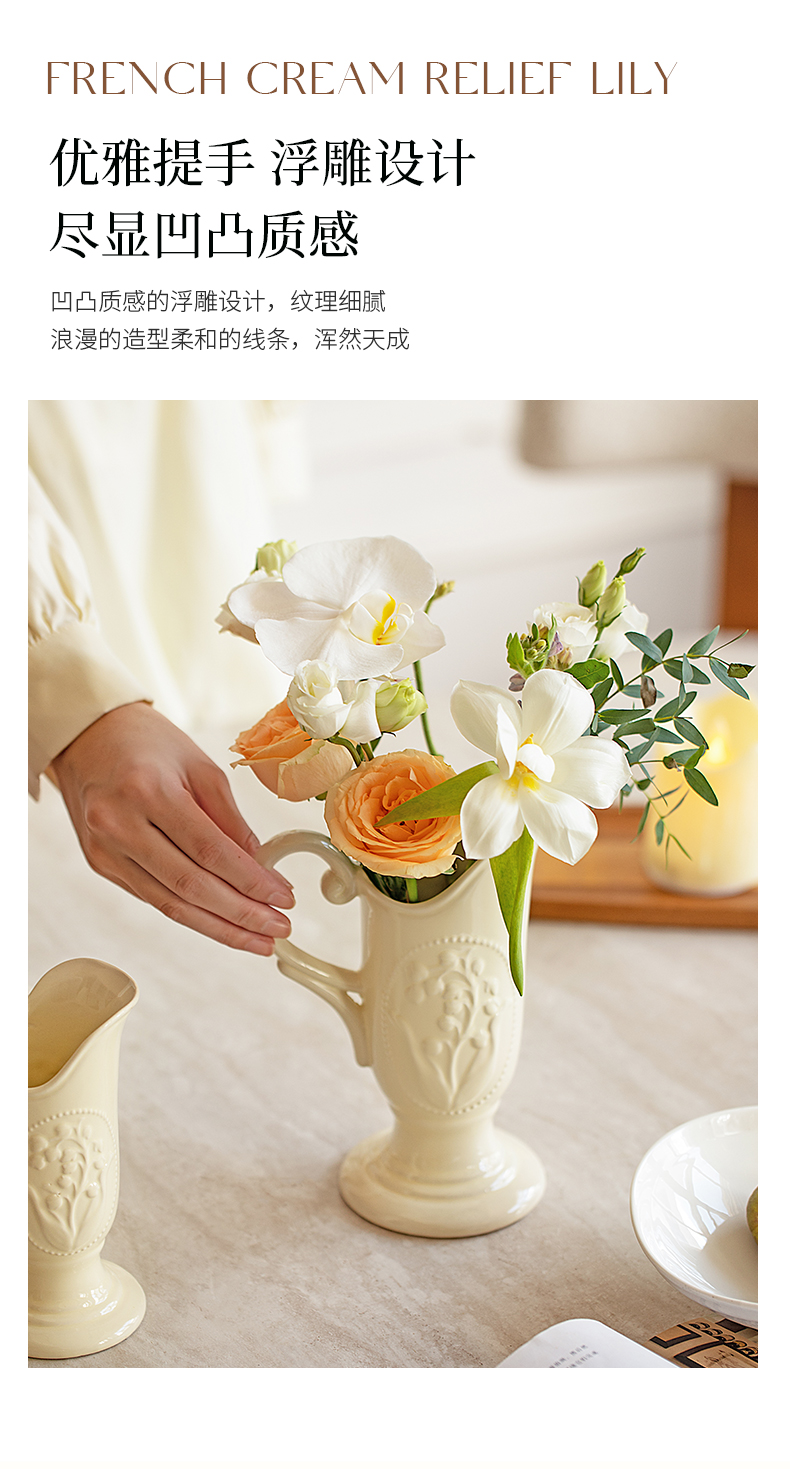 摩登主妇法式花瓶复古浮雕铃兰轻奢风高级感陶瓷摆件客厅水培插花