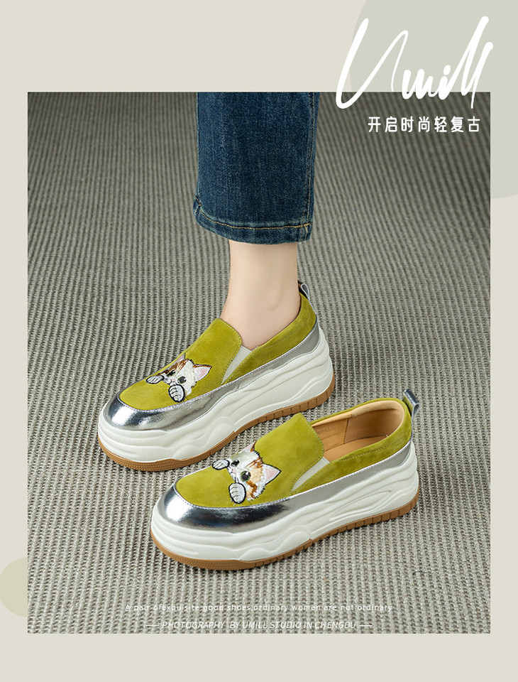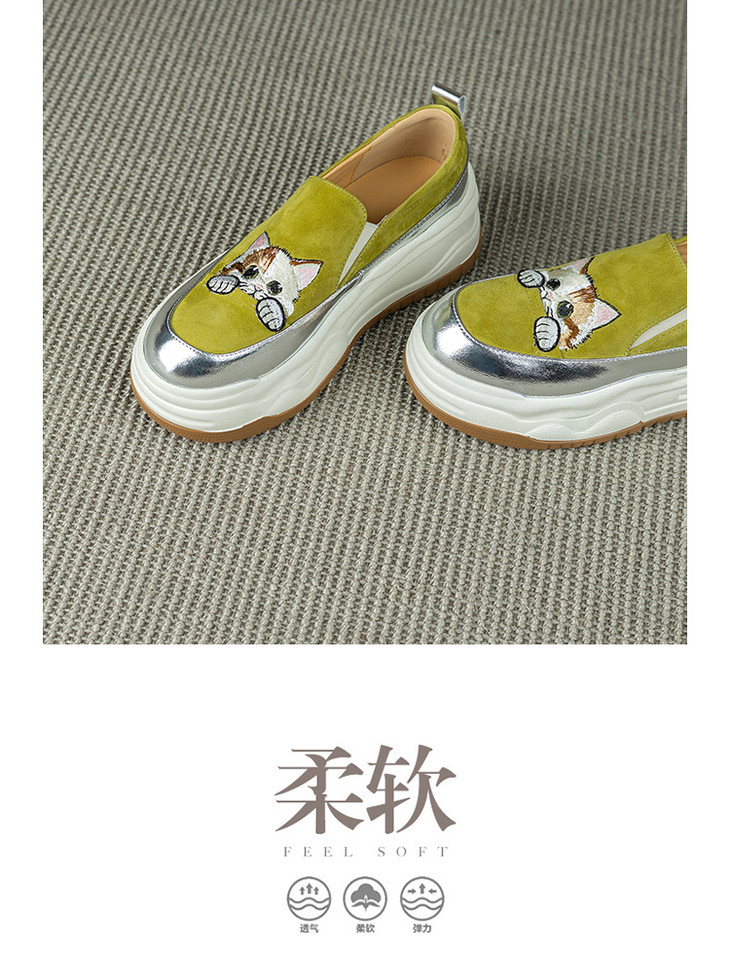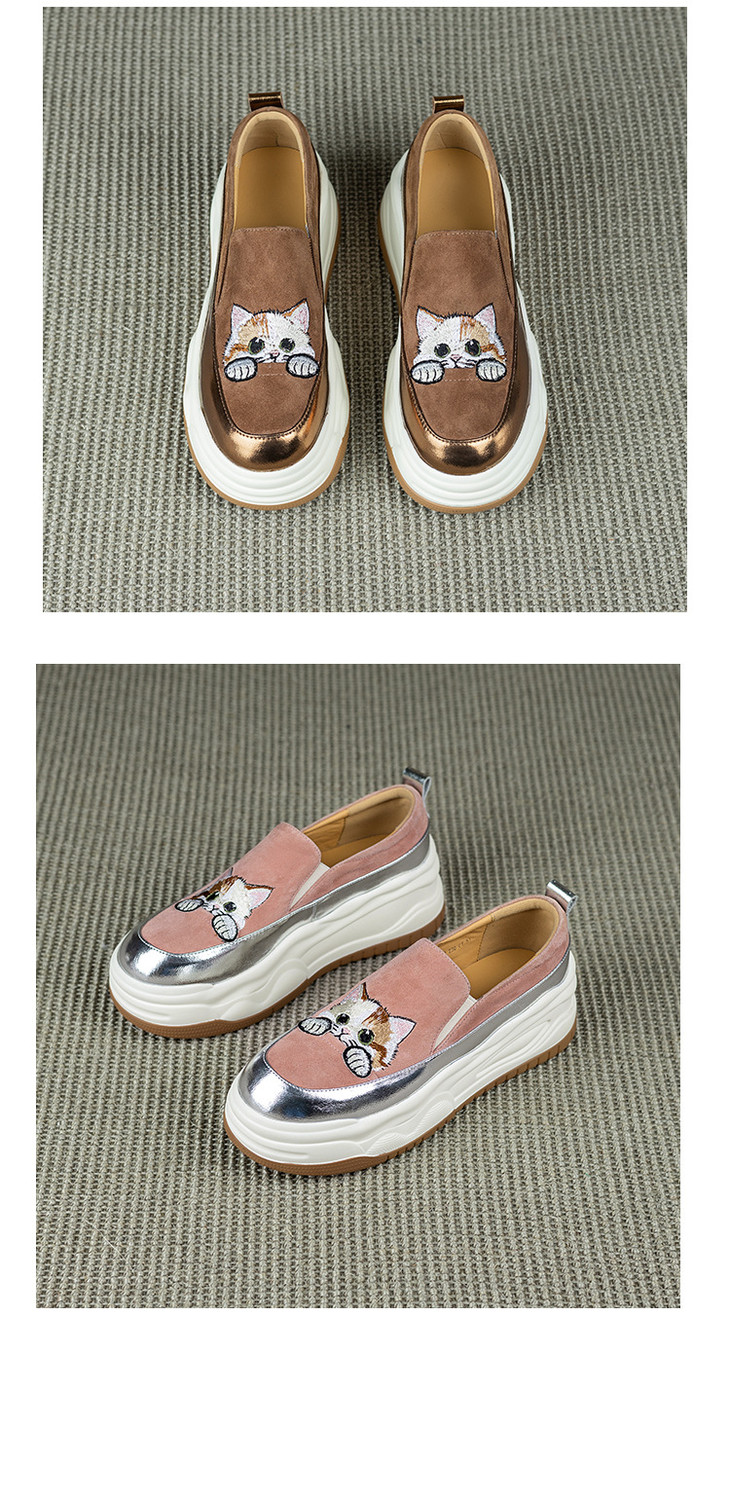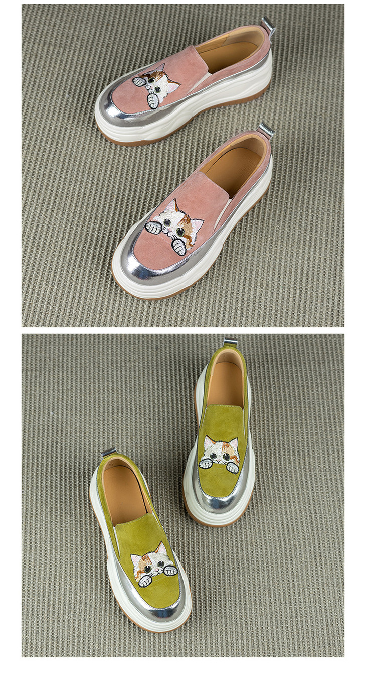 【预售5天】新款圆头拼色可爱猫咪松糕底小个子增高深口减龄乐福鞋YX&S002