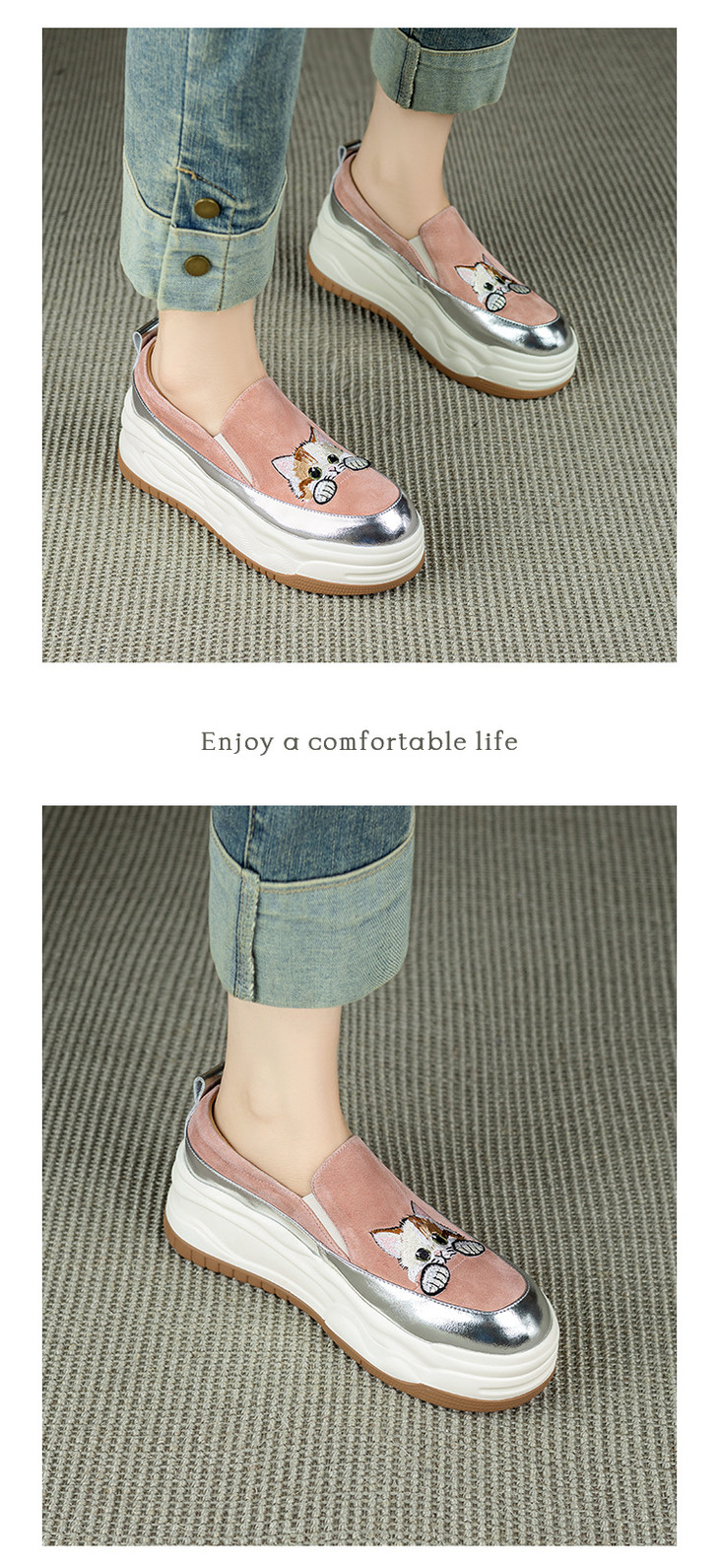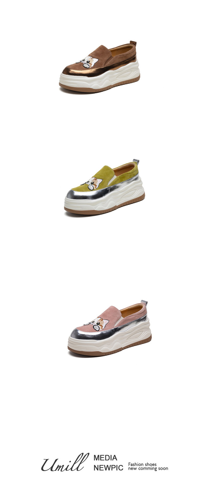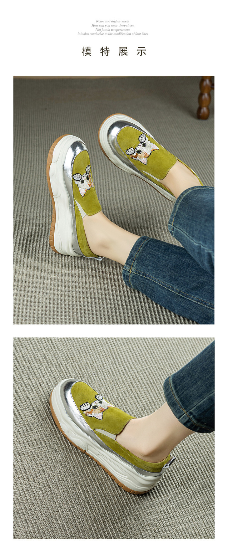 【预售5天】新款圆头拼色可爱猫咪松糕底小个子增高深口减龄乐福鞋YX&S002