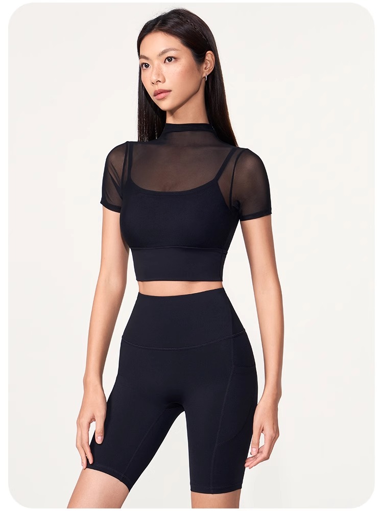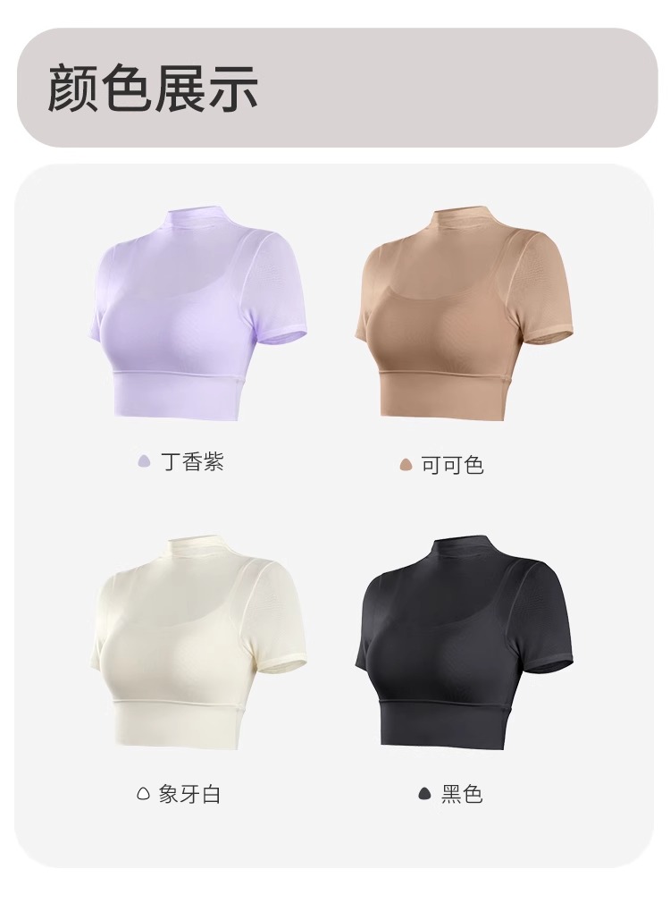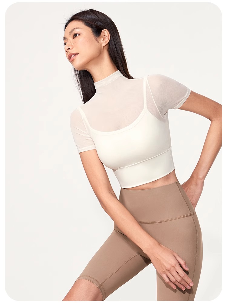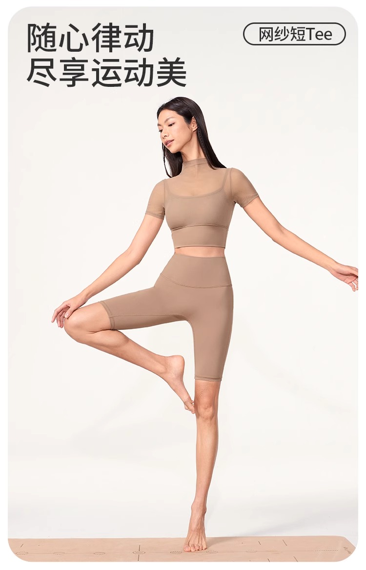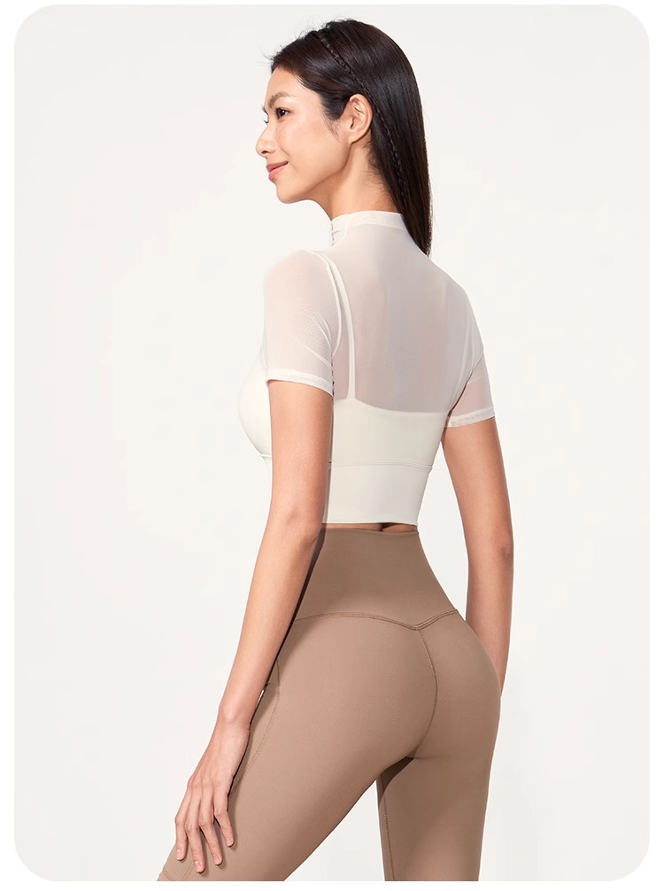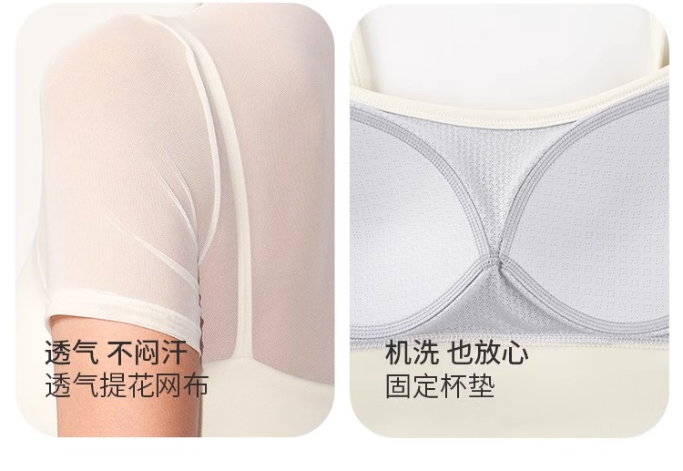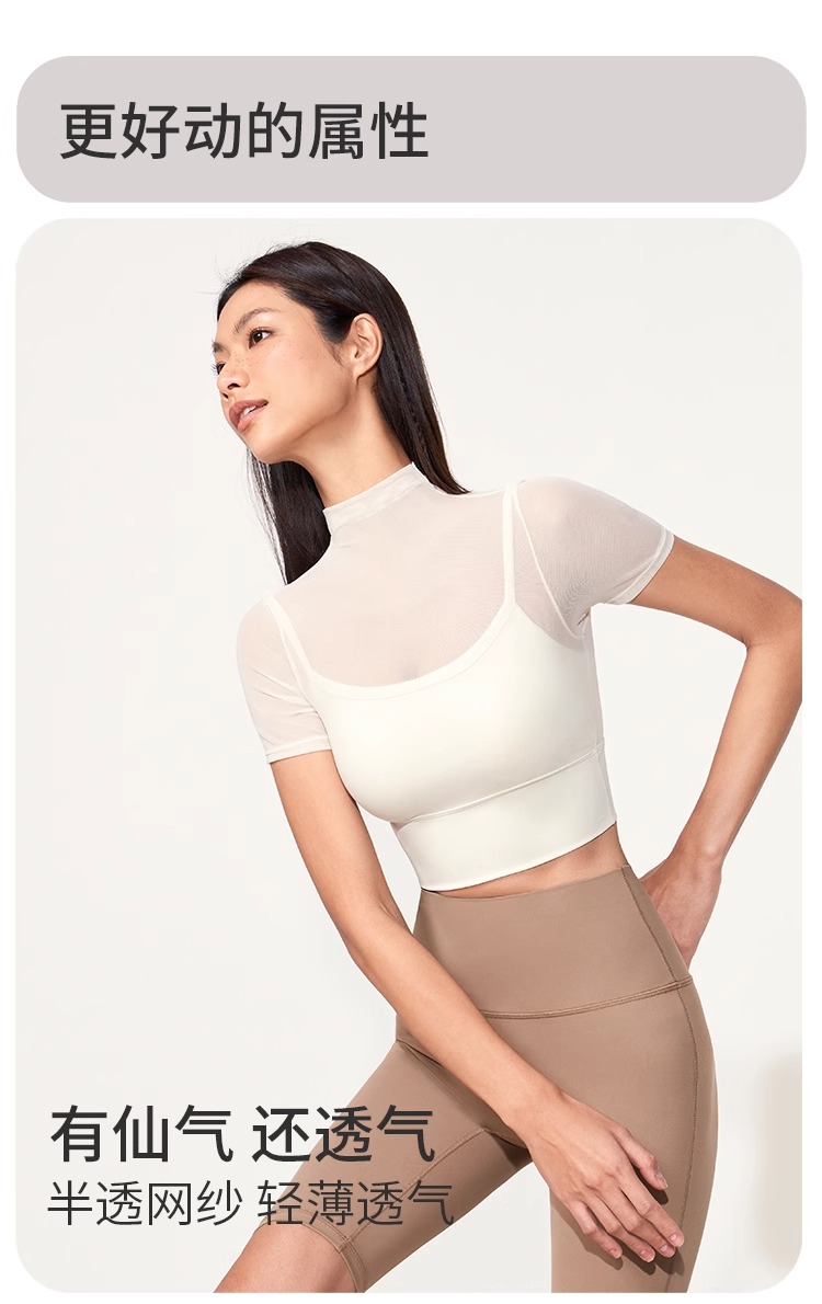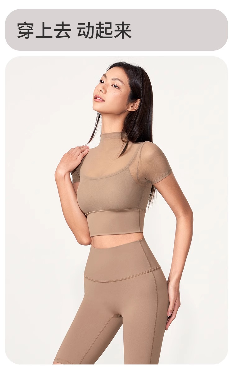 跃牌【禅语梵心】性感网纱瑜伽服短袖带胸垫跑步速干运动文胸DX2585