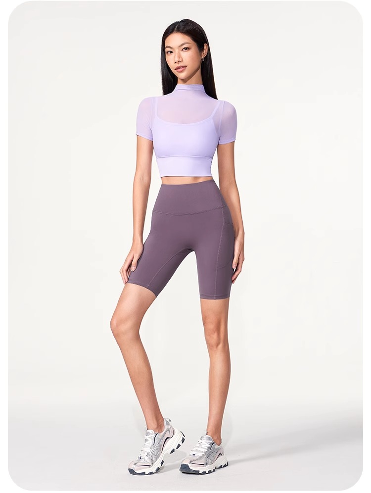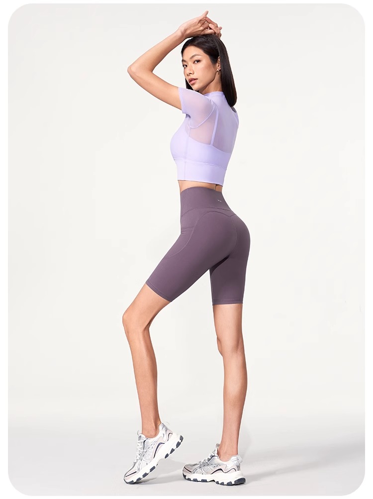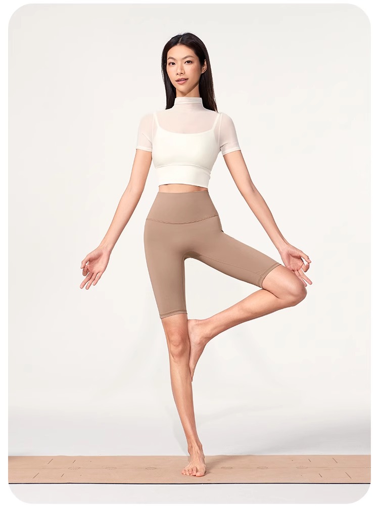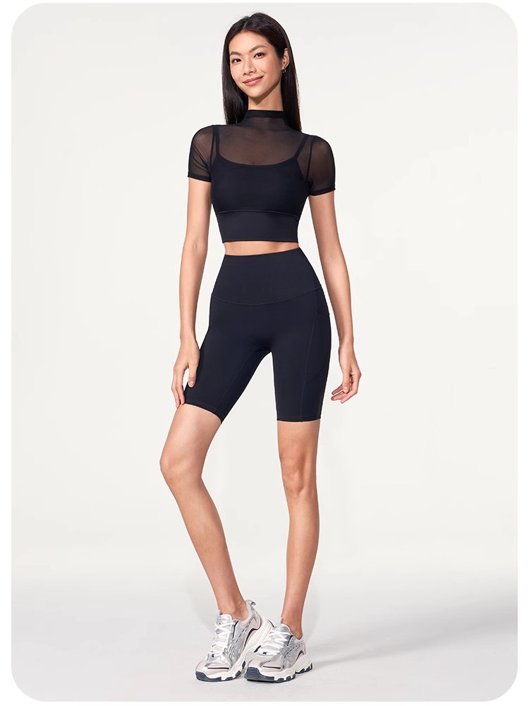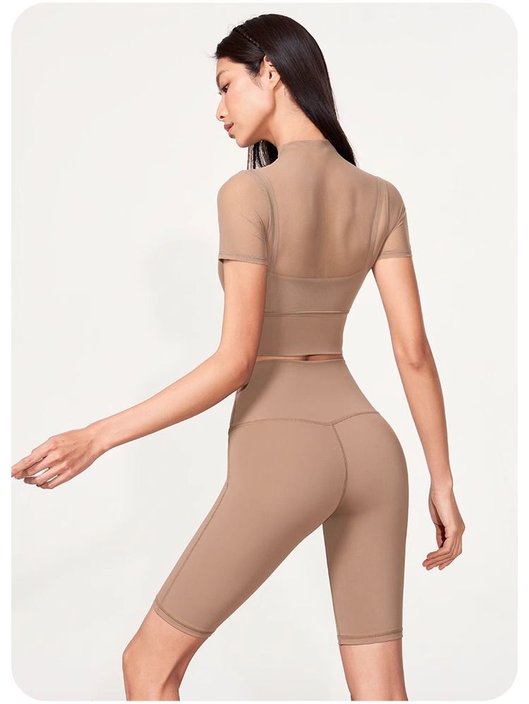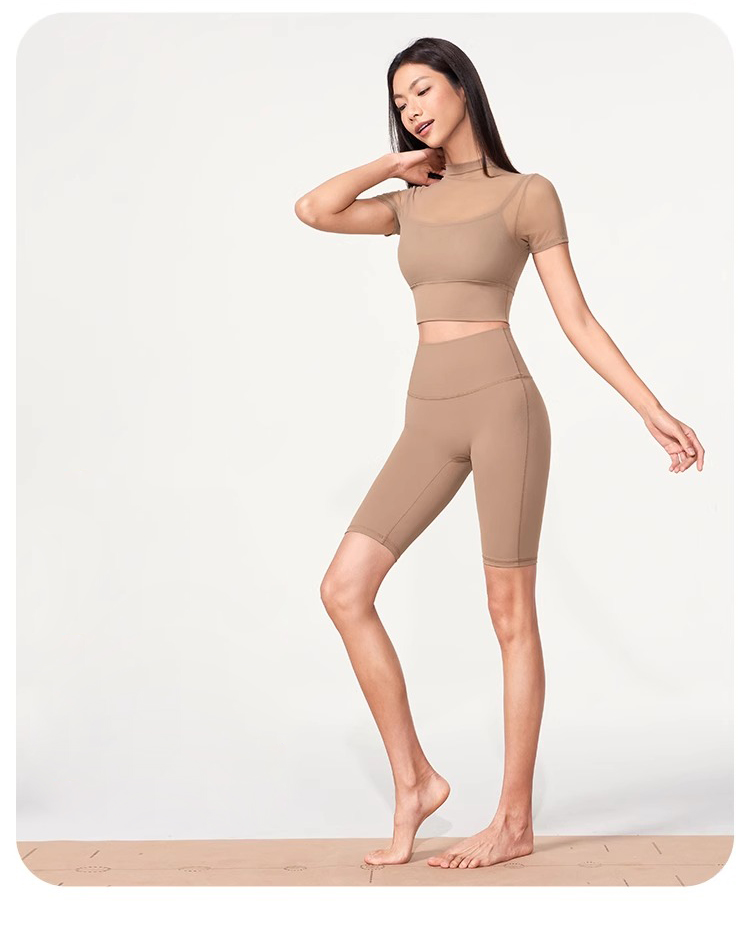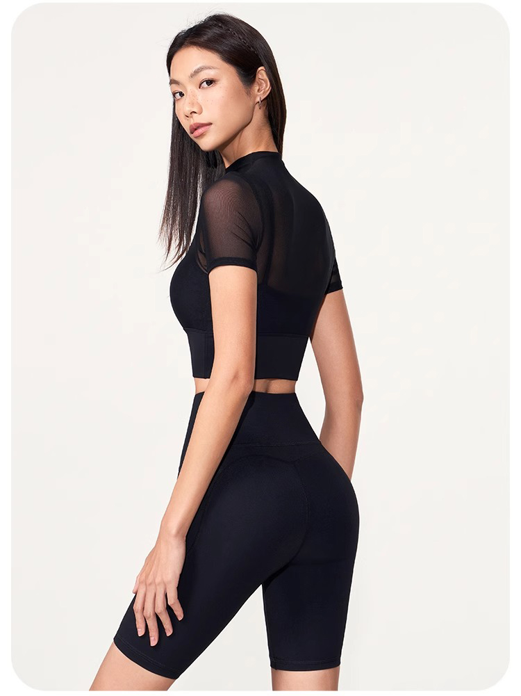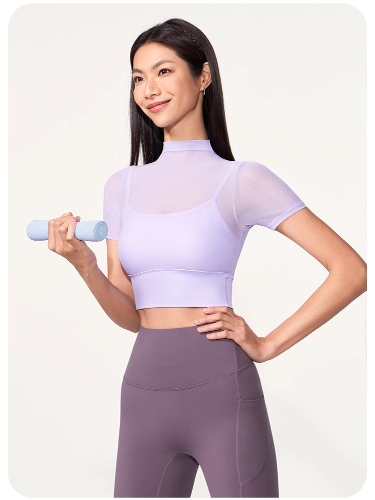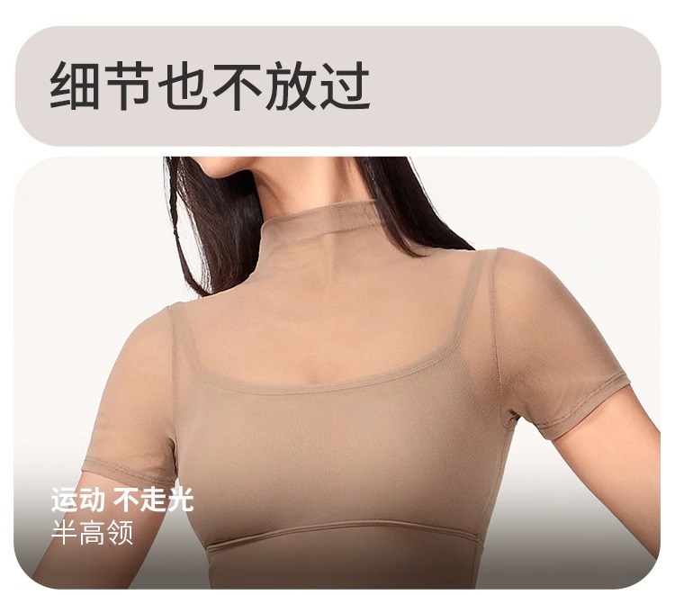 跃牌【禅语梵心】性感网纱瑜伽服短袖带胸垫跑步速干运动文胸DX2585