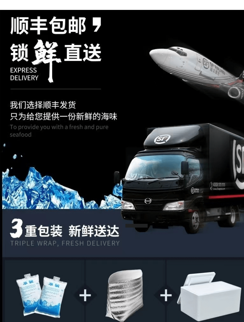 1、为保证您品尝到最新鲜的海鲜,捕捞后直接精选好货船上超低温冷冻保鲜,发货时再从冷库取出打包。受天气物流等因素的影响,您收到的海鲜无论是微结冰或者轻微解冻变软,都属于正常情况,鲜度不受到任何影响,这种情况不在售后范围之内。如收到海鲜常温完全解冻导致海鲜腐烂有异味,按海鲜损坏比例赔付,超过总数量70%的补发一箱,