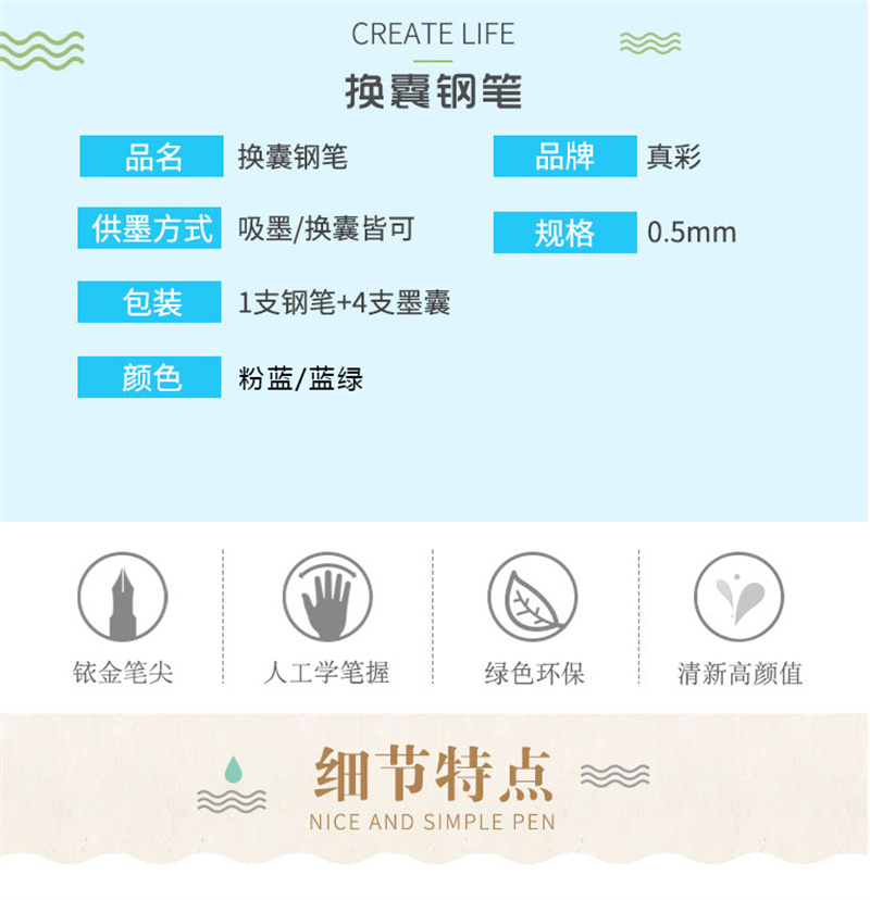 unisun钢笔3支装 送墨囊3瓶36支 .笔夹时尚曲线,握笔区双侧握笔凹槽,EF笔尖