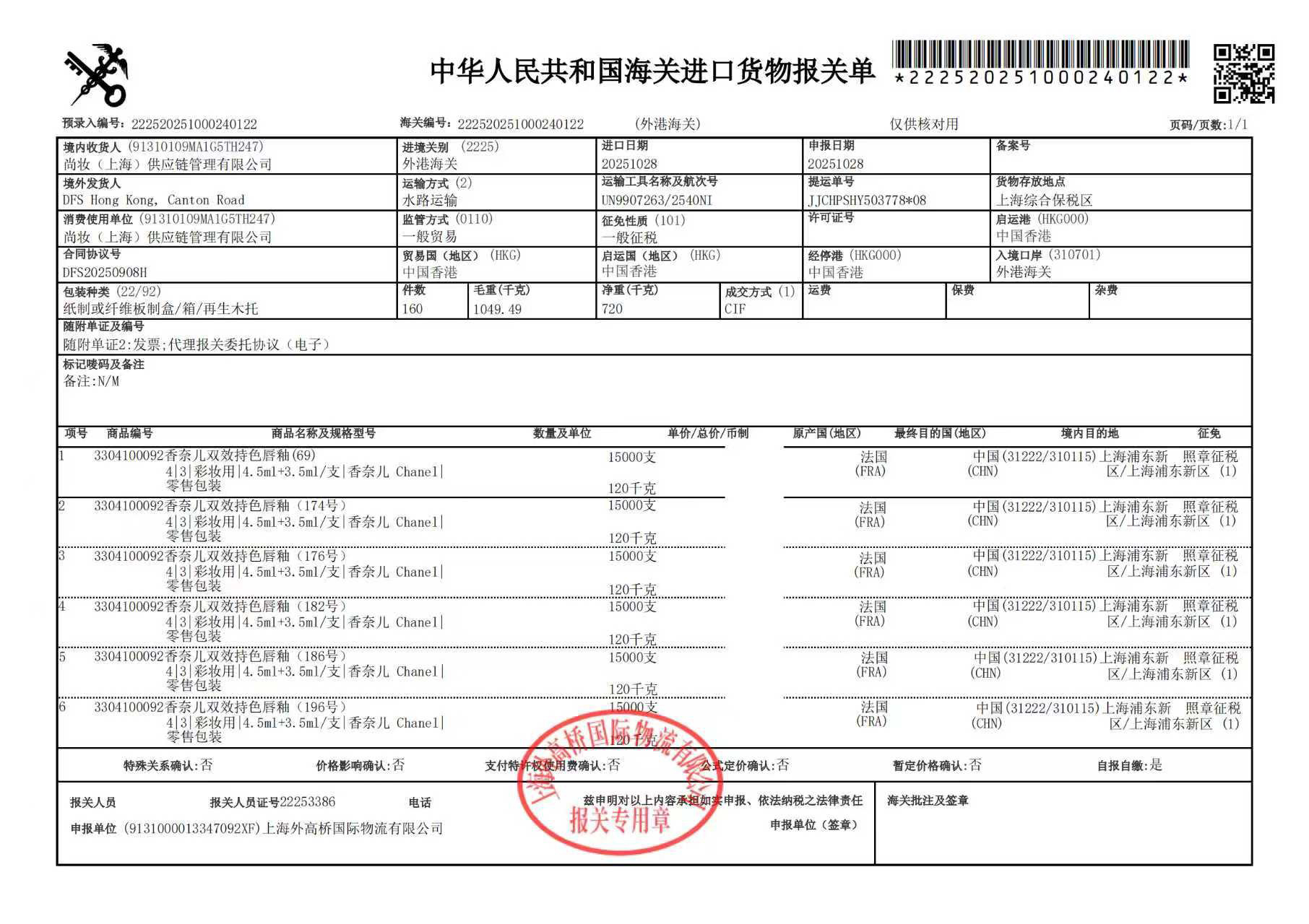 全部海关正规贸易单 链路清晰 可追溯 保质期到