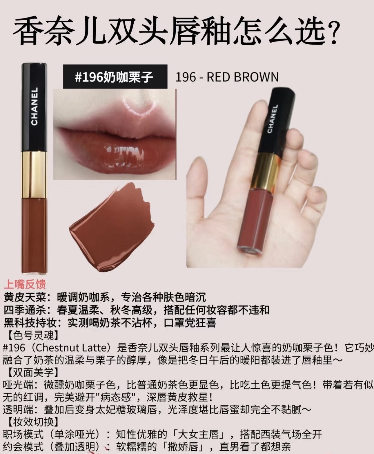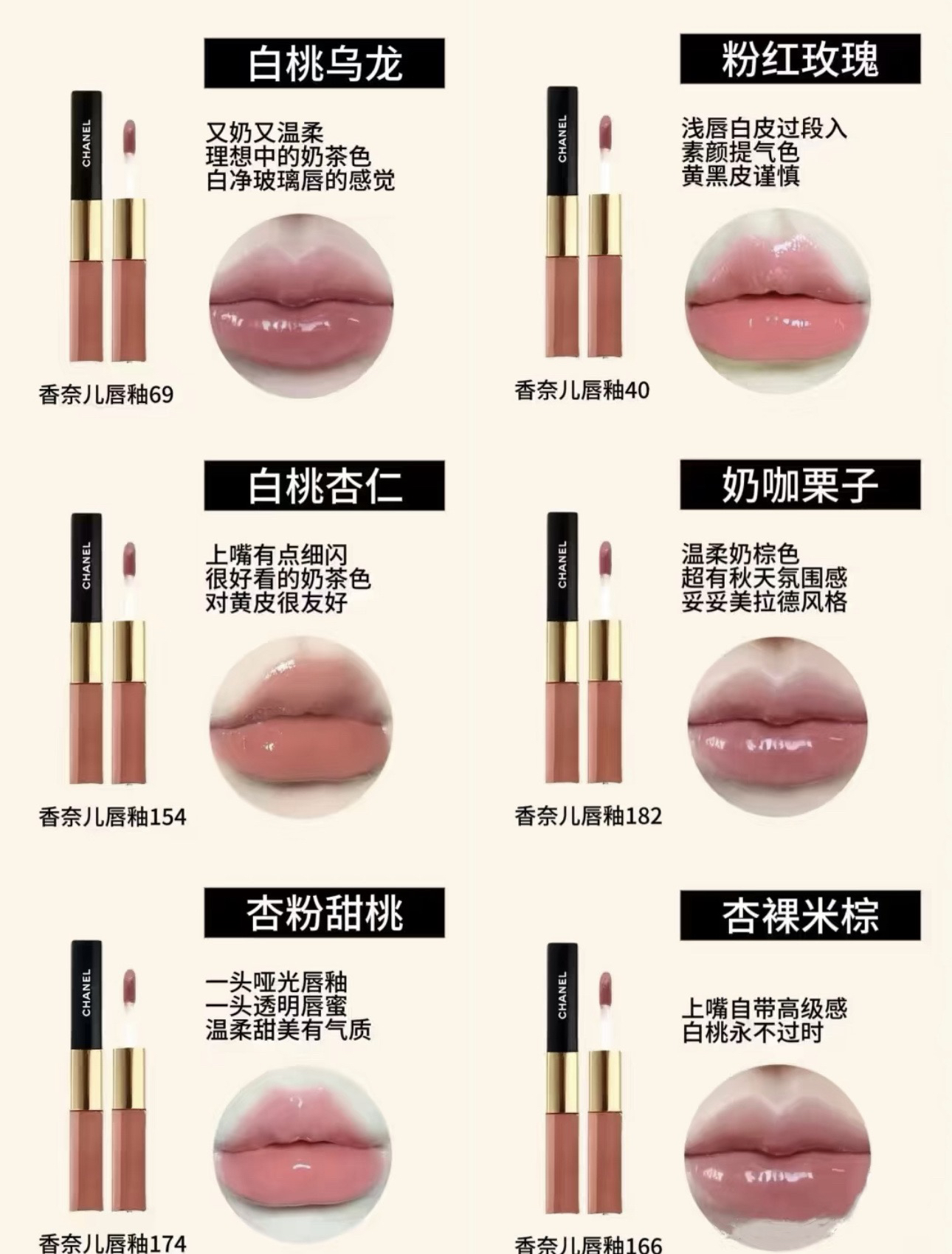 净含量:3.5ml(透明唇蜜)➕4.5ml(有色唇釉)‼️【40色号#】~天生好唇色的浅粉调 完全不挑肤色,黄皮涂也能显白提气色;叠加亮泽后,嘴唇像刚喝饱水一样 自带粉润感!【48色号#】~干枯豆沙玫瑰色,薄涂是自然挂伪素颜神器,黄皮素颜也能hold住;厚涂叠上自带的透明唇釉,气质瞬间拉满 秒变韩系名媛!【54色号#】~草莓水红调 妥妥的韩系女团色,非常减龄又显嫩 超甜美的色系!白皮的姐妹闭眼冲这个就可以~【69色号#】~深浅唇都能涂出绝美的颜色 灰调的浅色系 温柔优雅超显气质,黄黑皮也能hold住!美女都超爱的裸色系~【154色号#】~上嘴直接就被154征服 它是裸奶茶色 很大气又显贵 低调温柔的调调真的超爱!【174色号#】~娇嫩欲滴的白桃色 简直就是追求素颜 和白开水妆效姐妹们的心头爱,黄皮深唇素颜都可以去冲的一支粉嫩唇釉!【182色号#】~裸色系的高智感满满 超有成熟气质的颜色 薄涂厚涂都出彩,上嘴的瞬间整个妆面都很有灵气,素颜涂也毫无压力!【186色号#】~简直就是黄皮亲妈!暖调枫叶色系,专治各种肤色暗沉 从初秋美到深冬,搭配毛衣大衣都美到窒息!【188色号#】~女明星的同款色号!日常百搭的奶茶裸棕 上嘴温温柔柔超软糯 抬气色又显白!【196色号#】~奶咖栗子色 又是一个超有秋冬氛围感的神仙色系,单涂是绝美的橘调感的美拉德色系叠涂瞬间get玻璃唇!