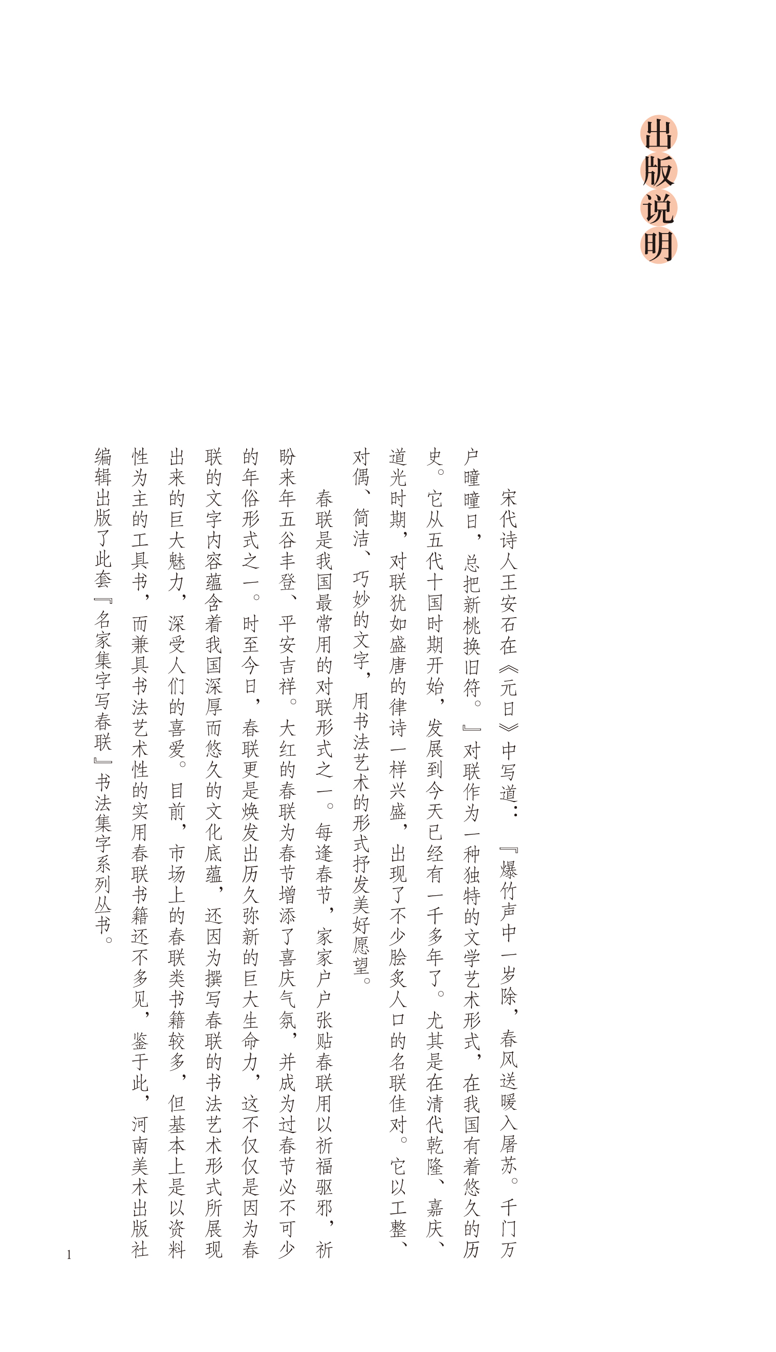 (修订本)名家集字写春联·楷书 行书 篆书 草书 隶书 5本 作者介绍: 余德泉,著名楹联专家、书法家,湖南省文史馆馆员,中南大学教授,硕士研究生导师,其书法诸体兼擅,尤精于章草和隶书,其楹联方面的贡献曾获得首届梁章钜奖金奖,有多种书法专著和研究楹联方面的专著出版。 内容介绍: 该套系列丛书是为了迎合当下年俗文化繁盛和书法文化复兴繁荣的势头而推出的书法实用工具书,全书收录近百幅春联,此套书与以往单人单册集字不同,该书集楷书四大家——颜柳欧赵四家之体,为读者提供不同字体的学习临写范本。书后还有百副精选春联,其中有些为新时代春联,新题材,新内容,紧跟时代主题,还有一些是与我们生活中多个行业相关的主题春联,以便读者参考。 编辑推荐: 《名家集字写春联》系列精选春联及横批近百副,内容广泛,形式多样。范字皆选自历代书法名家经典碑帖,具有典型性、代表性,是揣摩、学习、品赏春联书法艺术的最优选择之一。该丛书所选用的书法字体不囿于一家一派,而是更注重其艺术性,在风格上力求统一与协调,结构端正匀称、字姿优美潇洒、用笔圆润灵秀、布局密中有疏,使人们感到每一副春联都是一件难得的艺术佳作。该丛书以楷、行、隶、草、篆五体分别成书,便于读者按需购买。