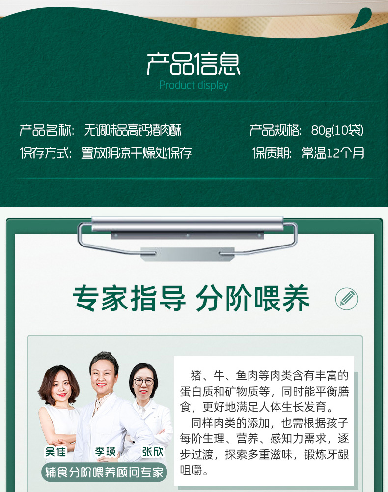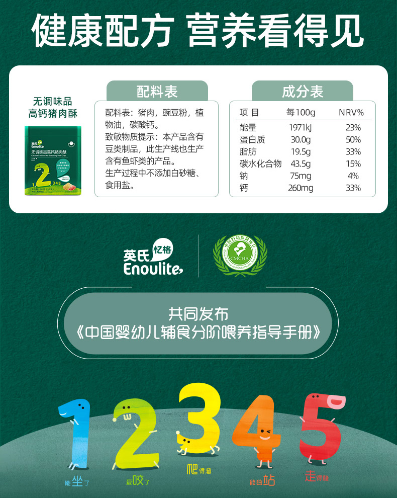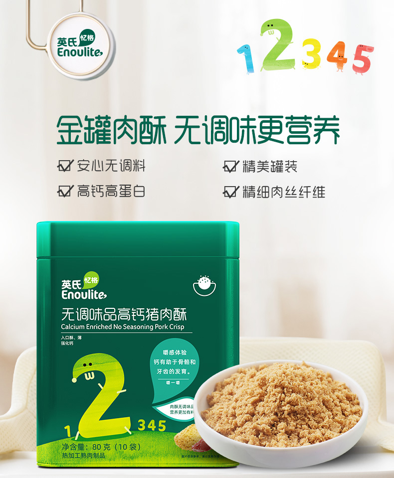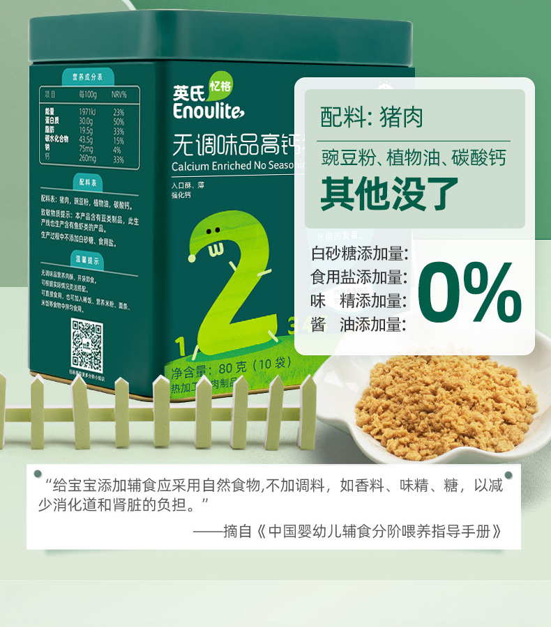 英氏*无调味品高钙猪肉酥2段80克(10袋)