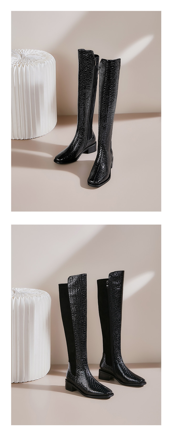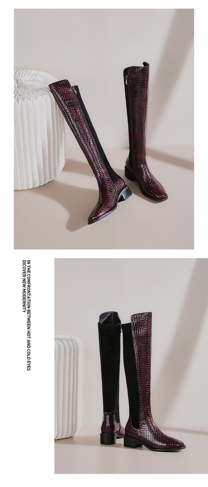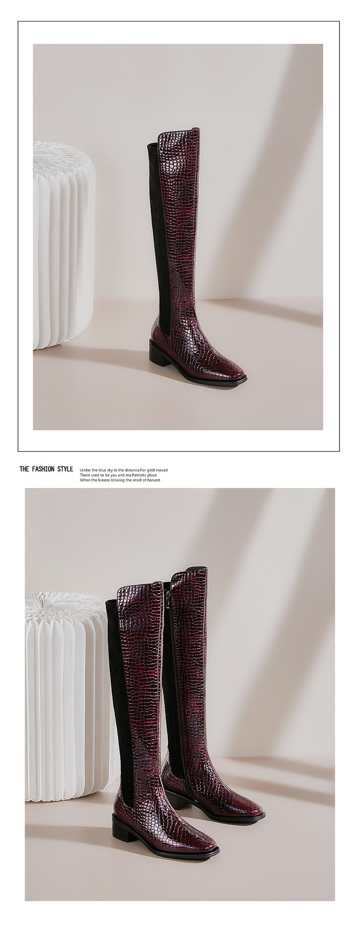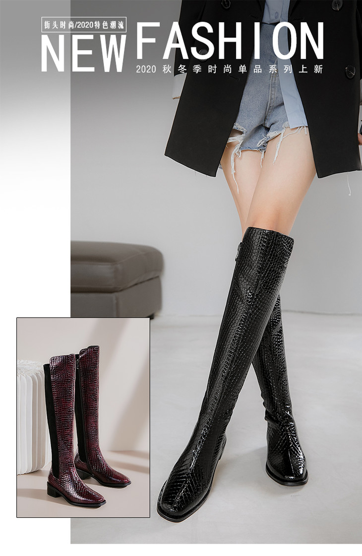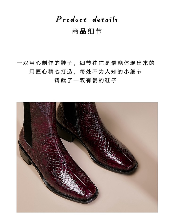 上海旗袍厂DTN-992-7 秋冬新款石头纹圆头低跟弹力靴侧拉链简约时尚个性百搭时装靴