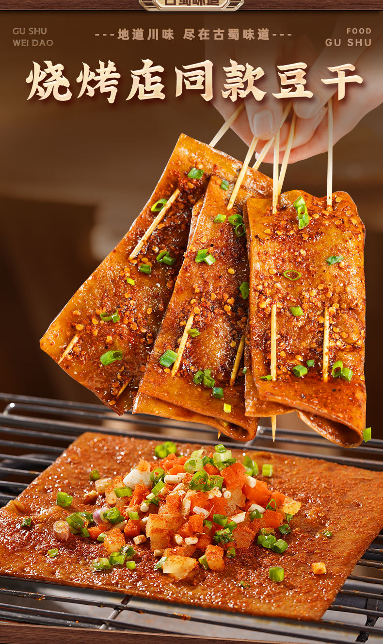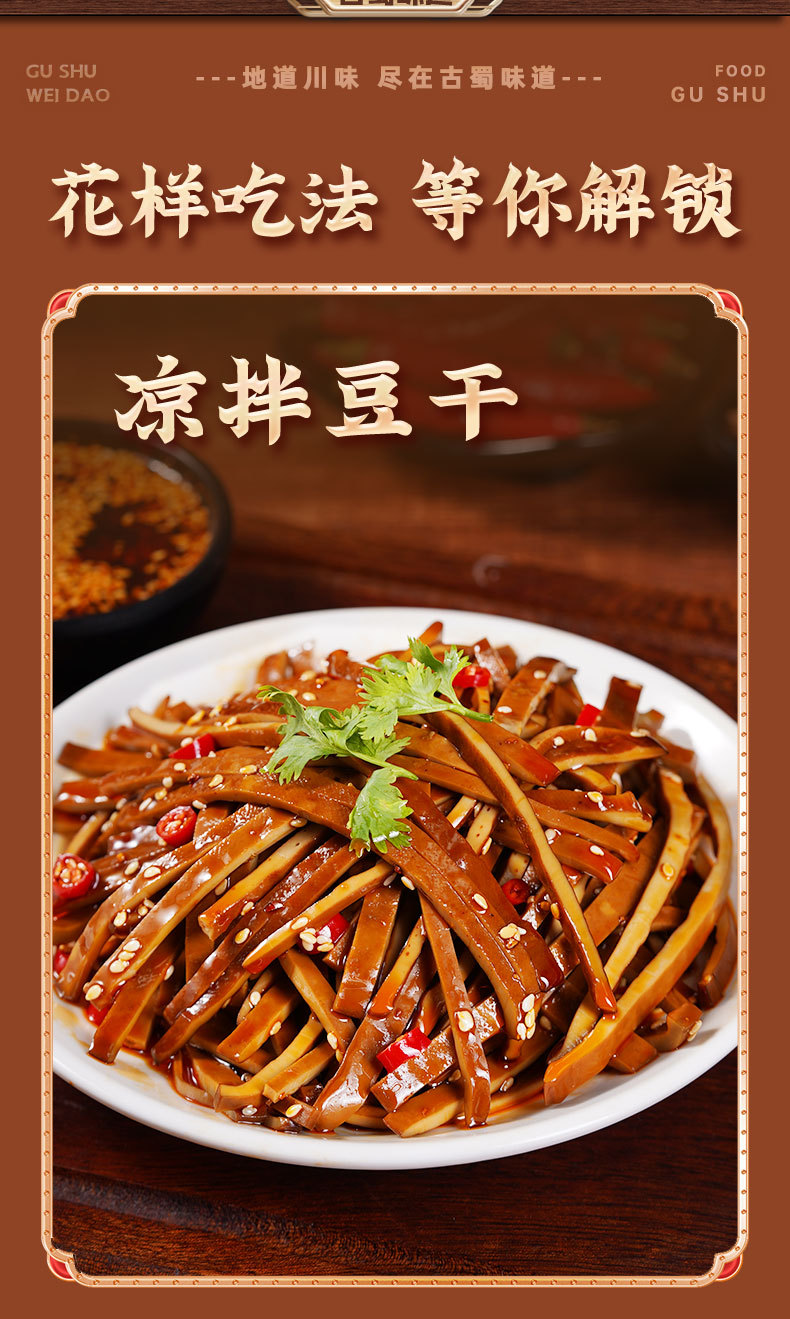 【卤香味浓❗️口感Q弹有嚼劲】古蜀味道牛皮豆干250g送小干碟五香火锅食材烧烤豆干卤凉拌豆腐干。jc
