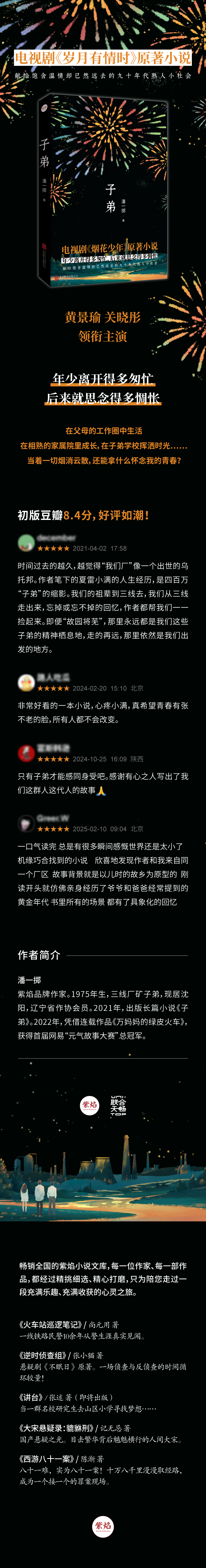 作为厂矿子弟生活的亲历者,潘一掷笔下丰富的时代细节、社会转型期的写实对照、九十年代的泛黄质感,为读者带来了情感追忆,在子弟群体中引起强烈反响。