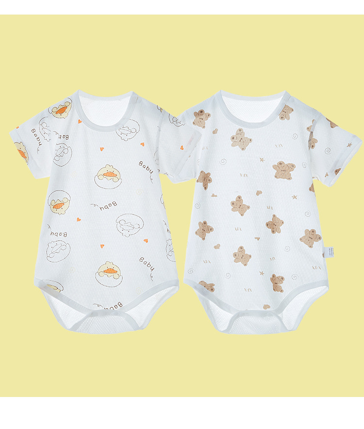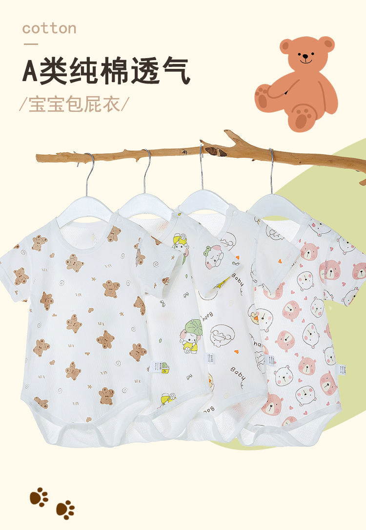 【纯棉三角哈衣,透气薄款】婴儿包屁衣 宝宝纯棉三角哈衣 薄款女宝新生儿半袖衣服爬服 透气夏款-QQ