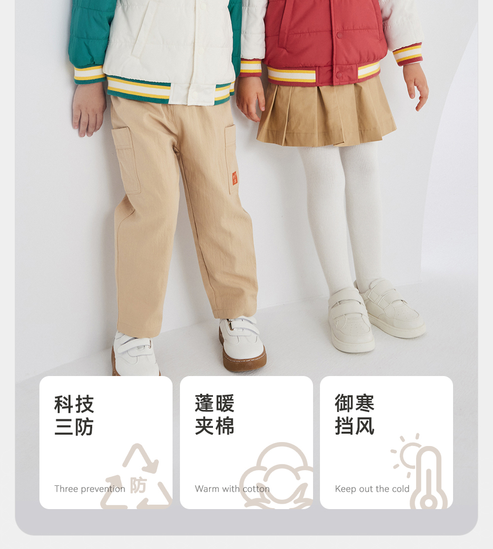英氏童装三防外套男女童棒球服夹棉保暖秋冬款