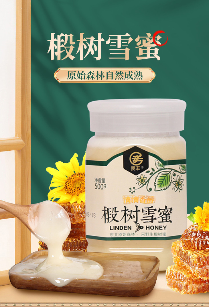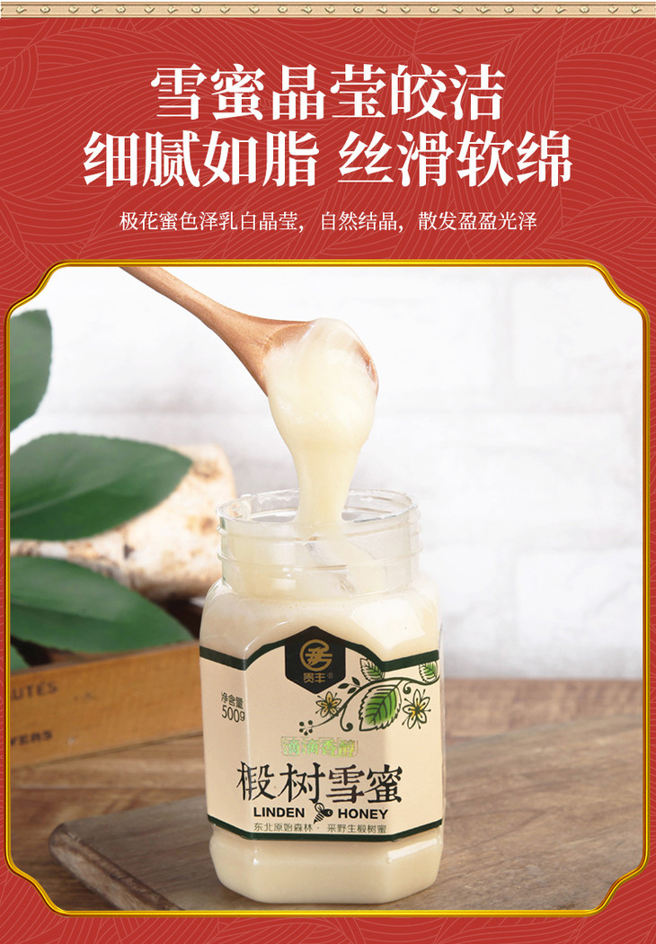 【贵丰 椴树雪蜜 500g*2瓶装】黑龙江北大荒椴树雪蜜东北黑蜂蜜农家椴树雪蜜