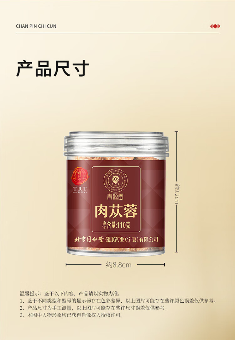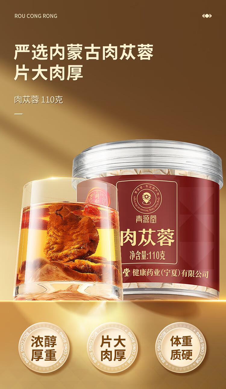 【正宗同仁堂品牌】北京同仁堂 青源堂 阿拉善肉苁蓉110克 内蒙古原产 片大肉厚 口感浓醇 汤色透亮 SY