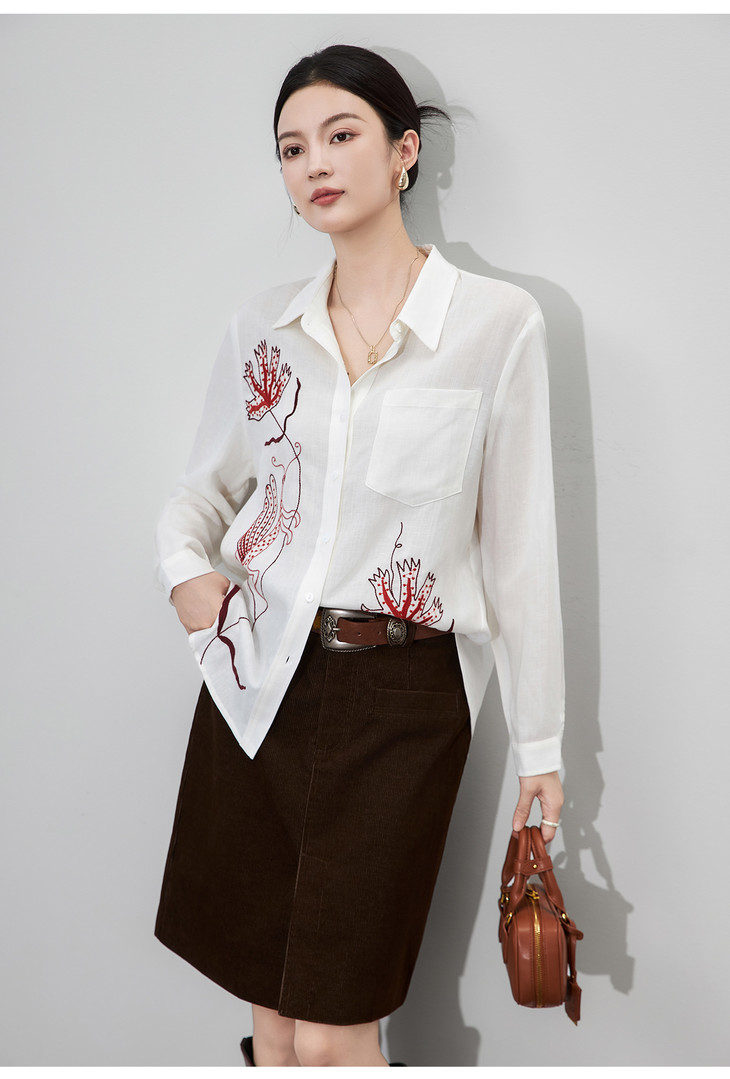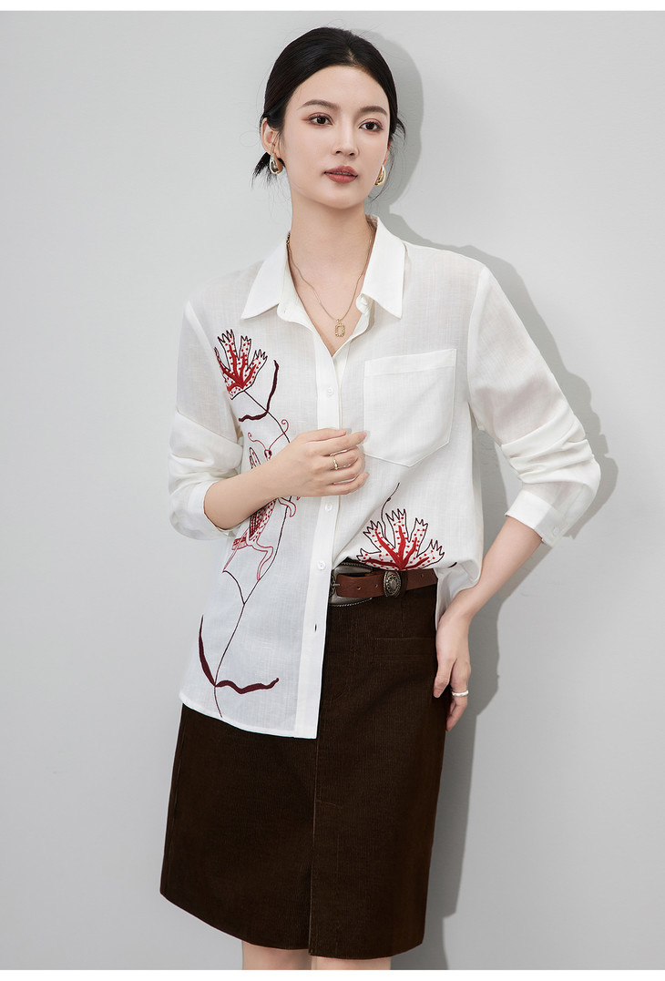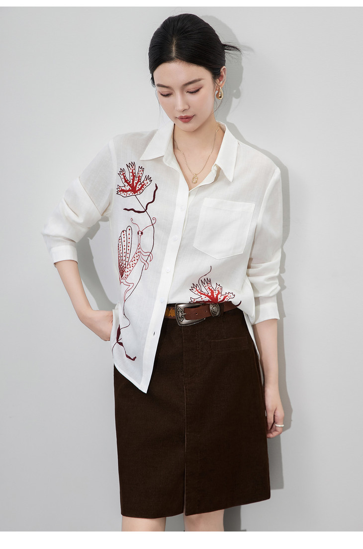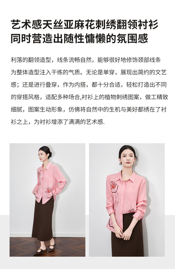 休闲宽松时髦轻奢高货重工刺绣衬衫天丝亚麻长袖上衣WLZD2512702