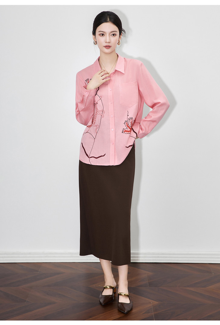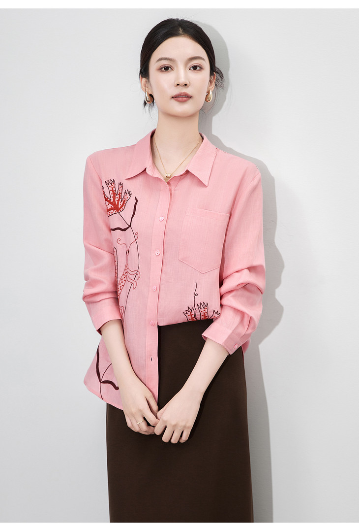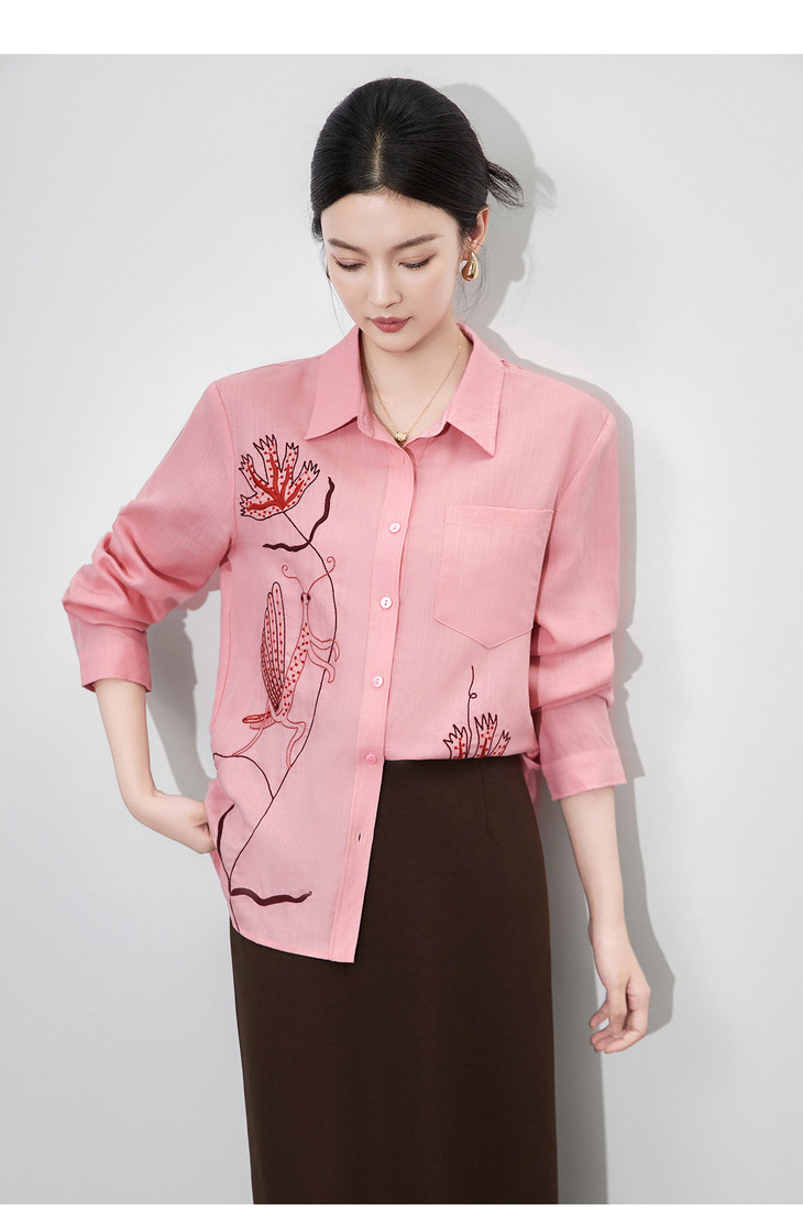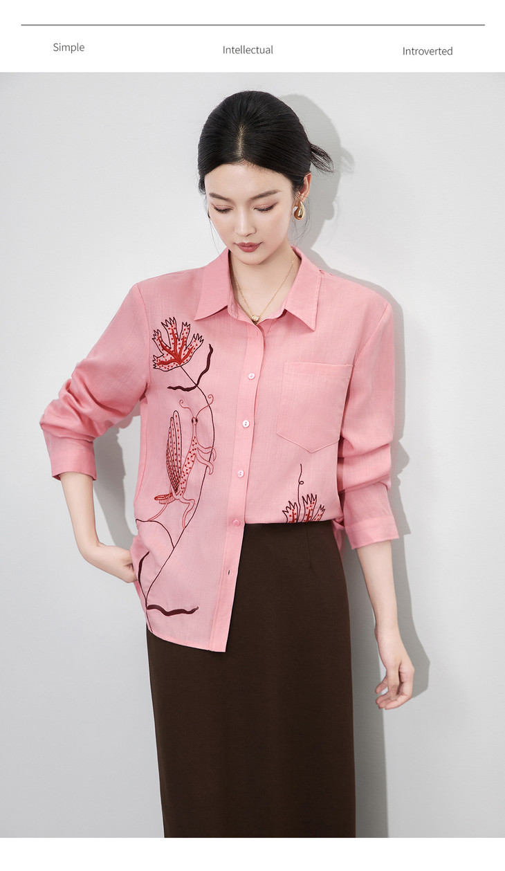 休闲宽松时髦轻奢高货重工刺绣衬衫天丝亚麻长袖上衣WLZD2512702