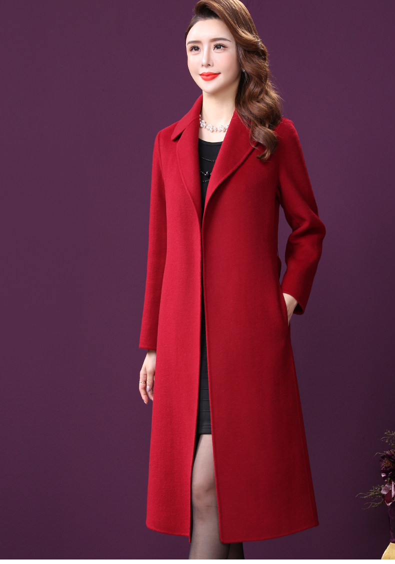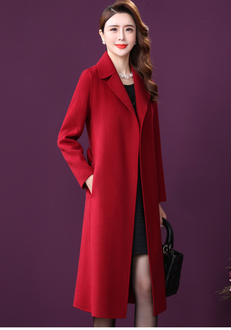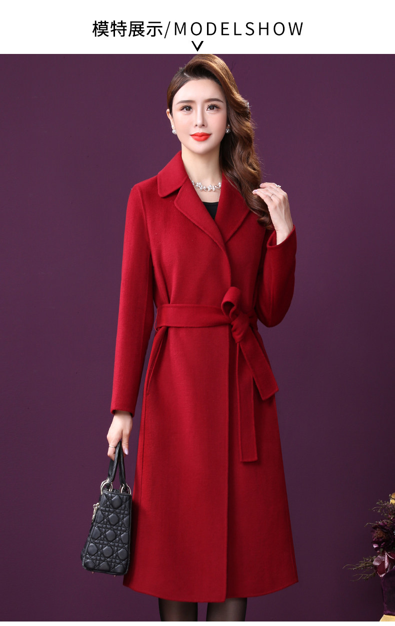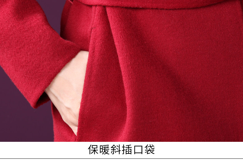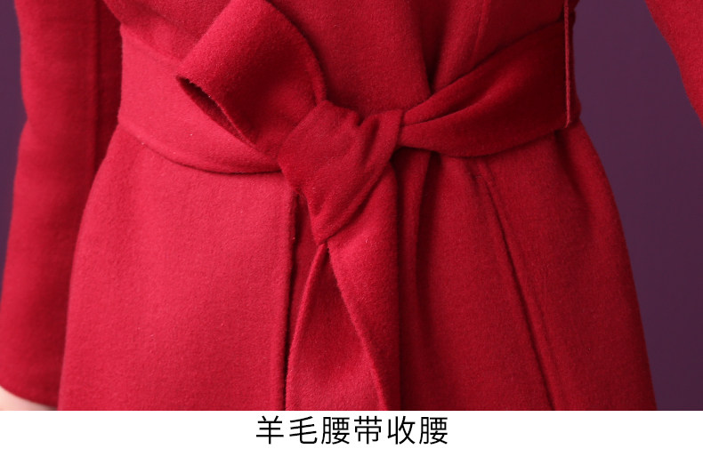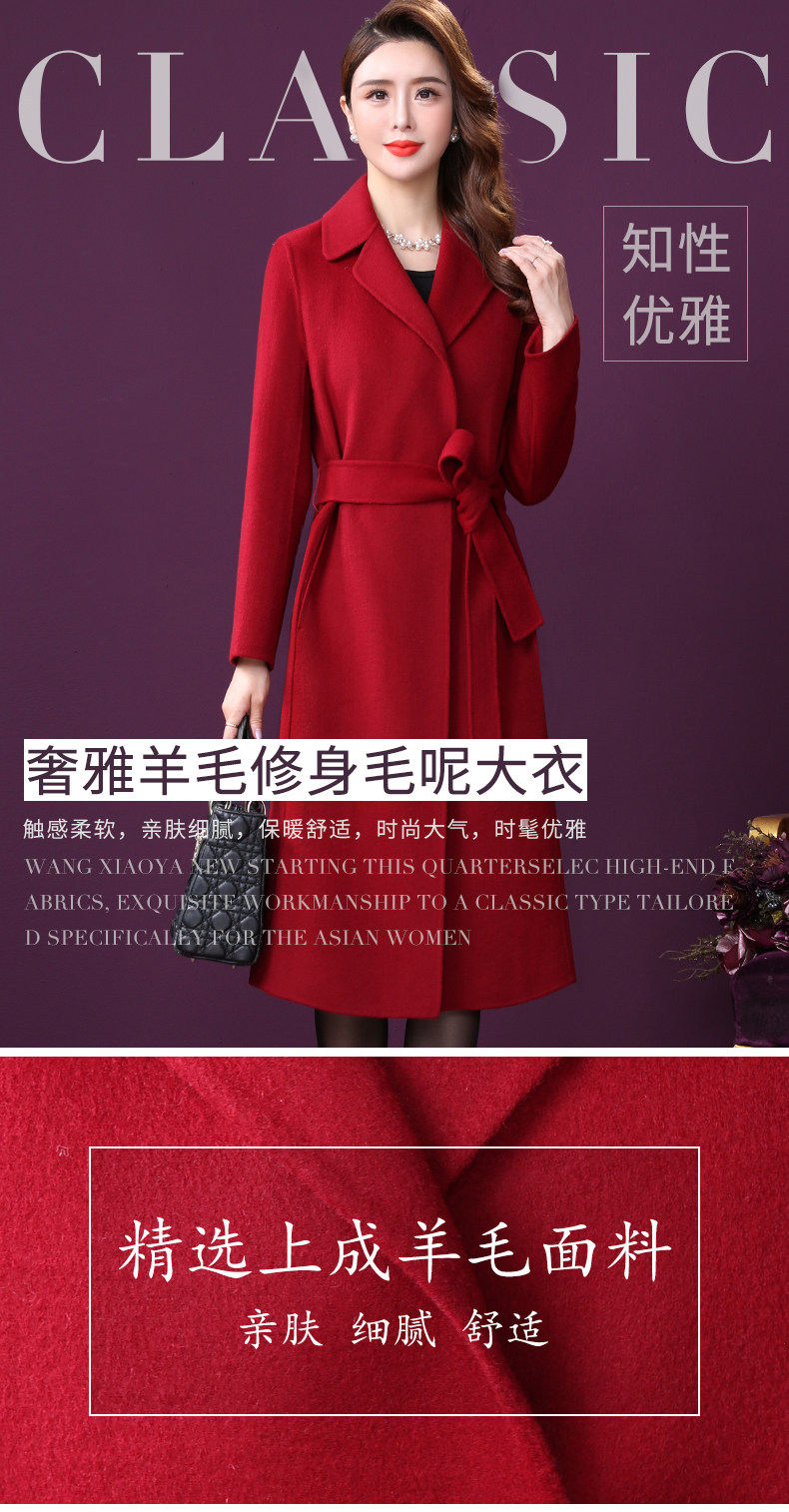 WXY-W-16878双面呢大衣女中长款2020秋冬新款韩版过膝红色羊毛毛呢外套