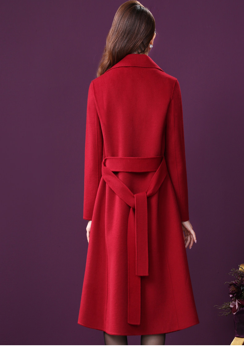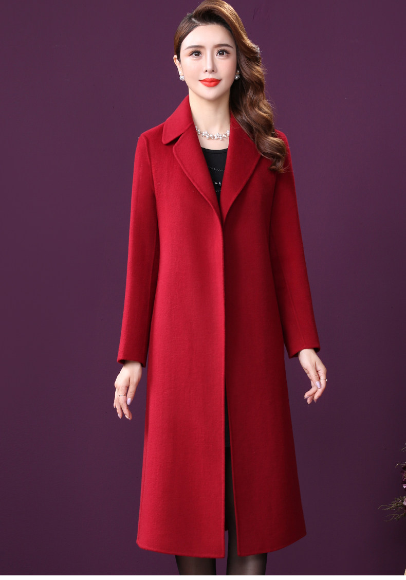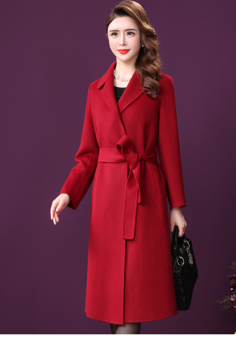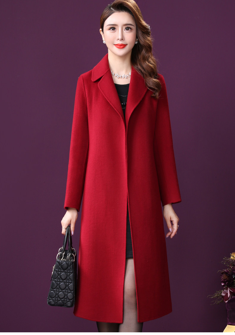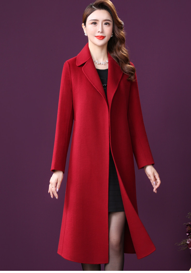 WXY-W-16878双面呢大衣女中长款2020秋冬新款韩版过膝红色羊毛毛呢外套