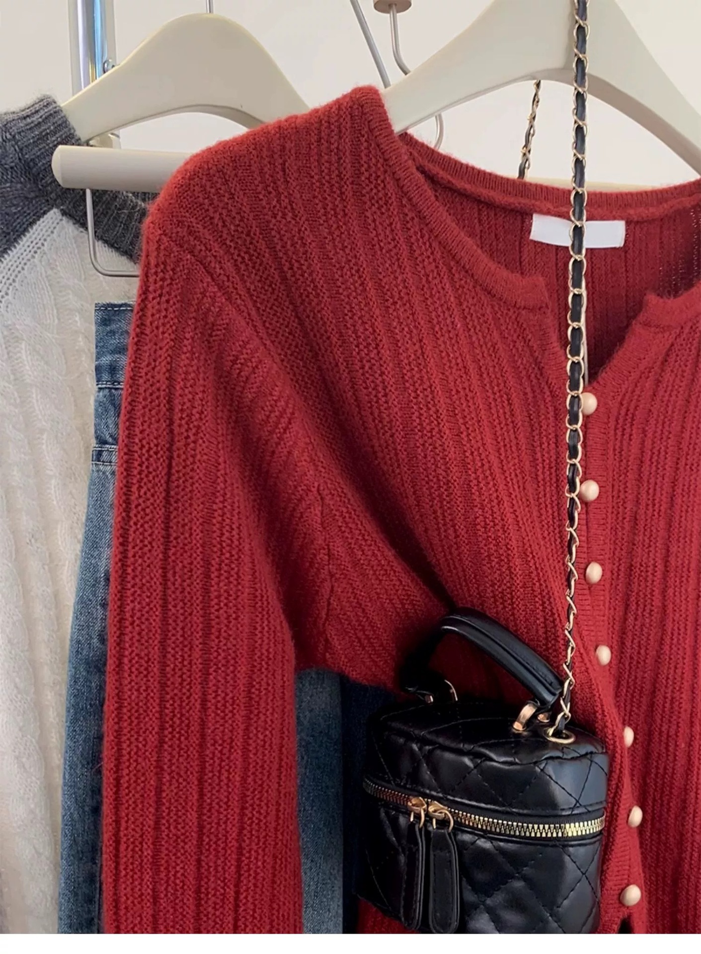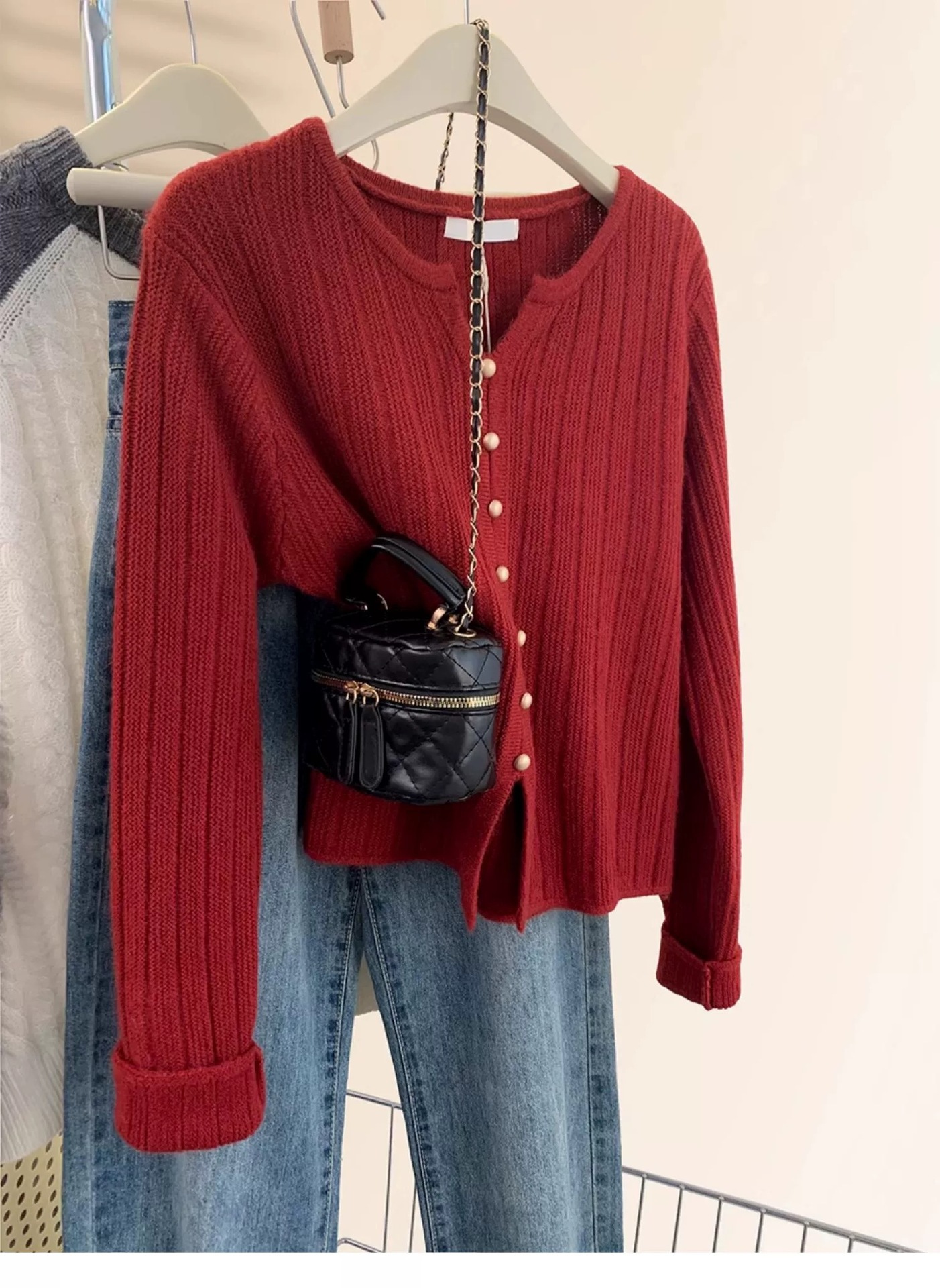 丁摩 韩系小个子短款精纺羊毛修身显瘦坑条纹开衫V领女士洋气减龄外套4ZF-2540