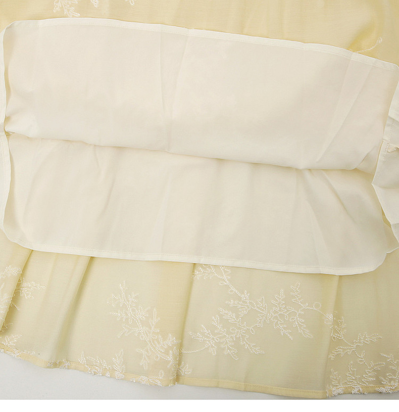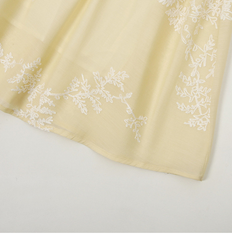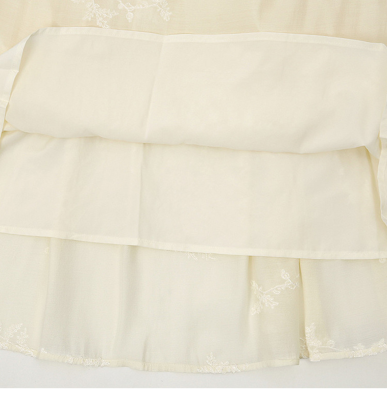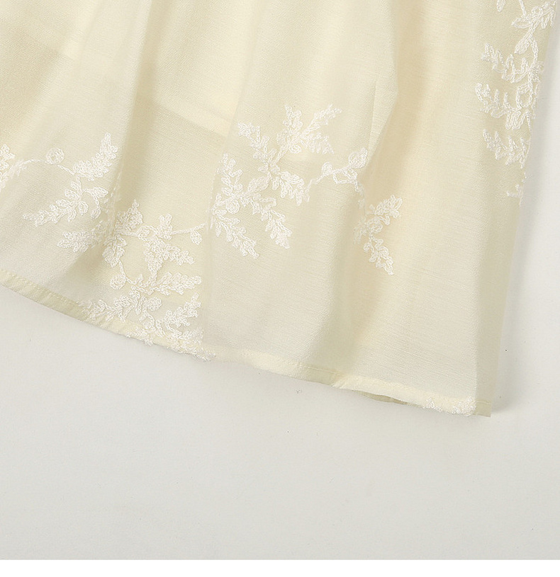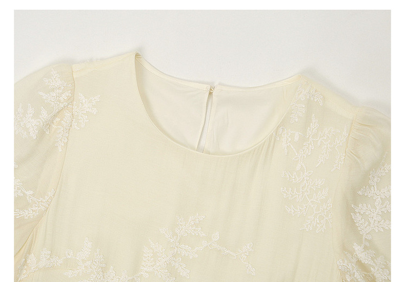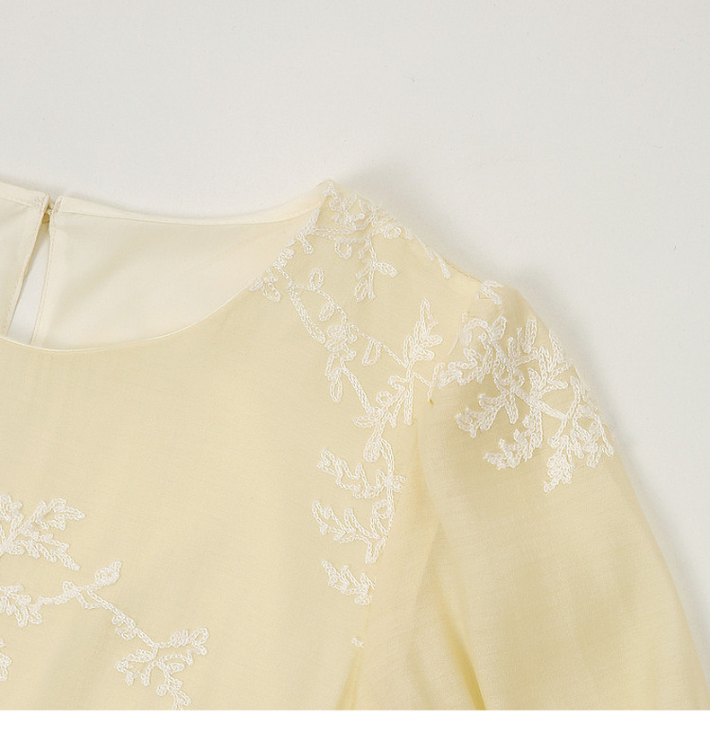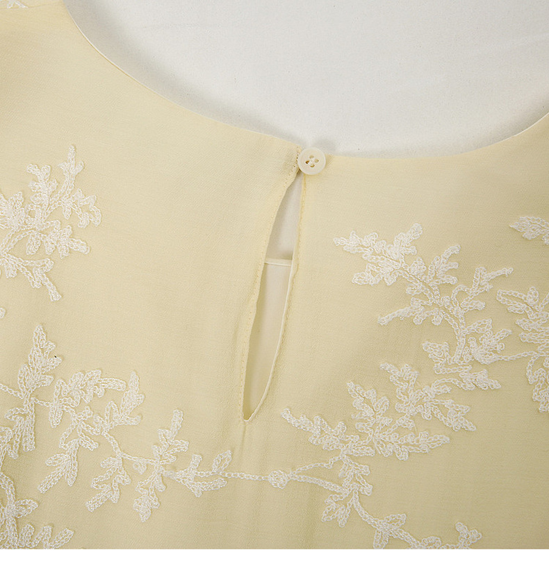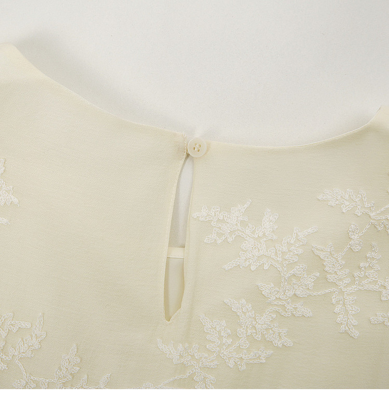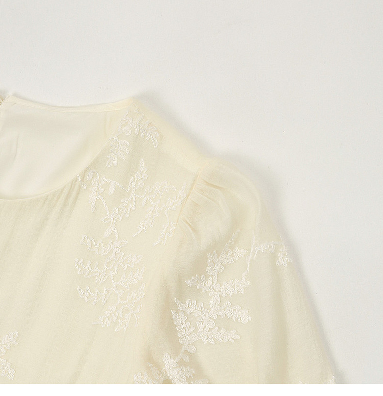 天猫同步【轻奢!中式淡雅】拉夏贝尔/La Chapelle圆领刺绣花朵后背一粒扣短袖连衣裙显瘦遮肚宽松连衣裙