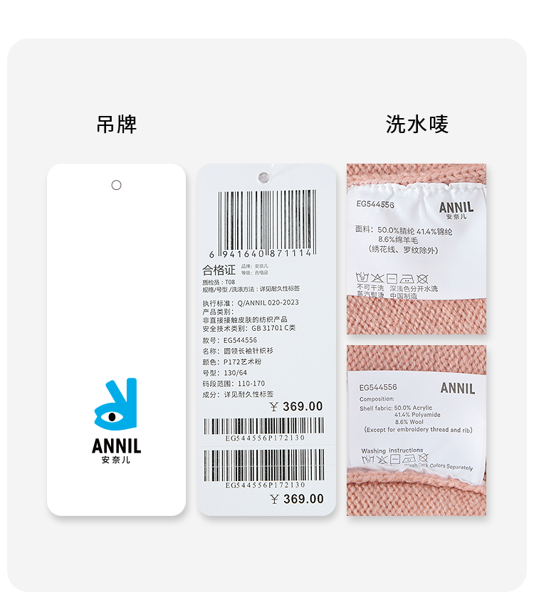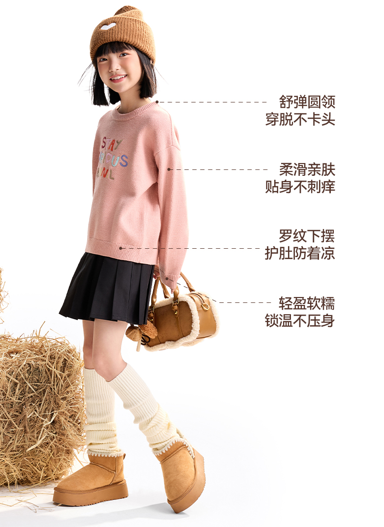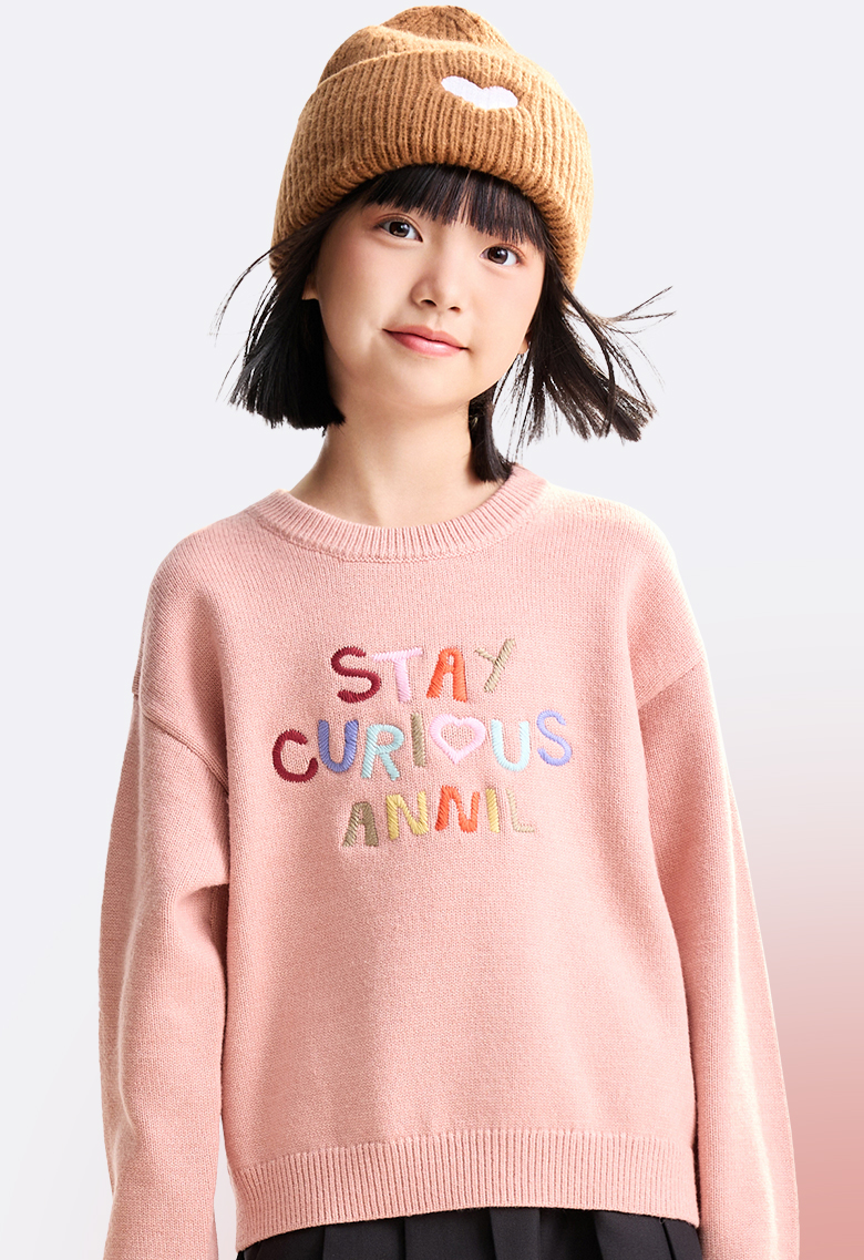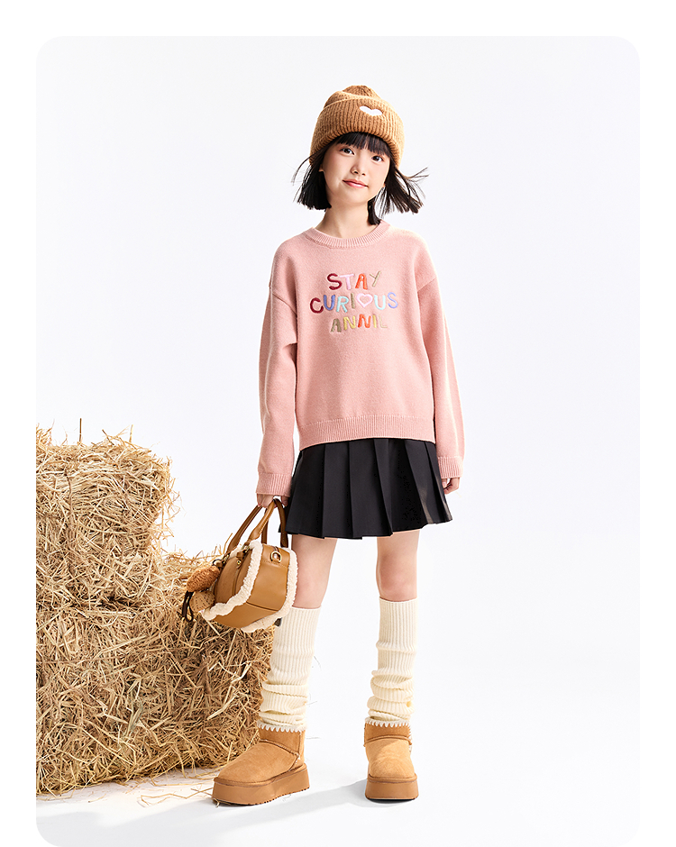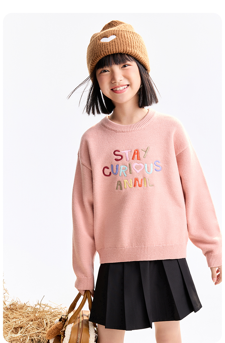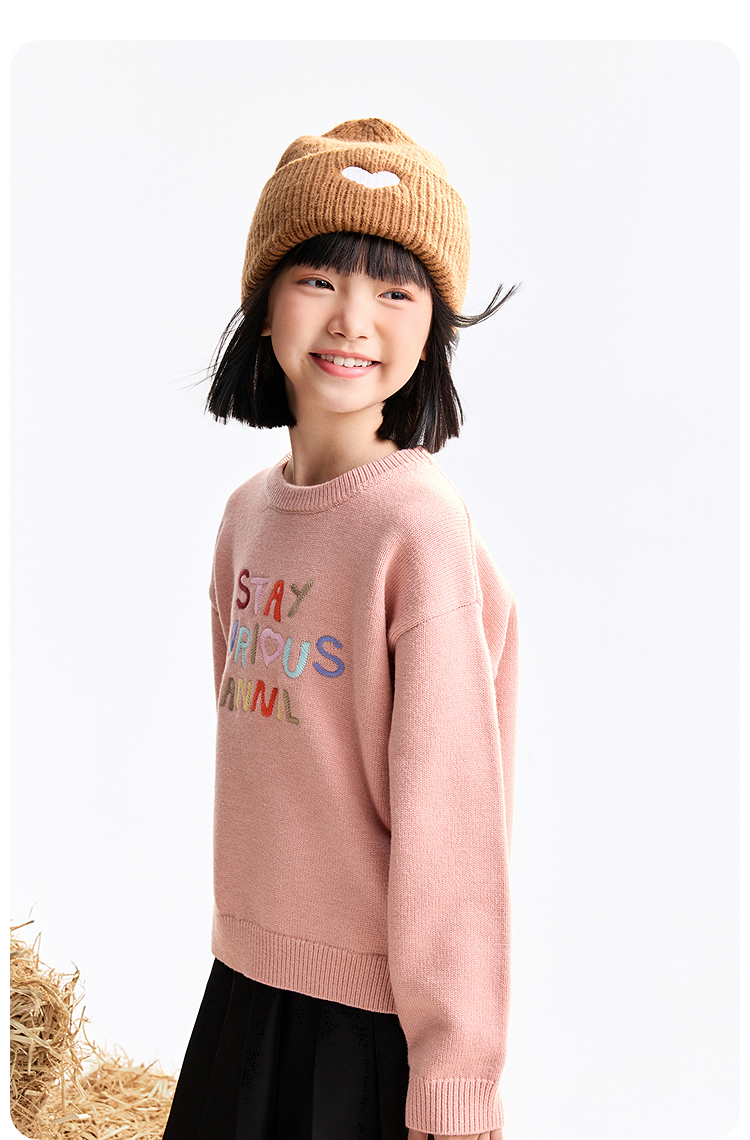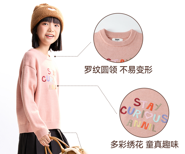 女童圆领长袖针织衫冬季新款安奈儿童装EG544556