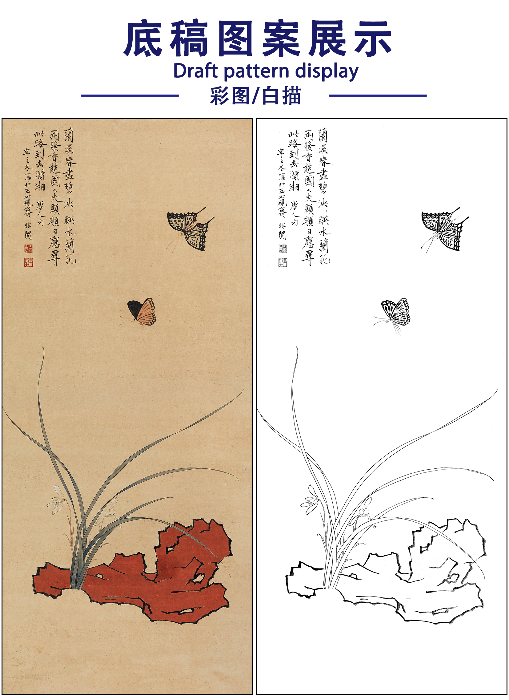 于非闇花鸟工笔画白描底稿《水仙彩蝶》临摹勾线高清打印稿FA21