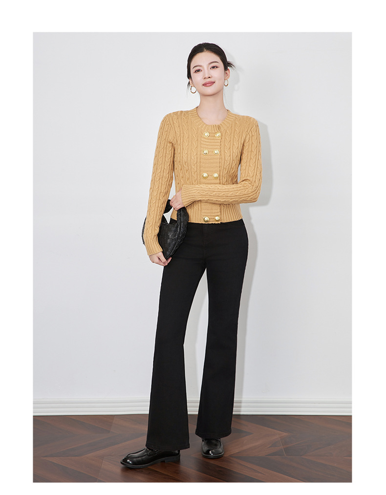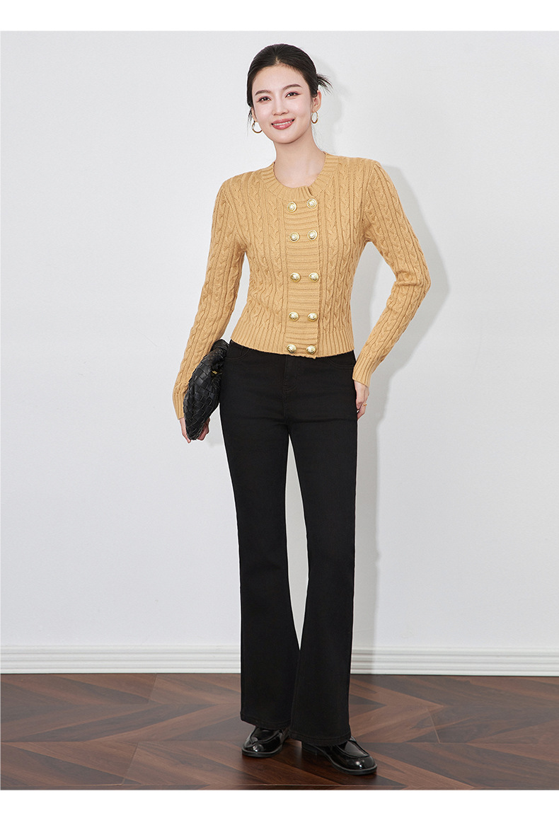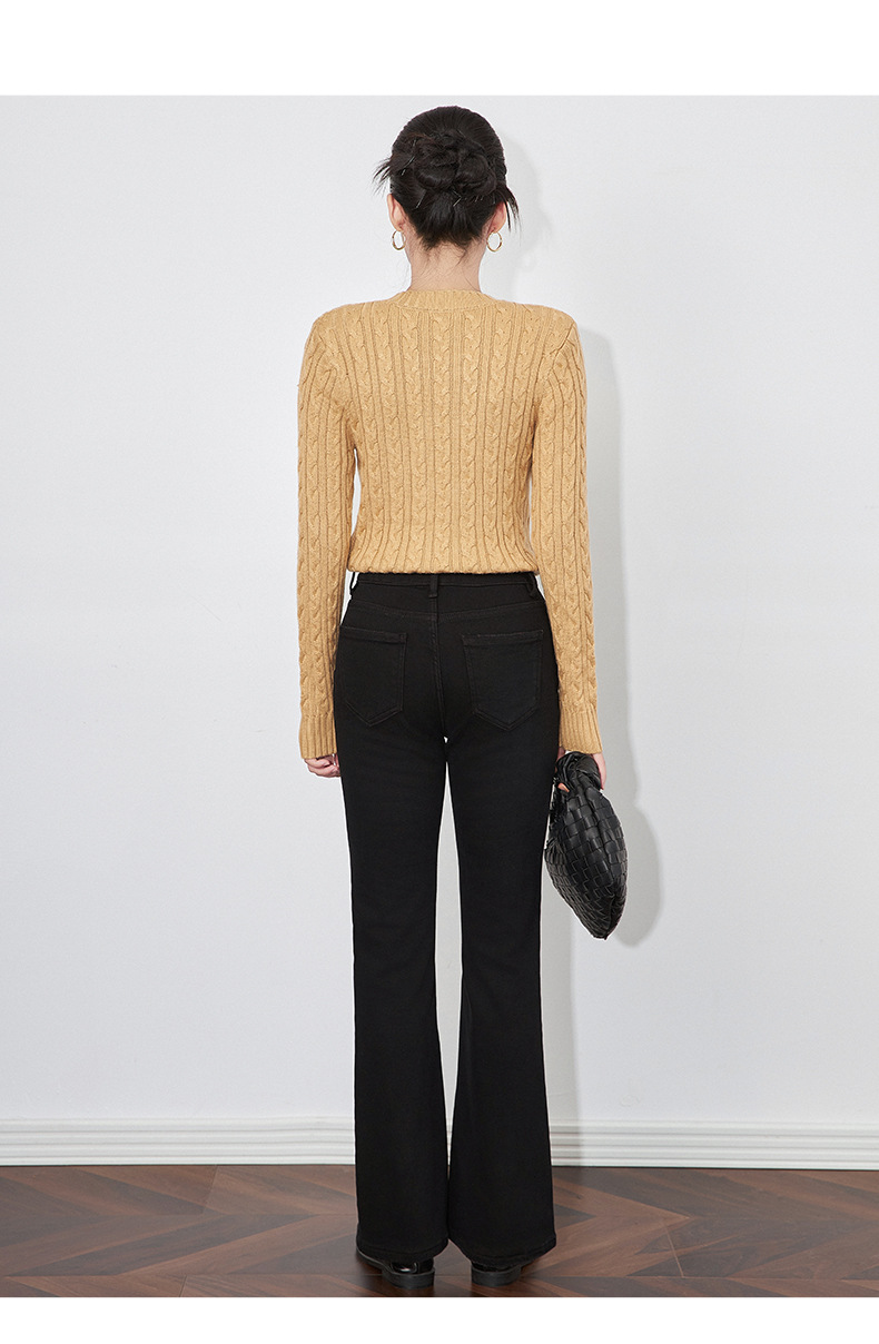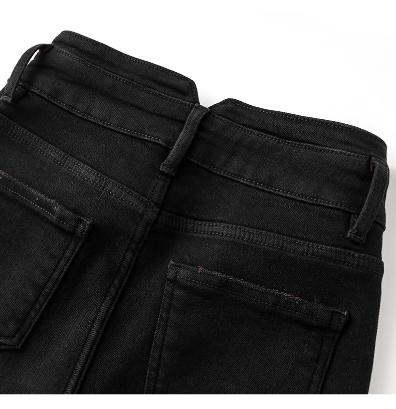【高货wl】全新升级【铂金会员220/天猫299/差价79】(41318) 洛诗琳新款加绒保暖蝴蝶装饰时尚显瘦松身喇叭黑色牛仔裤