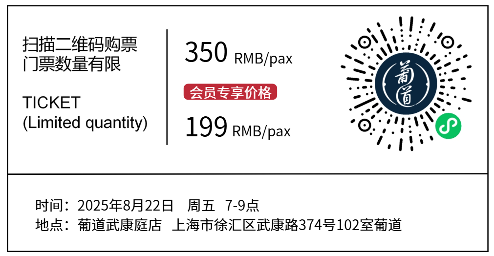 【2025.8.22 武康门票 Wukang Ticket】尚颂堡冷庄主亲临分享风土密码,共品贺兰山核心风土
