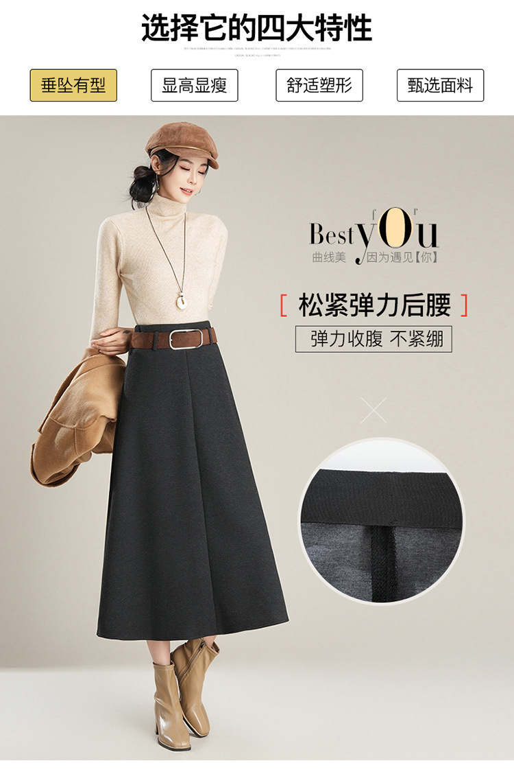 PH-1796羊毛呢半身裙女2025新款秋冬季大摆裙高腰显瘦a字裙显瘦伞裙 商品图2