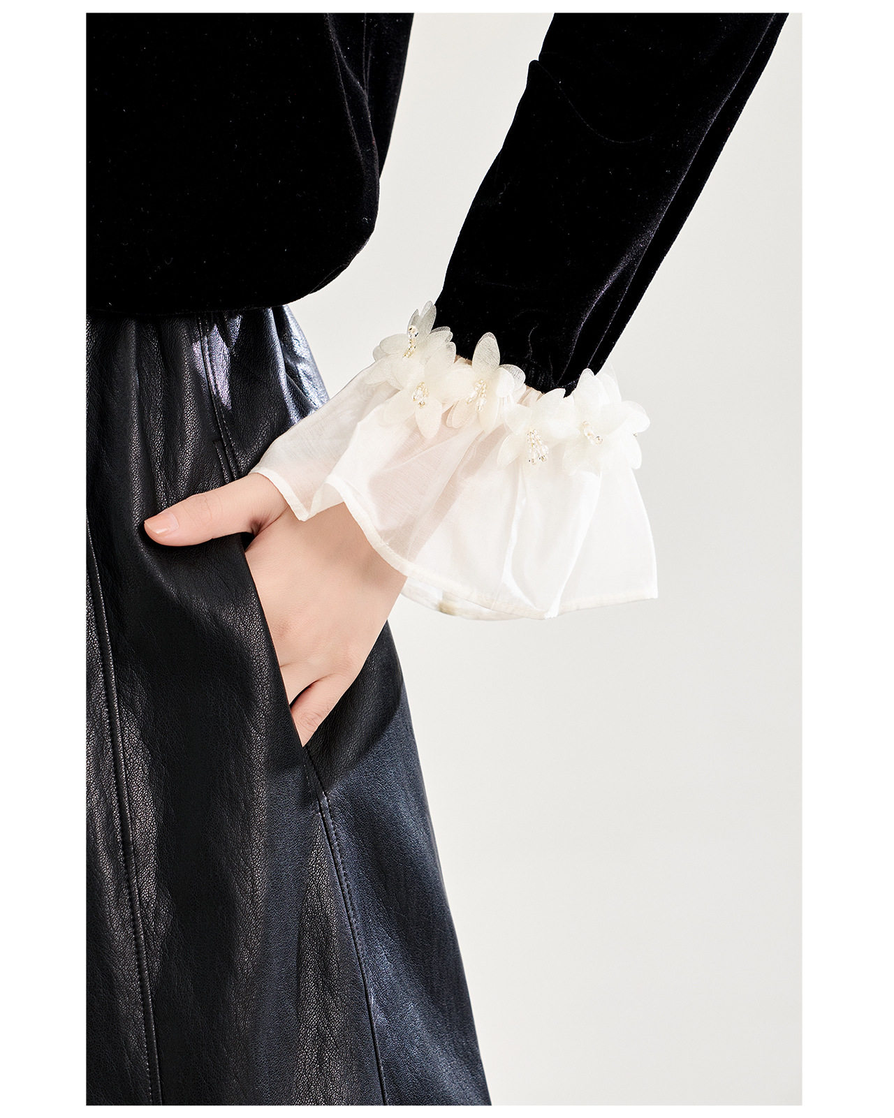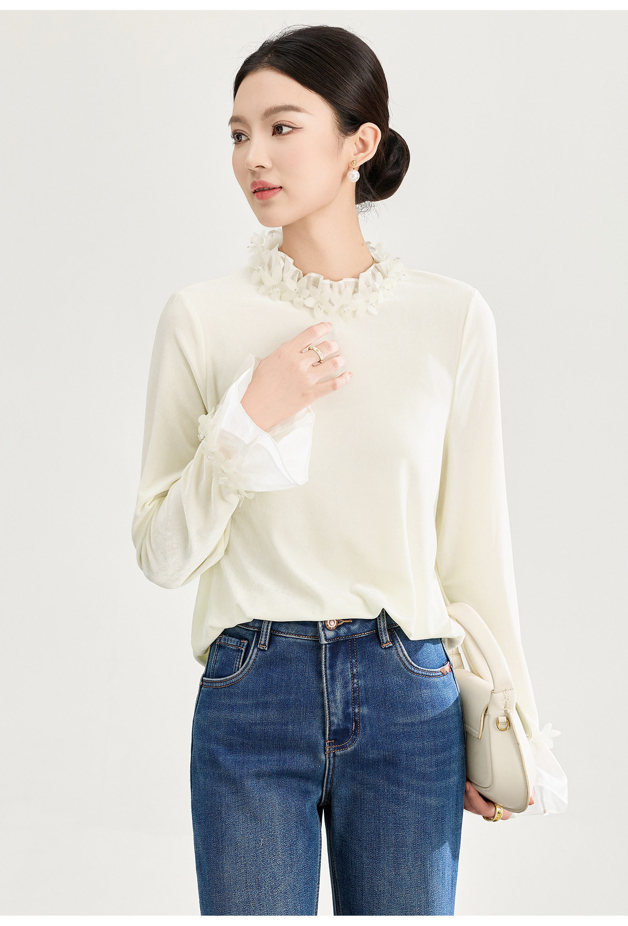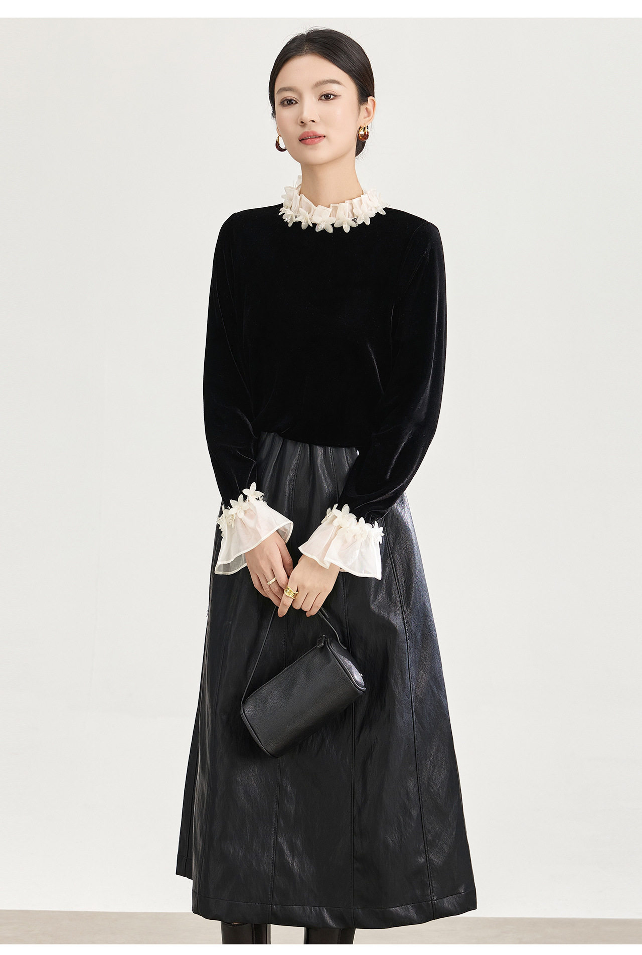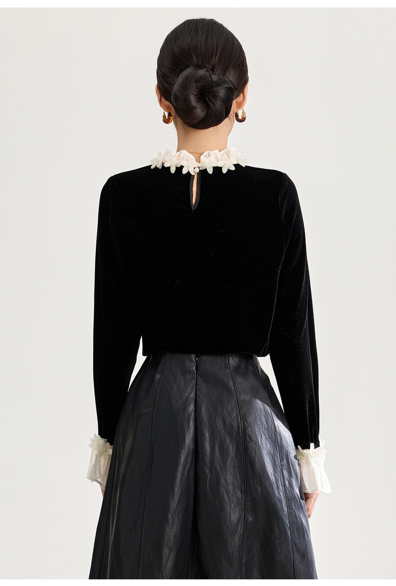 「高货wl」全新升级【铂金会员220/天猫289/差价69】(00900)洛诗琳法式浪漫四方立绒衬衫2025秋冬蕾丝花瓣领丝绒上衣